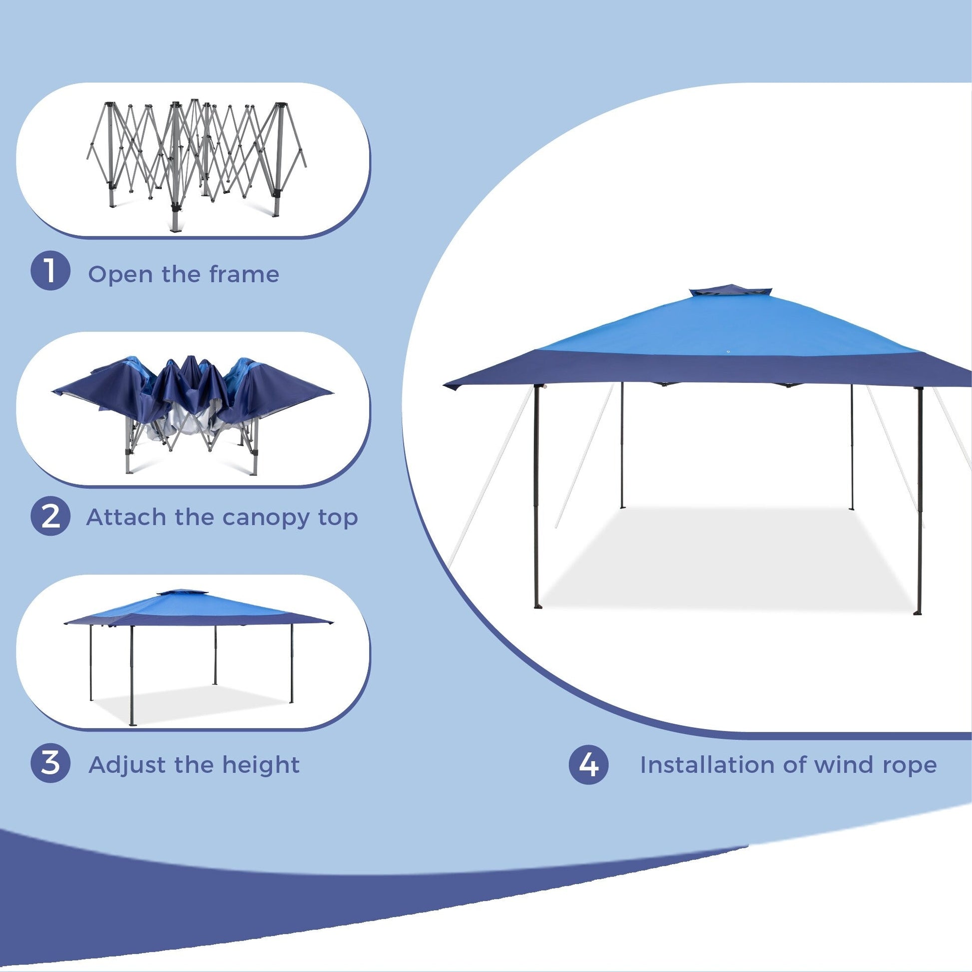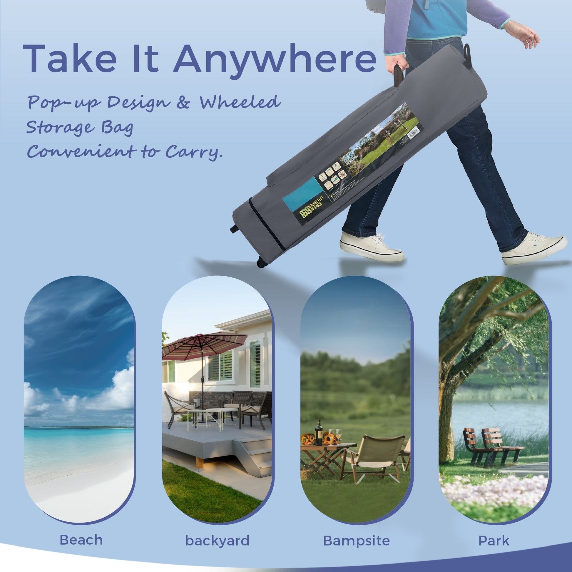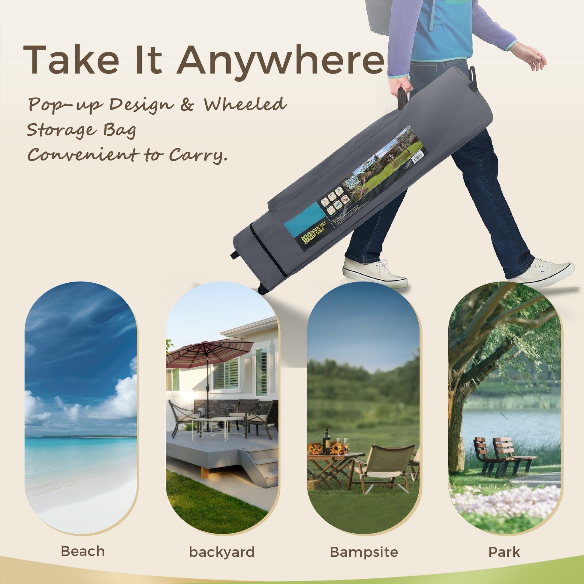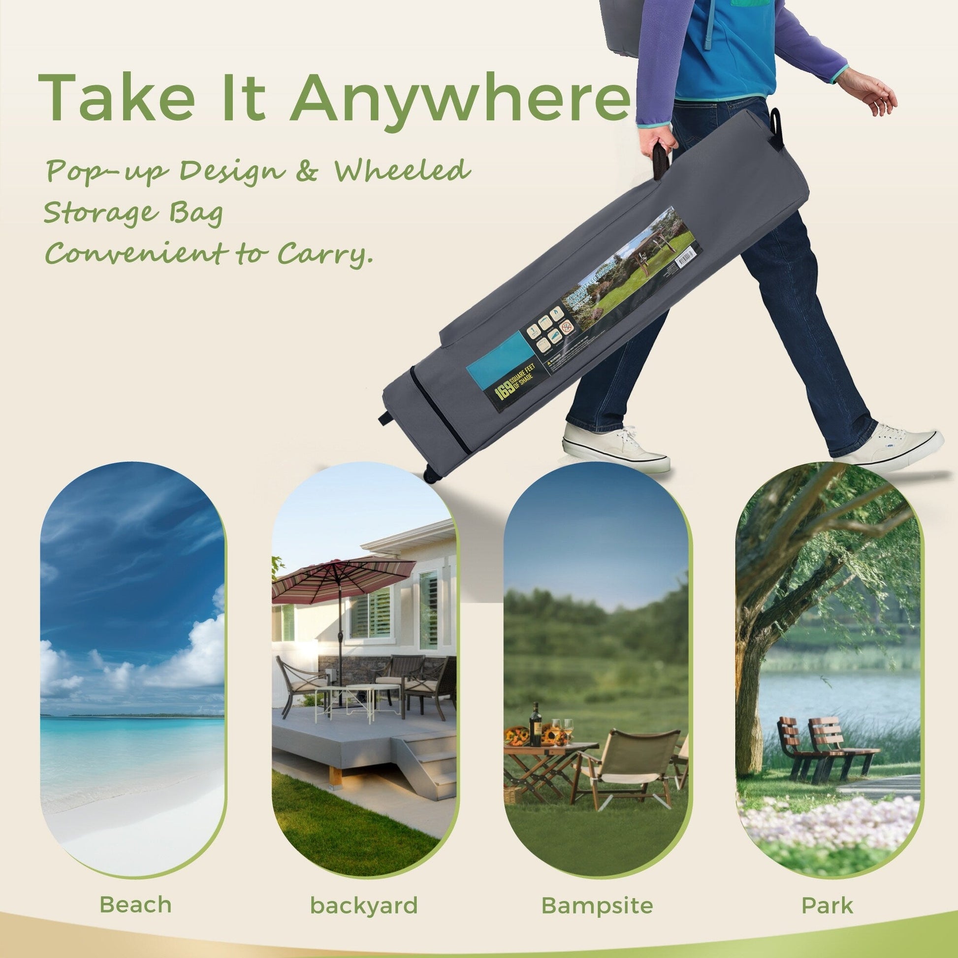 【Accessory】: Wheeled bag included for easy transport and storage. Remember to stabilize the canopy with guy ropes and stakes included.