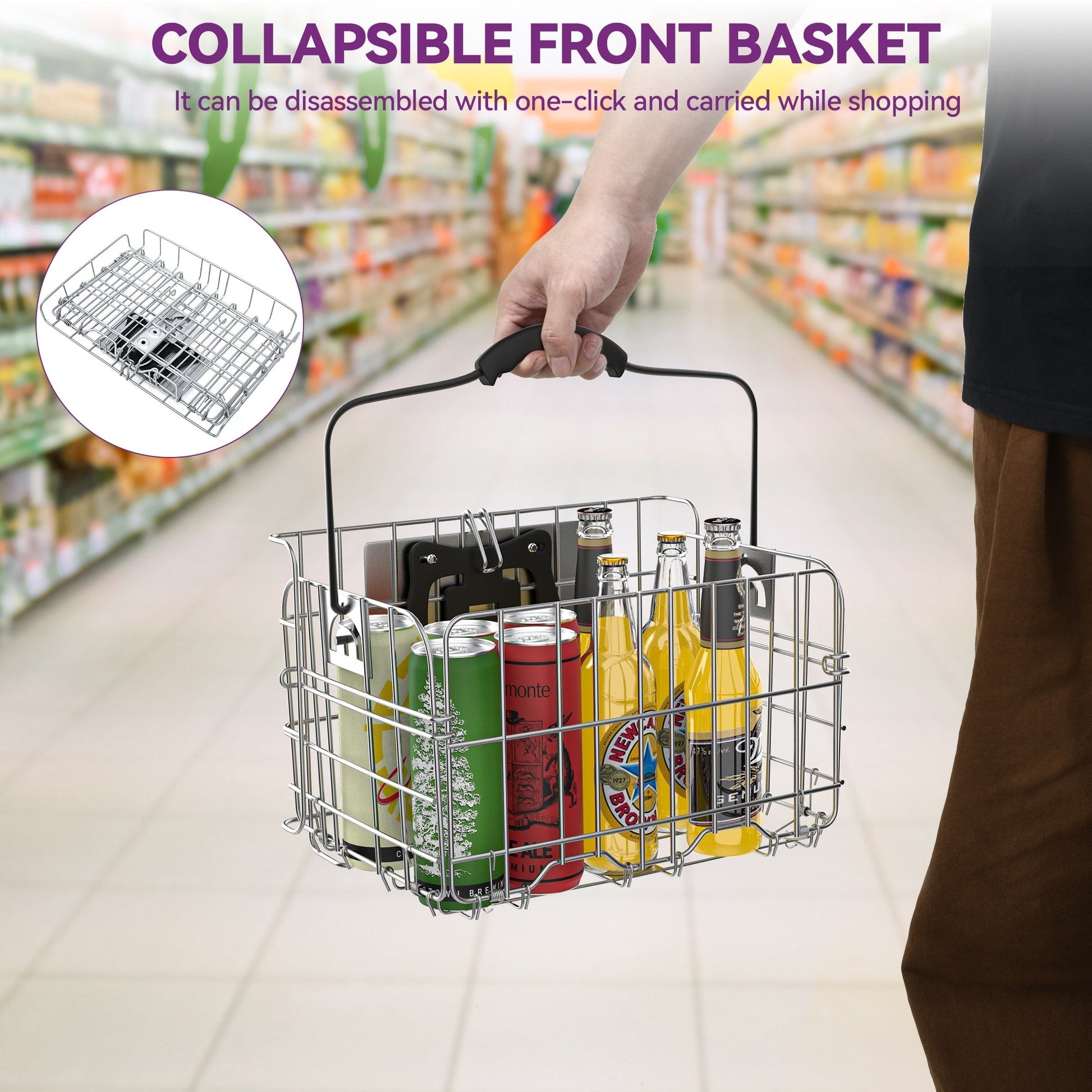 • Sturdy rear basket with a capacity of 55 lbs, perfect for storing groceries and even pets