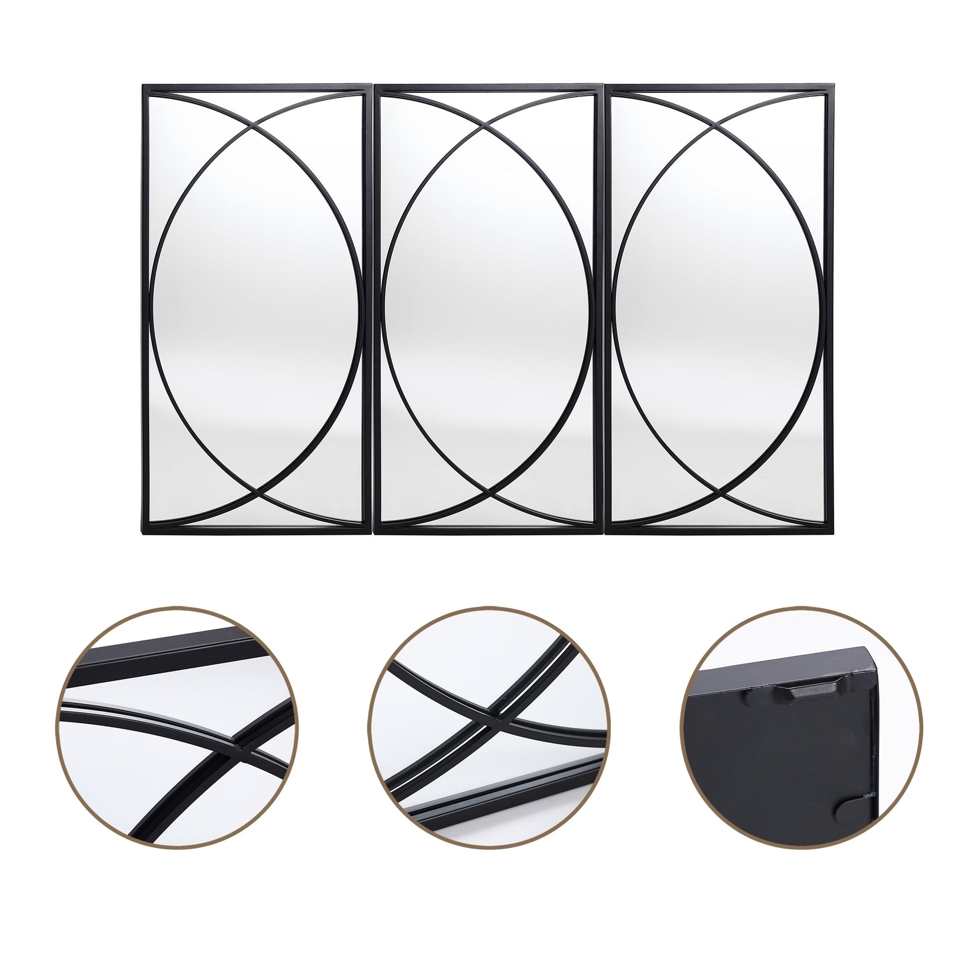 3-Piece Black Metal Rectangular Wall Mirror...