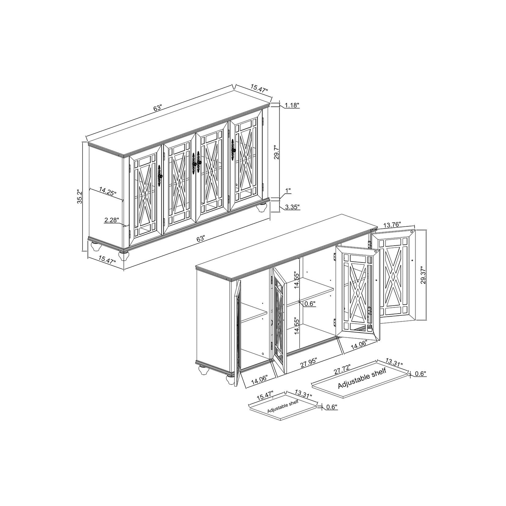 63 Vintage Style Wood Kitchen Accent Buffet Sideboard...