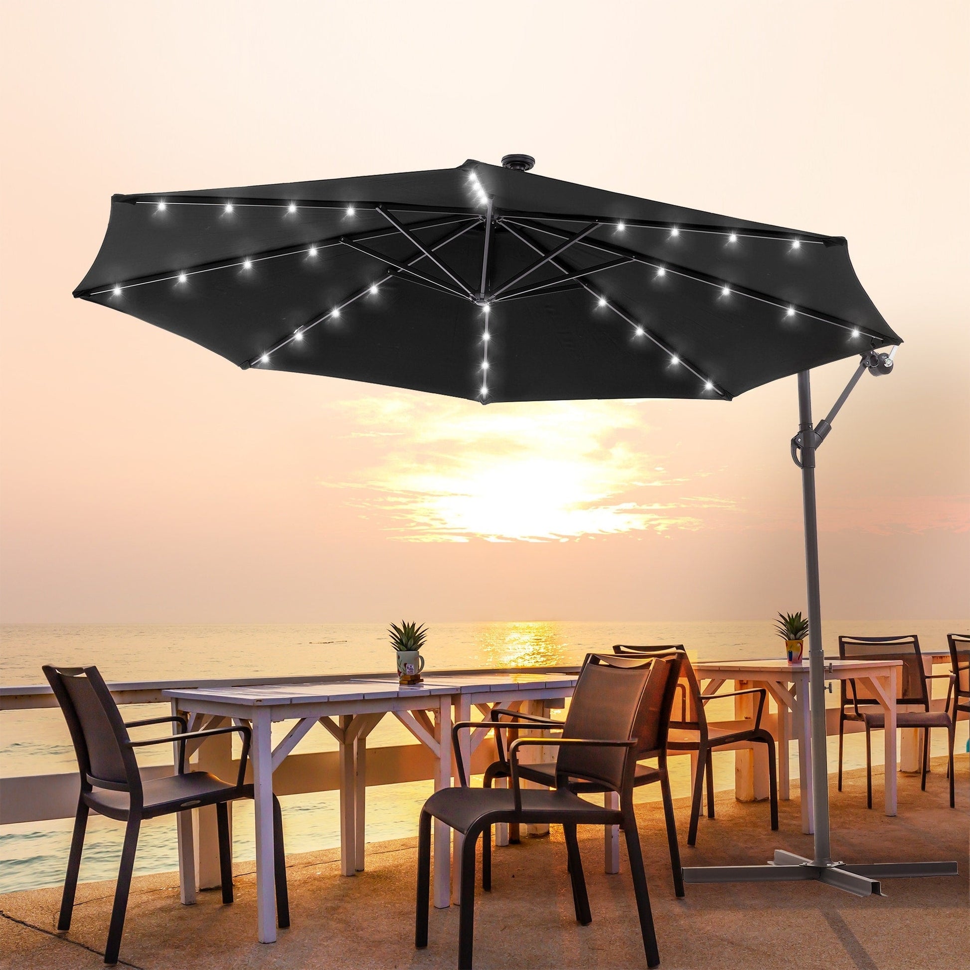 LIVOOSUN 10ft LED Patio Offset Umbrella With Cross...