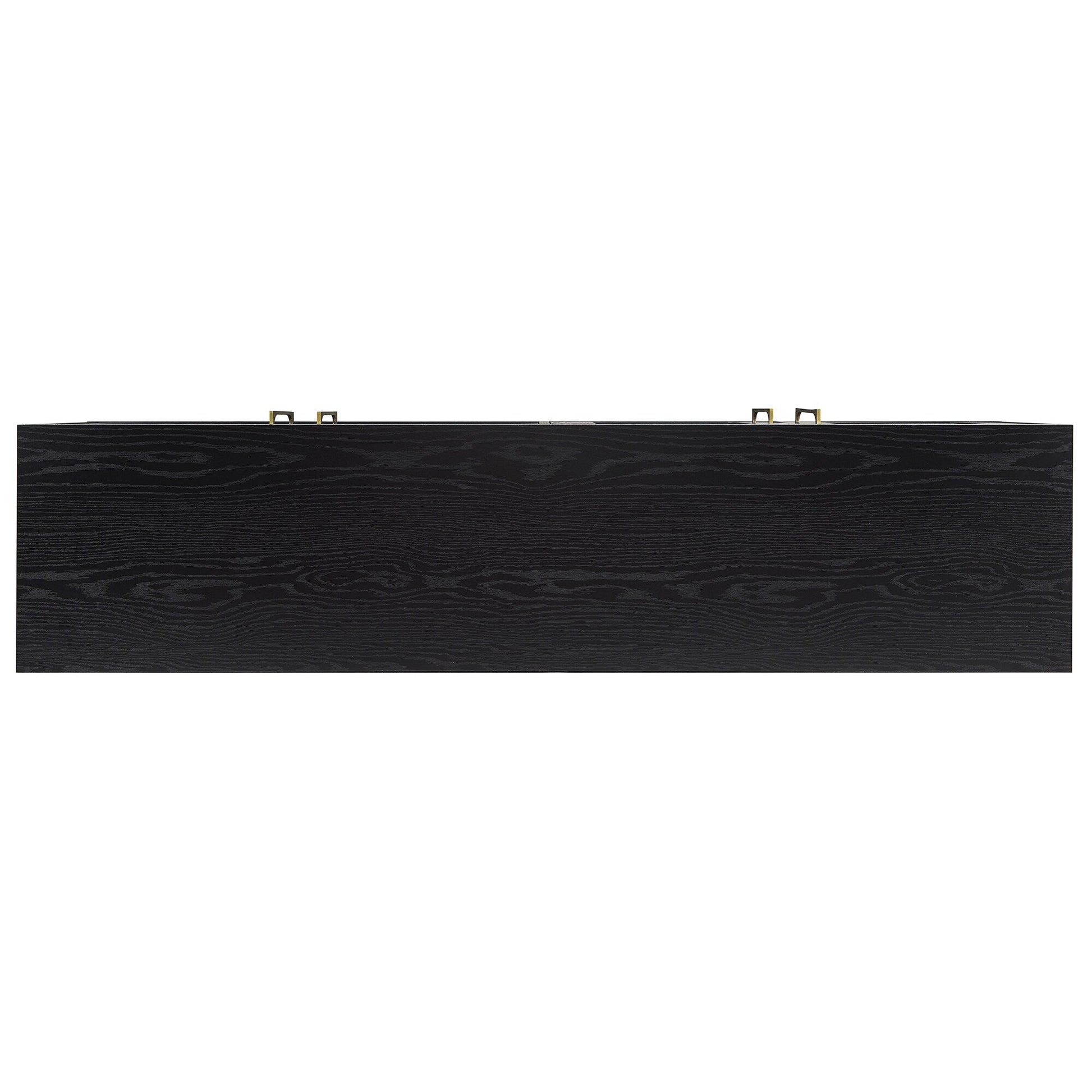 Combine functionality and classic transitional design with this modern TV stand. Its rich wood tone creates a warm neutral palette that will blend seamlessly into any color scheme, while its classic styling pairs perfectly with the existing design inspiration of your living room, den, or game room. This solid-backed stand features two large enclosed cabinets with sleek brass-finished hardware. Cable management cut-outs and adjustable inner shelves help keep your media storage and consoles organized.