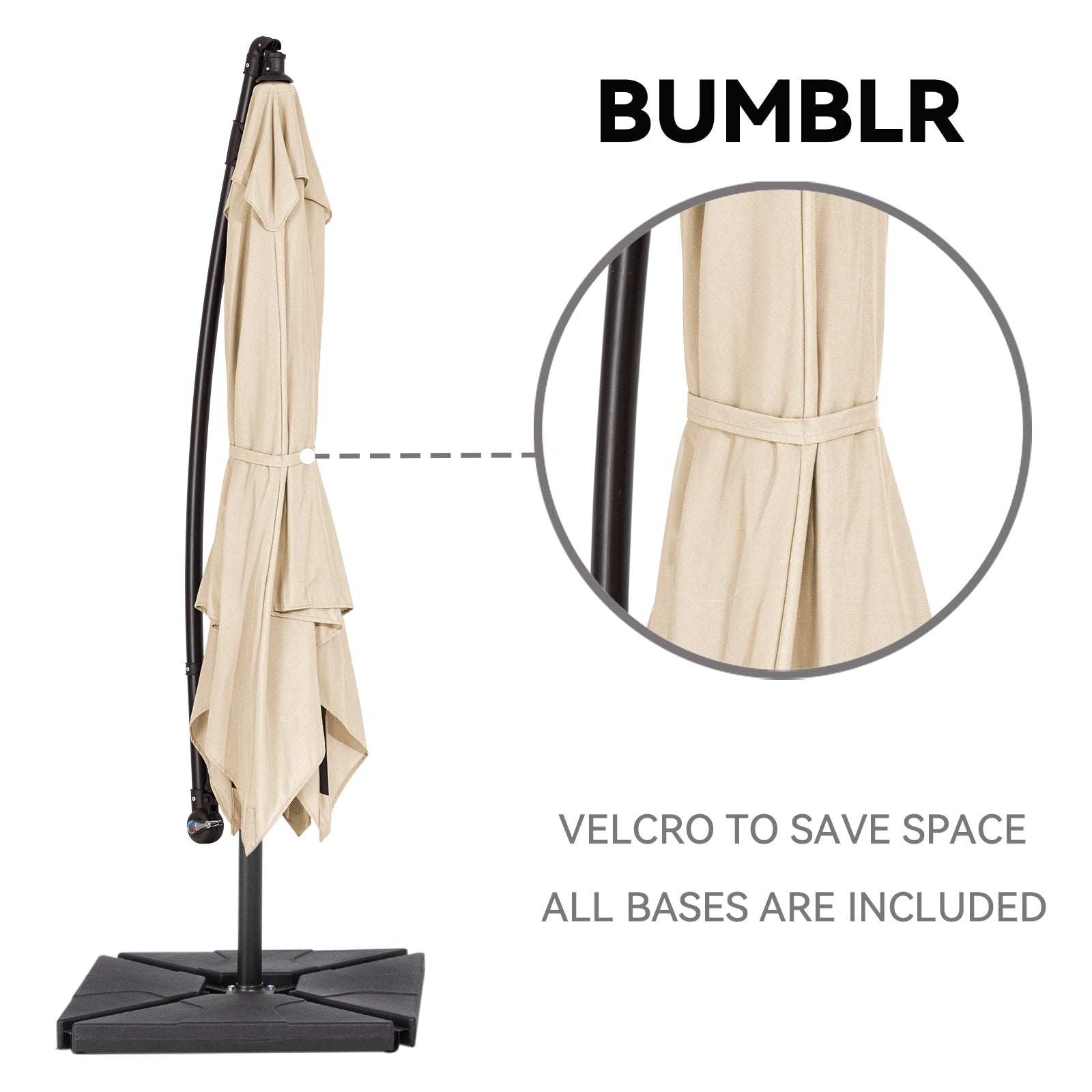 • Weighted Base Included:100 lbs Base Included, the base hits 100 lbs when filling with wet sand, so there's no worry about delaying your use because finding another suitable base