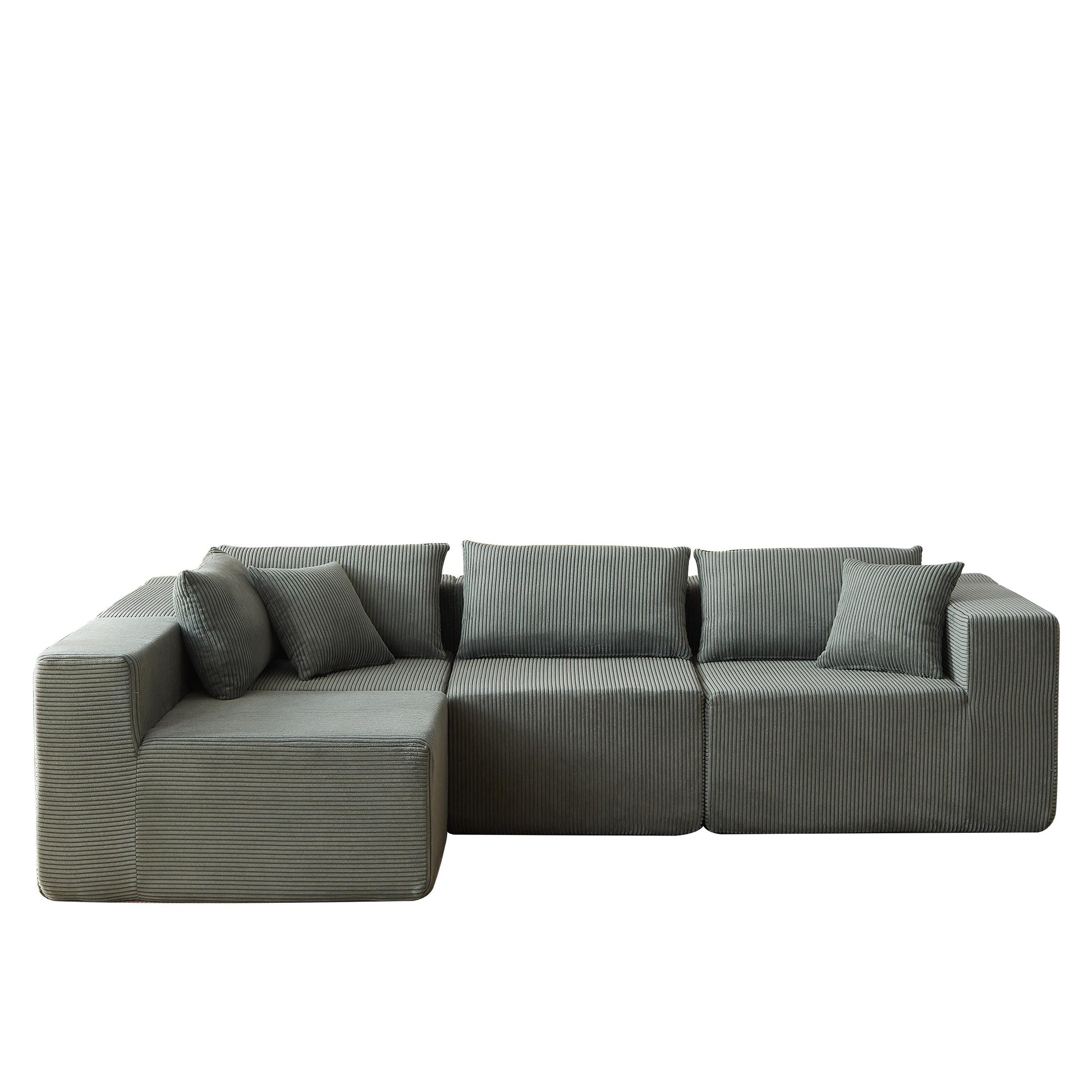 104-Inch Corduroy Modular L Shaped Sectional Sofa,Floor Couch Set,Foam-Filled Compressed Sofa,4 PC Free Combination