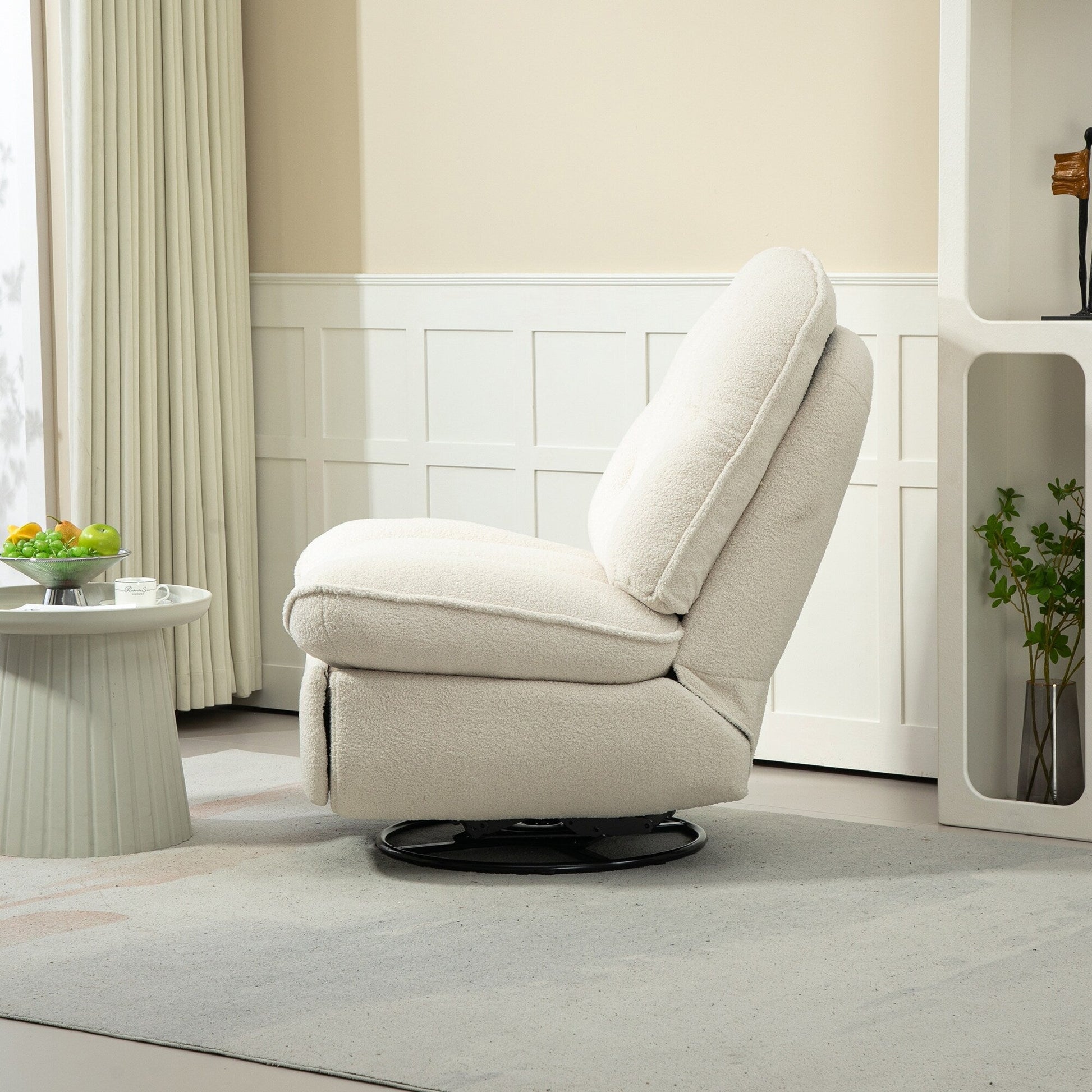 Strong and Durable Frame: You don't have to worry about living room chair durability!Reclining Single Sofa Chairs are made of a sturdy metal base and plywood frame, And the sturdy metal base provides a silky smooth swivel and stability,which can easily hold up to 300 lbs.