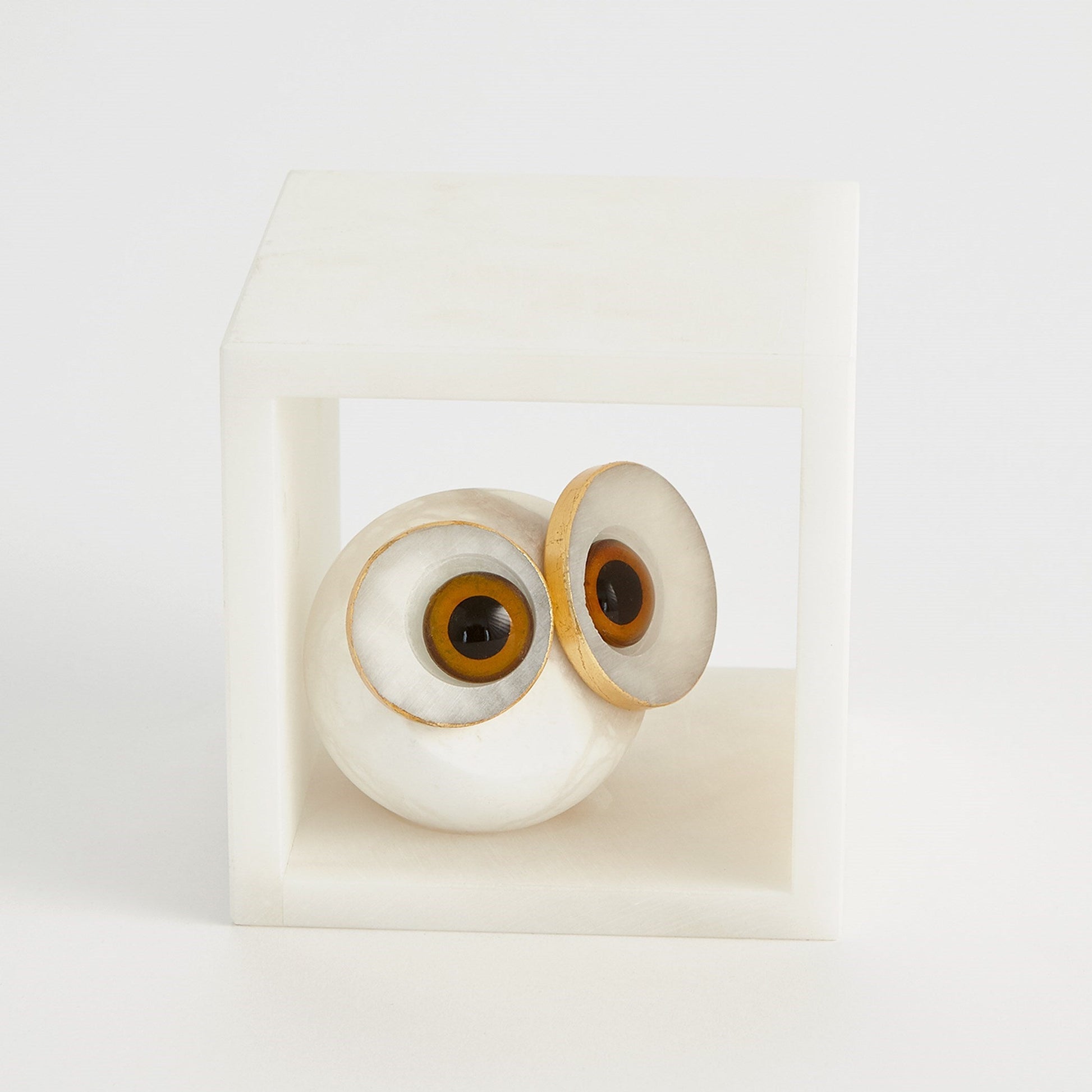 Alabaster Big Eyed Owl in Cube-Sm | Global...