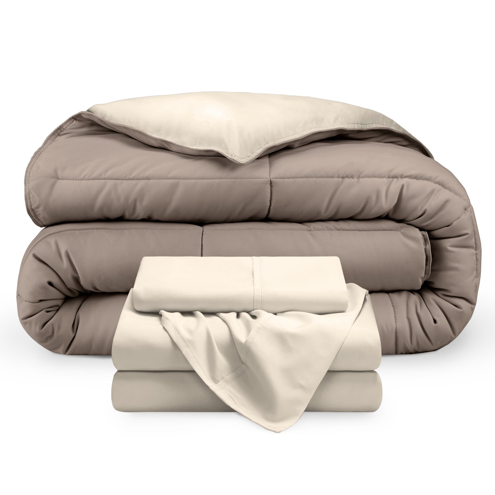 Upgrade your bedding game with the Bare Home Down Alternative Reversible Bed-in-a-Bag. This bedding set includes a reversible comforter and a microfiber sheet set. Made with 100% hydro-brushed microfiber and filled with goose down alternative polyfiber, the comforter is breathable, hypoallergenic, and double brushed for extra softness.