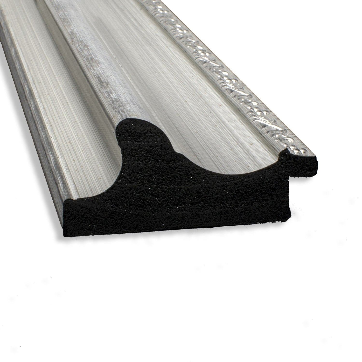 • FRAME DETAILS: The Parlor Silver Frame is a silver brushed frame with a warm pewter patina. The frame has an ornate scalloped design with an embossed inner edge. The frame is 3 in. wide and stands 1.5 in. off the wall.