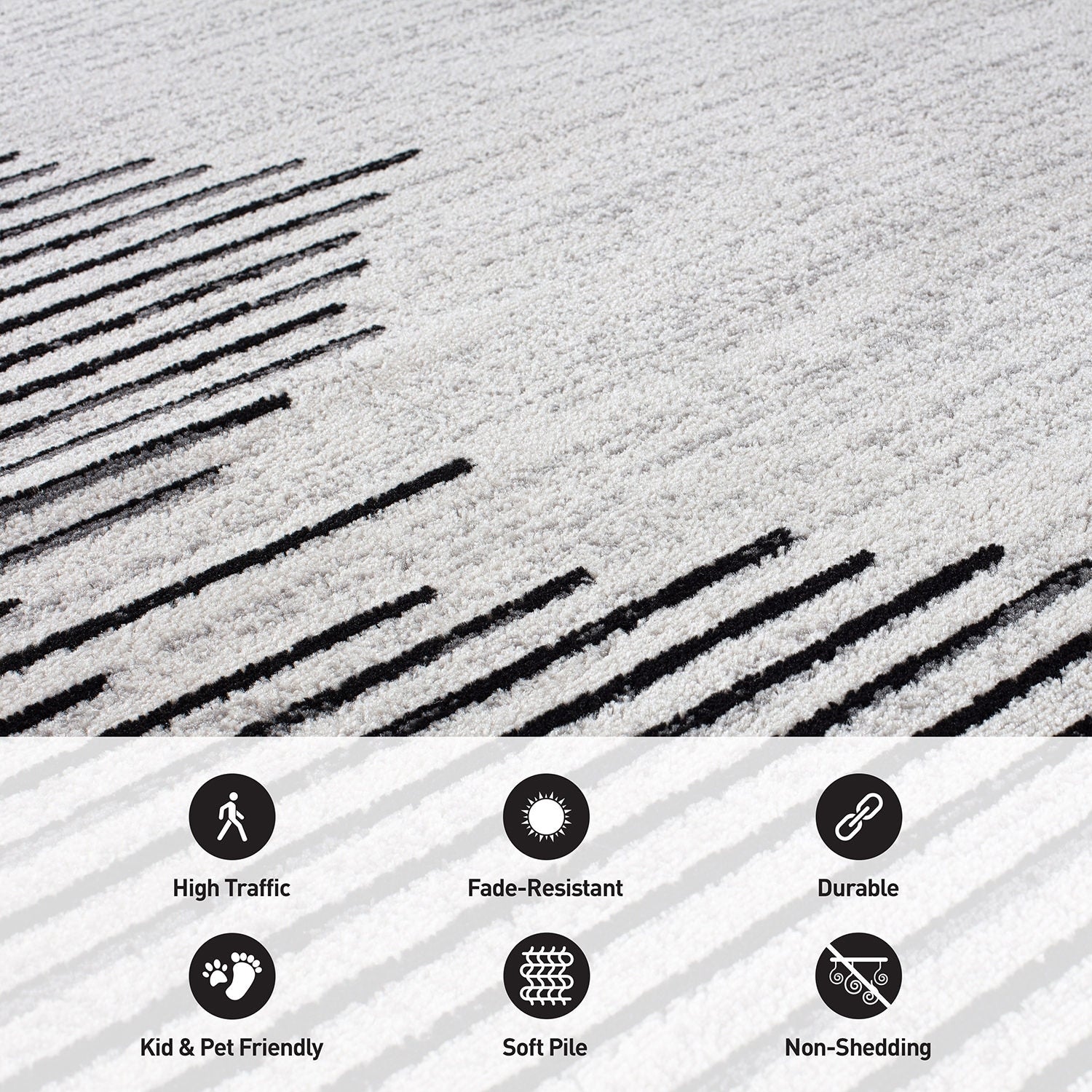 Add a pop of color and pattern to your home with our Bohemian Stripe Area Rug. This modern rug features a bold geometric stripe design, available in various sizes to suit your room. Crafted with durability in mind, this rug is perfect for high traffic areas and is kid and pet friendly. The expertly machine-woven construction provides exceptional comfort and resilience.