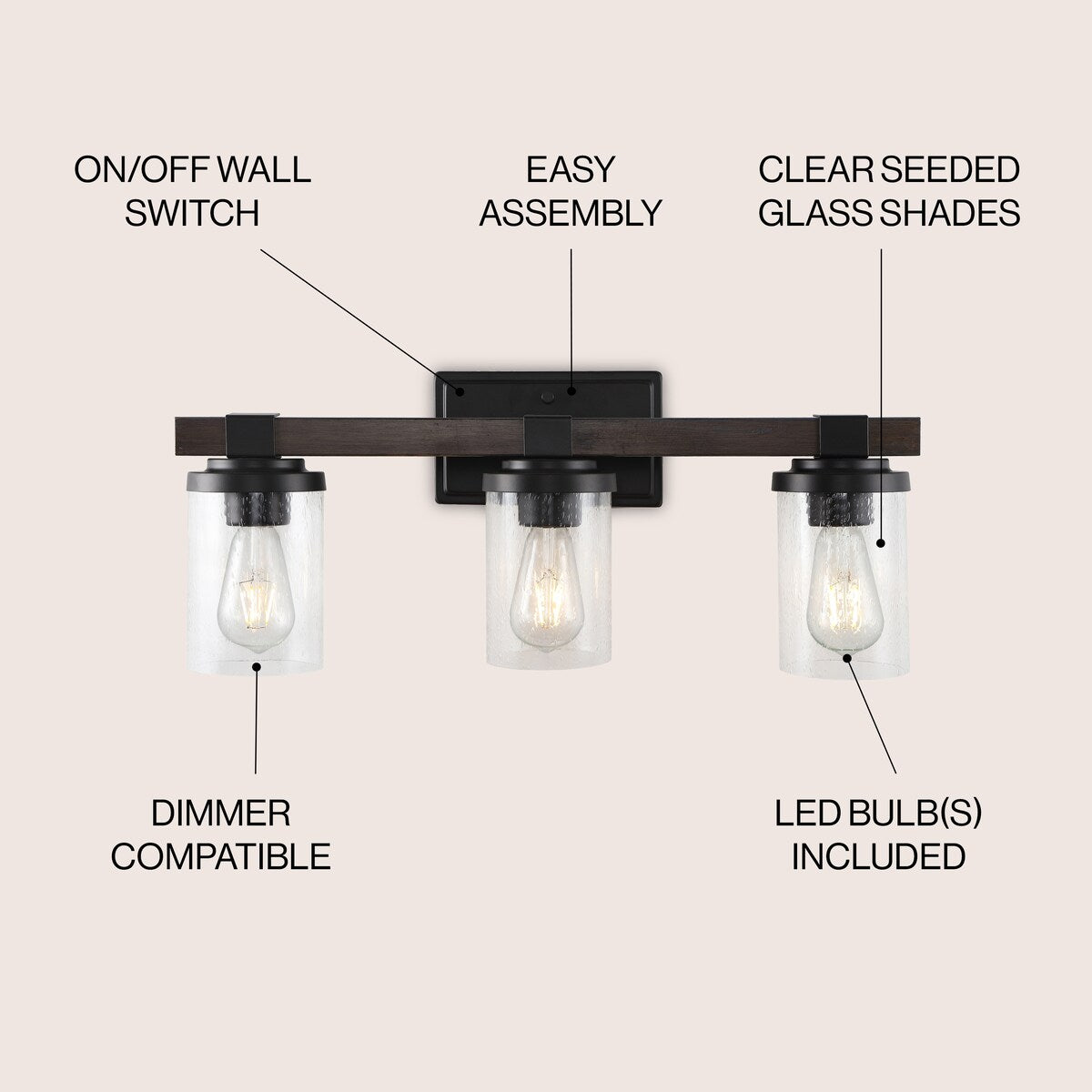 Ferme Iron/Seeded Glass Rustic Farmhouse LED Vanity Light,...