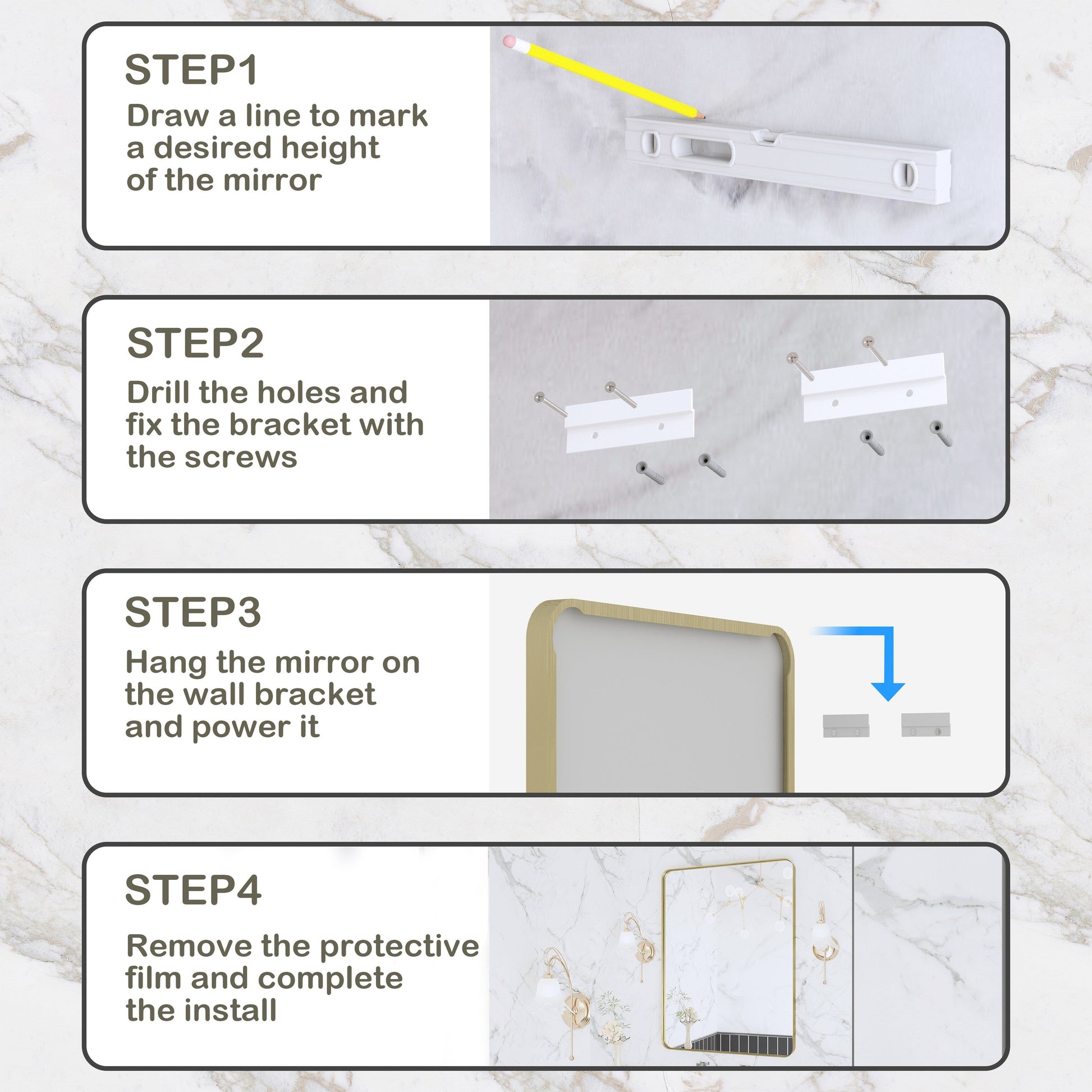 - 3. Easy installation and adjustable - Only locate and install 4pcs screws and 2pcs brackets included, you can hung the mirror vertically or horizontally and will finish this installation within 10 minutes!