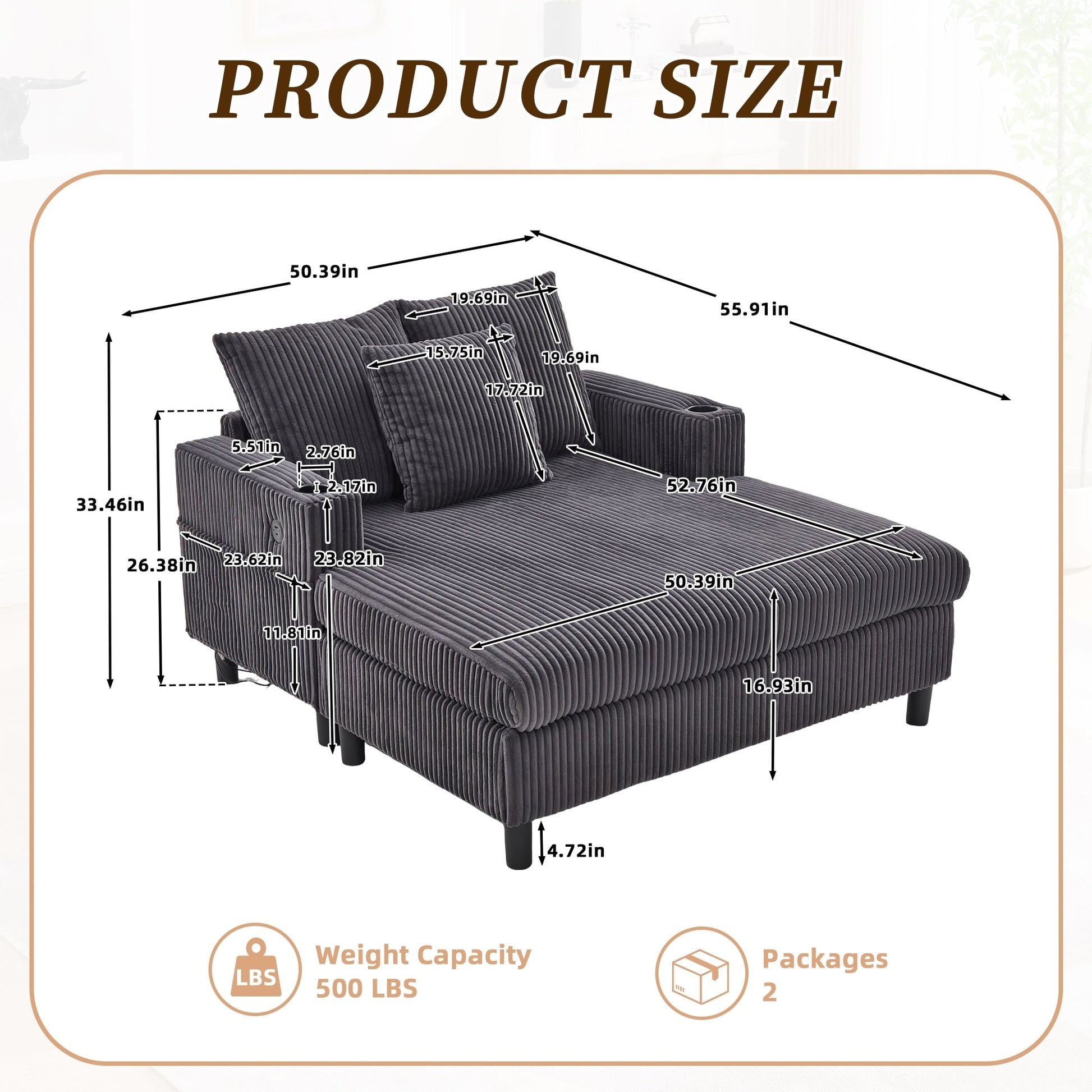 HOMEFUN Corduroy Upholstered Oversized RGB LED...