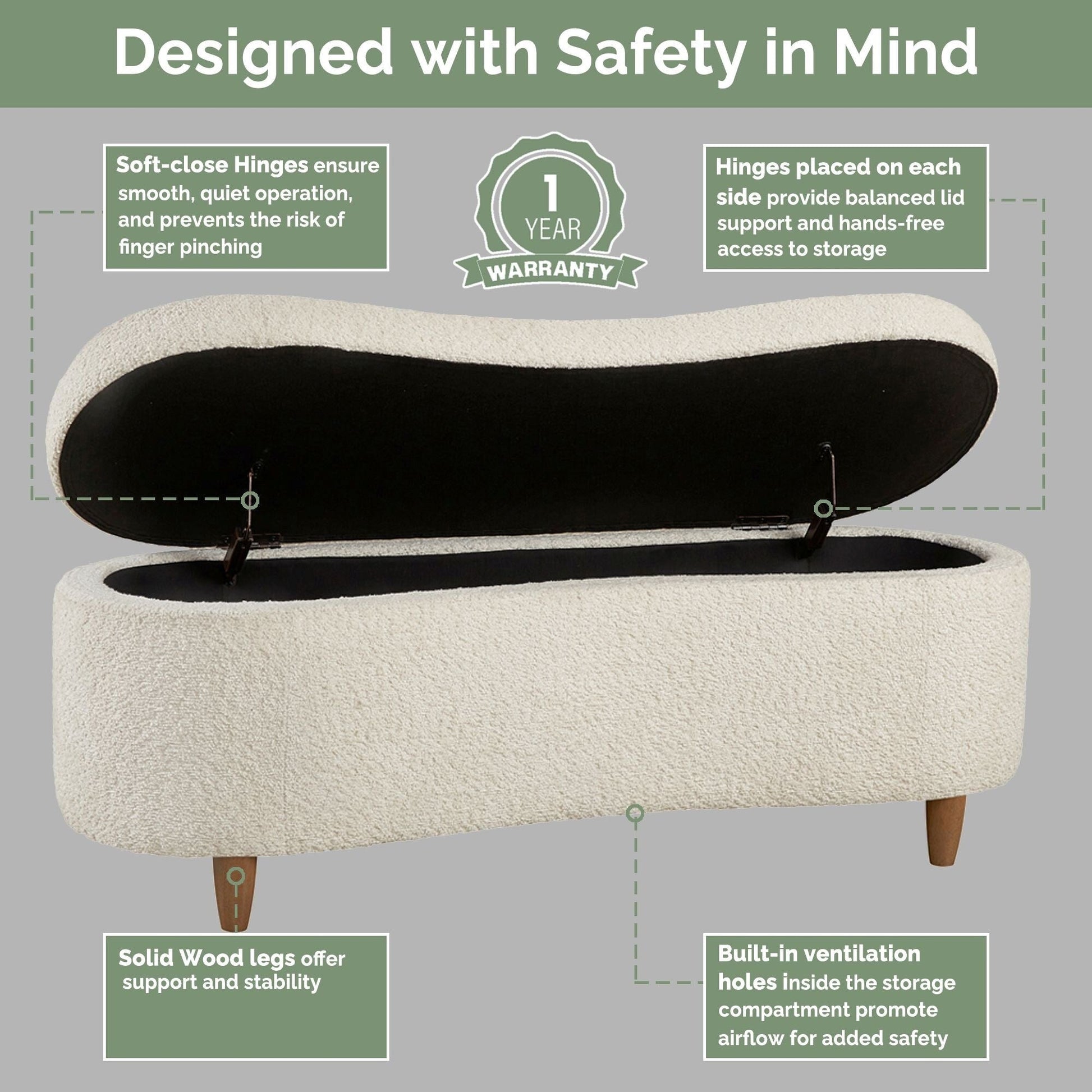 INK IVY Bailey Boucle-Style Curved Storage Accent Bench