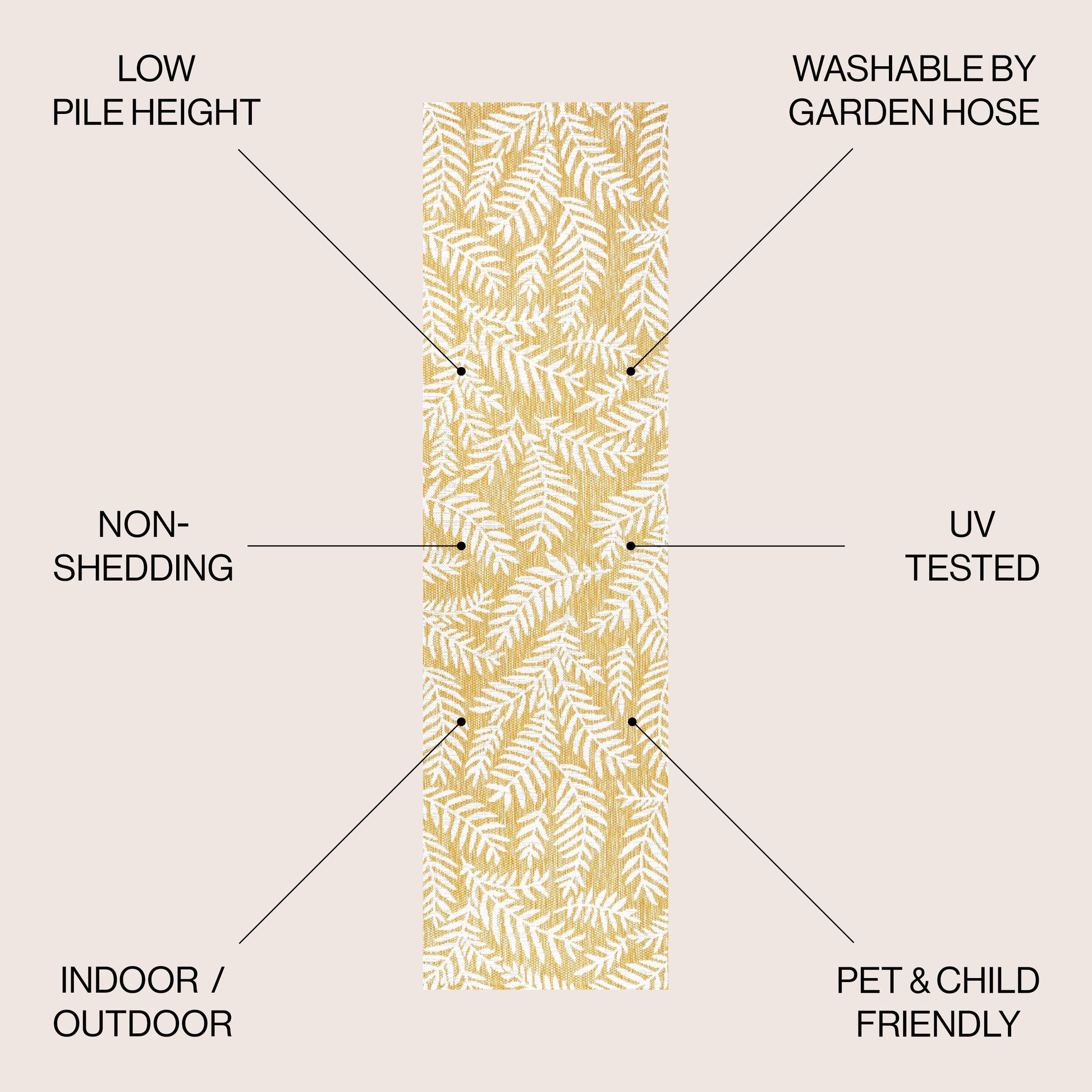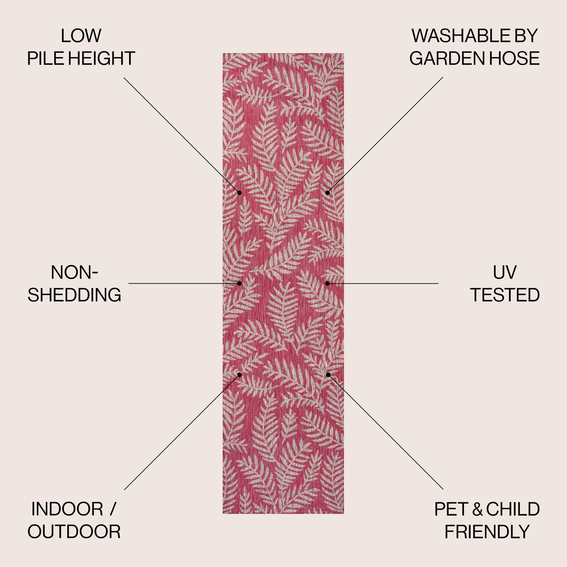 Bring a touch of the tropics to your indoor or outdoor space with the Galon Palm Frond Area Rug by JONATHAN Y. The allover palm frond pattern features scattered palm branches in contrasting colors, creating a busy yet stylish design. Ideal for your tropical patio, entryway, kitchen, hallway, living room or bedroom, this rug's flatweave construction is made of 100% durable and easy-care polypropylene. Kid-proof and pet-friendly, simply sweep or hose it down with mild soap and water. Available in multiple sizes and colors, this rug is power-loomed in Turkey and has a thickness of 0.19 inches.