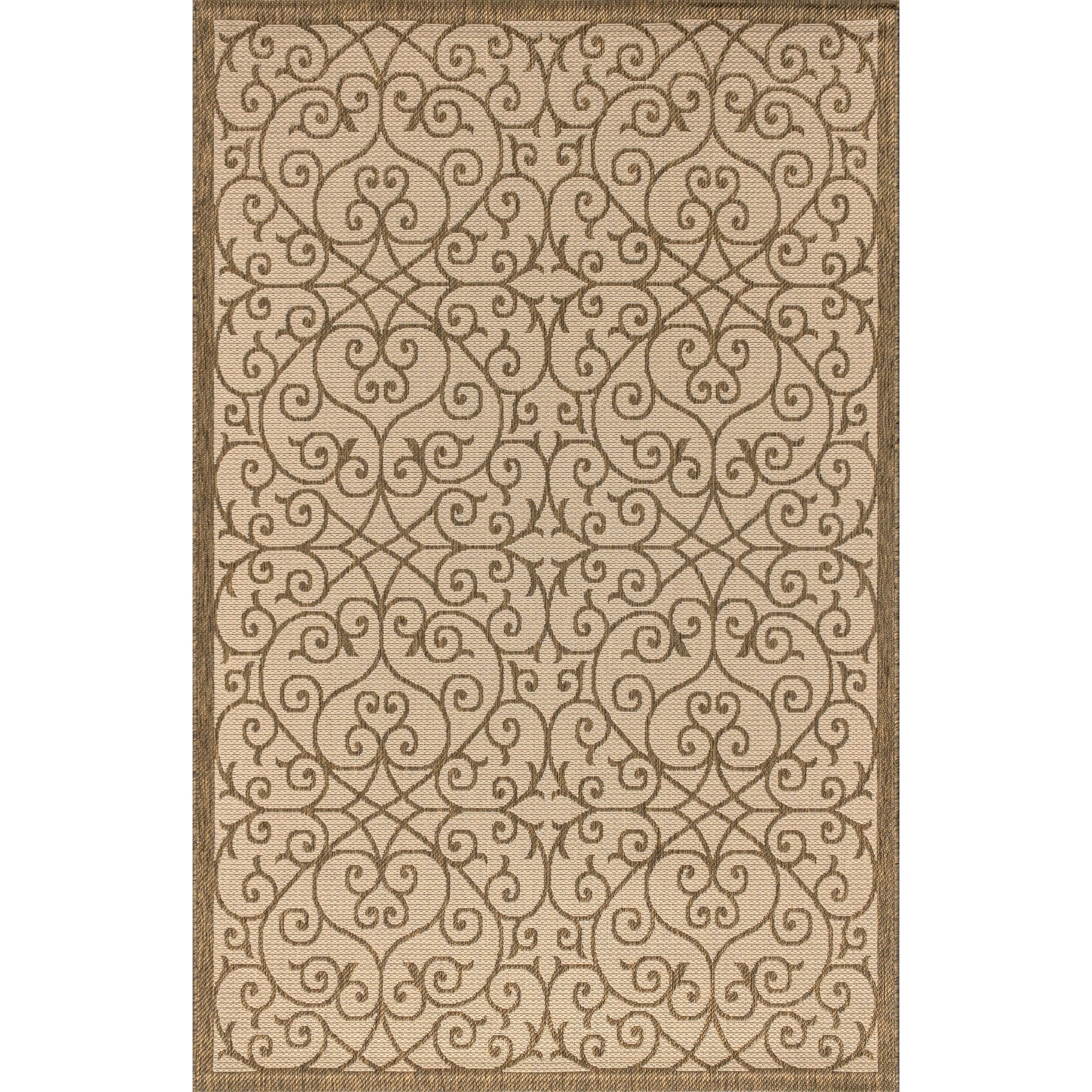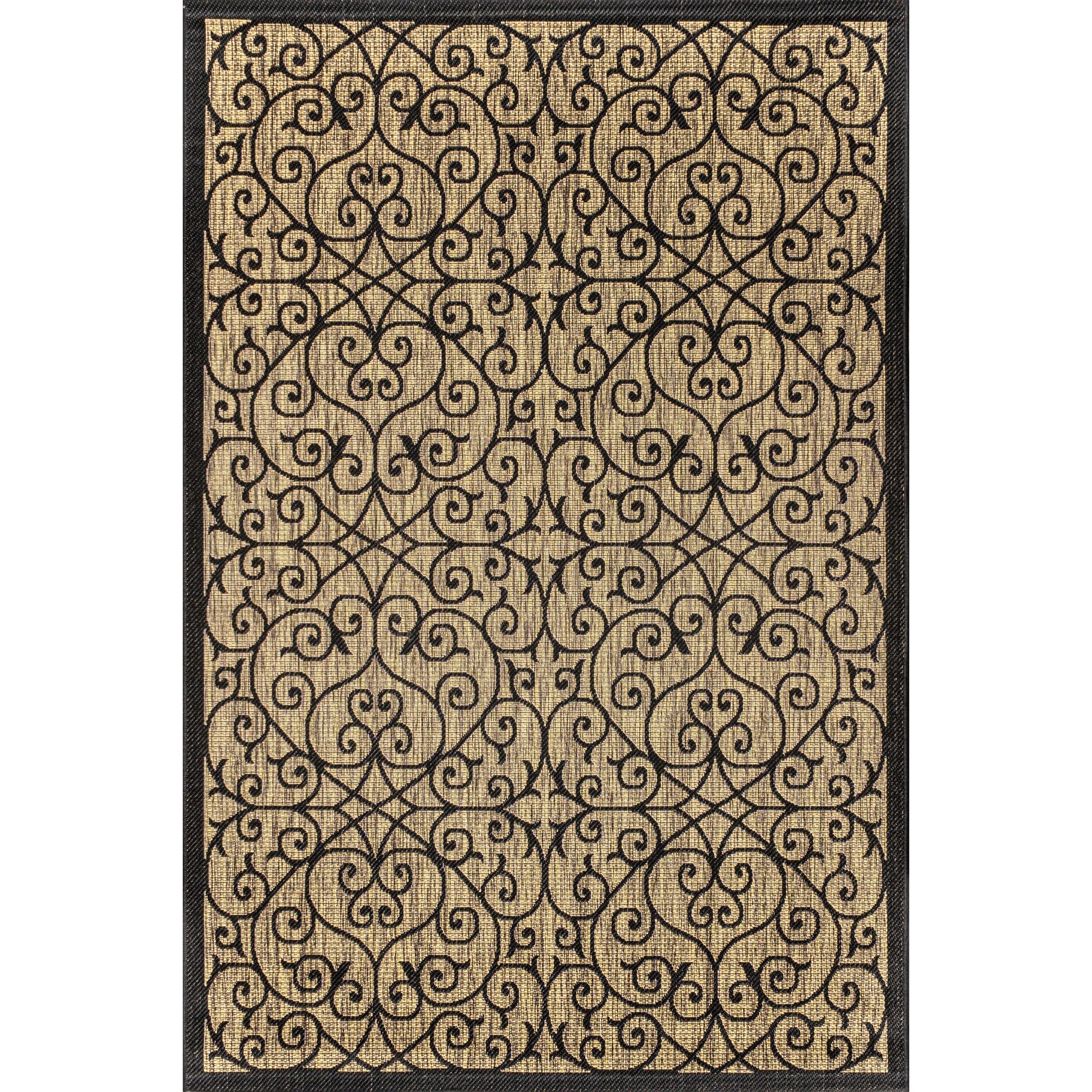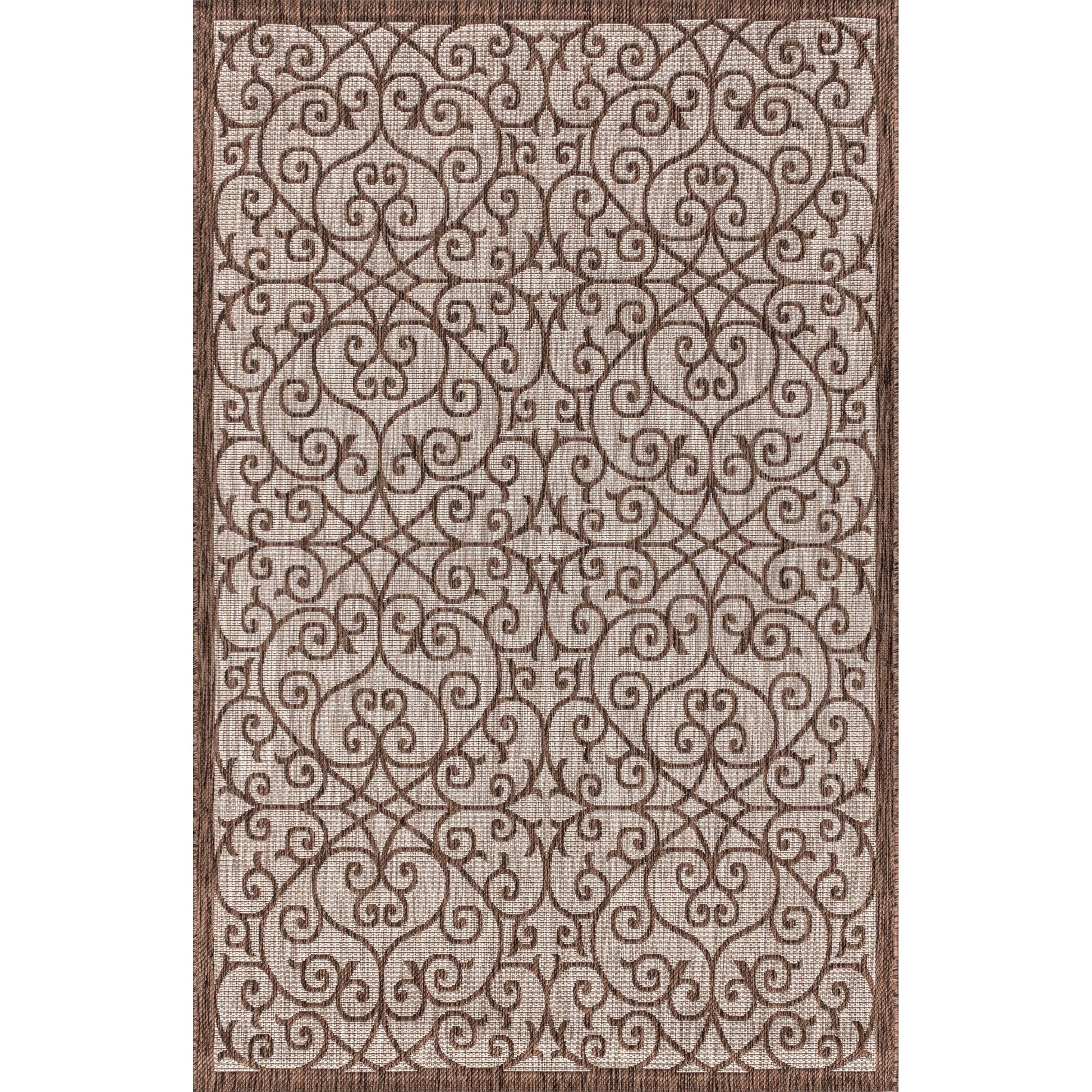 Add a touch of boho-chic style to your outdoor or indoor space with the JONATHAN Y Ourika Vintage Filigree Textured Weave Area Rug. Inspired by Spanish wrought iron, this rug features a filigree design in beige and brown tones with a black pattern for a vintage vibe. Made of 100% polypropylene, this flatweave rug is water-resistant and durable, making it perfect for high-traffic areas. Available in multiple sizes and colors, it is power-loomed in Turkey and has a thickness of 0.19 inches.