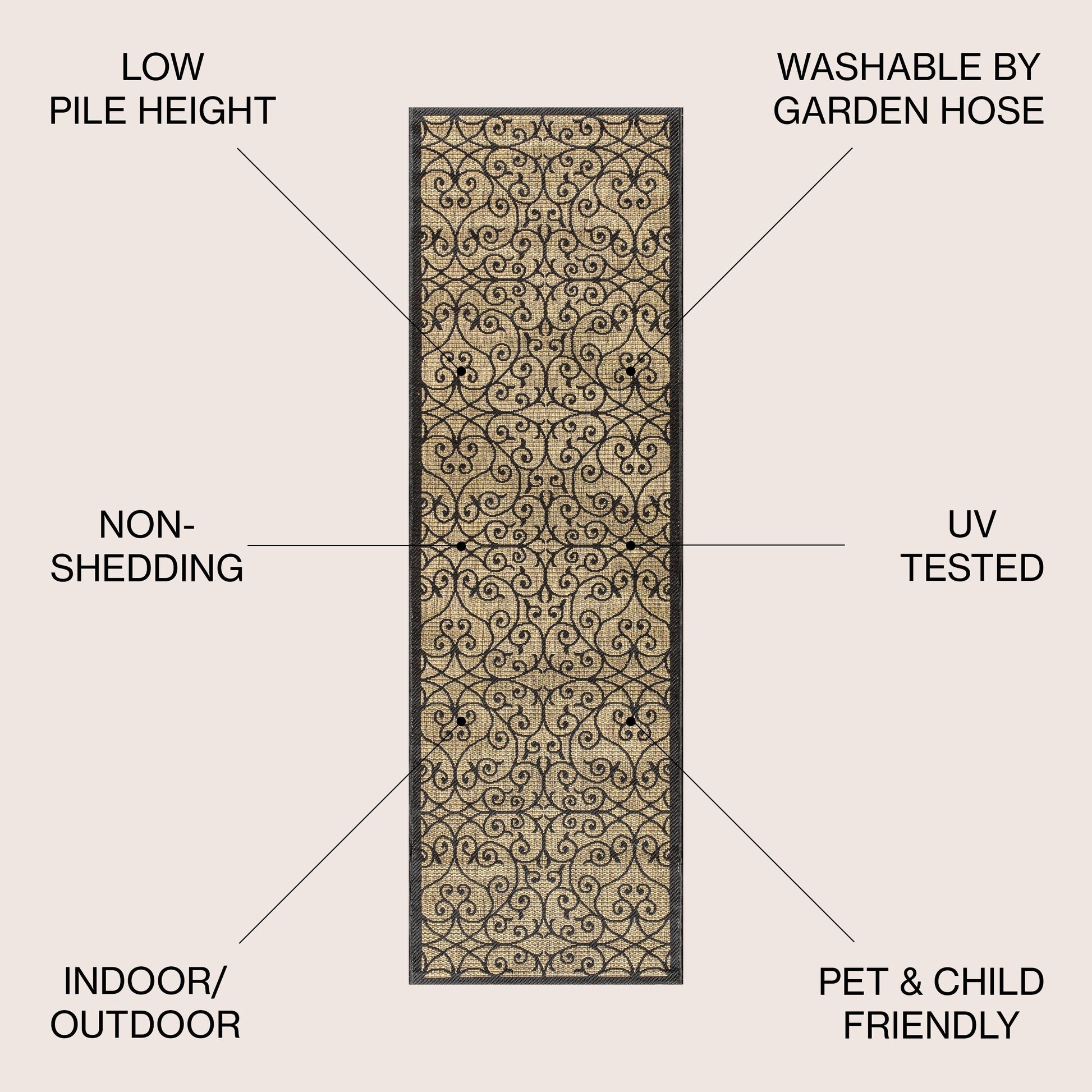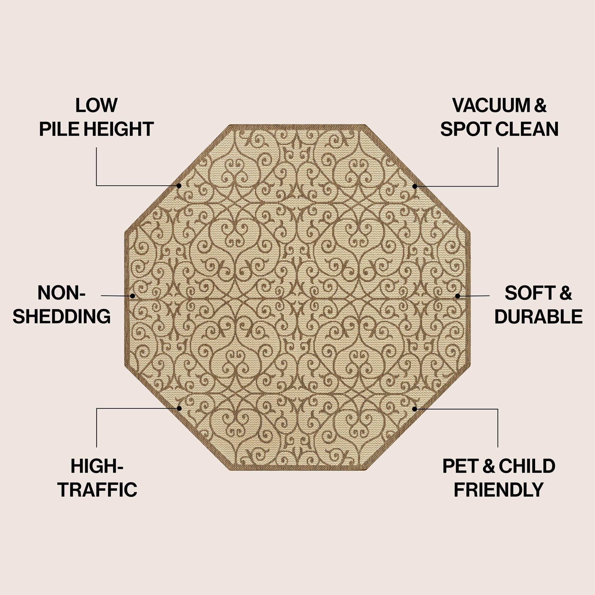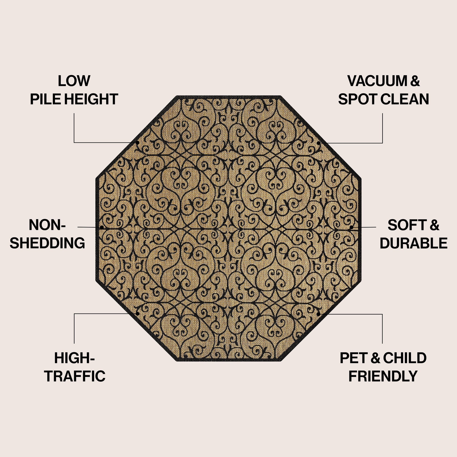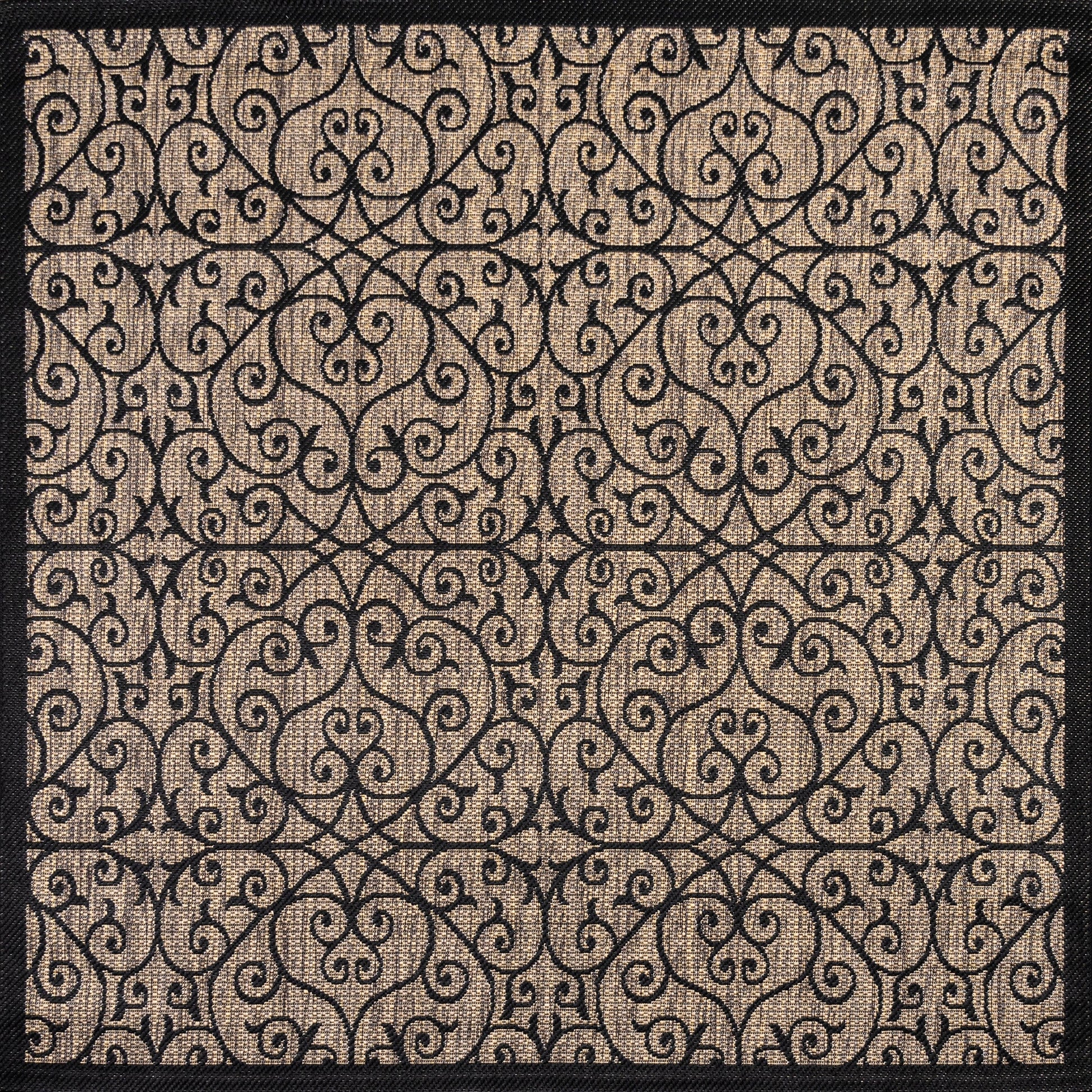 - Vintage-inspired filigree design in beige and brown tones with a black pattern