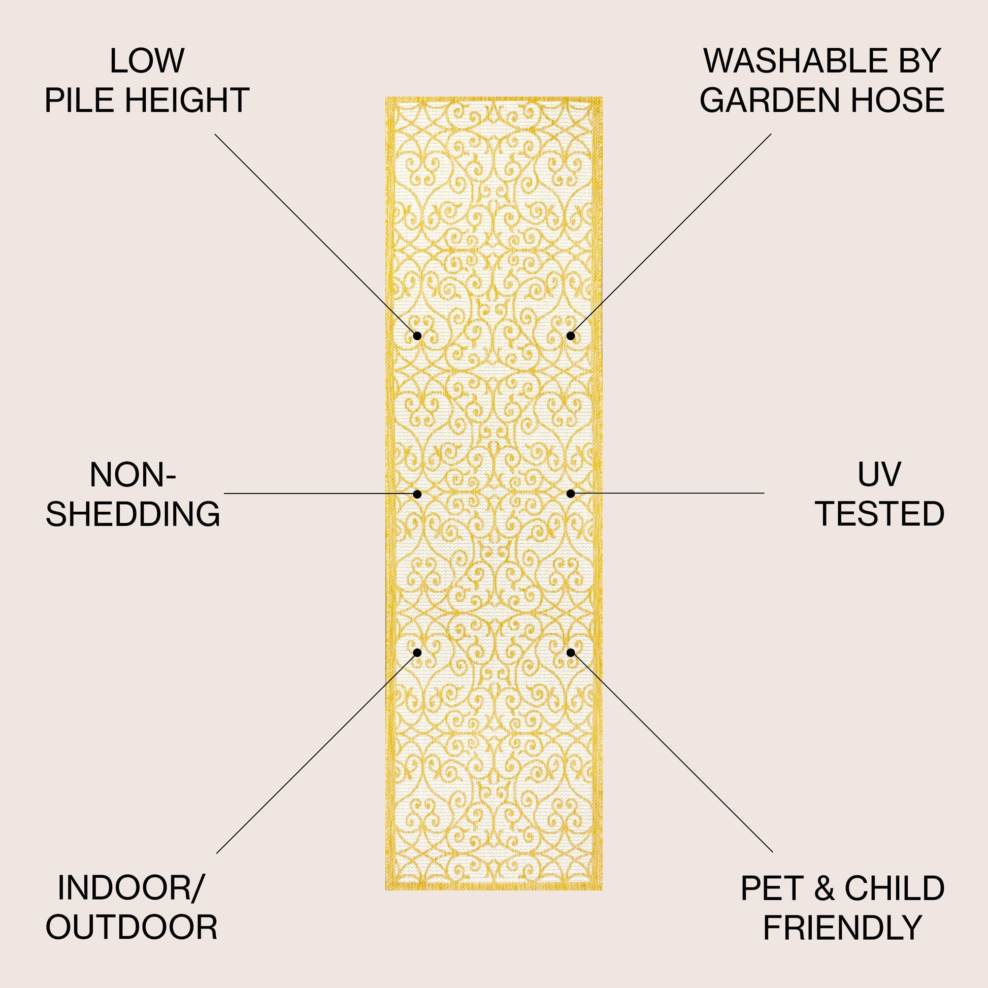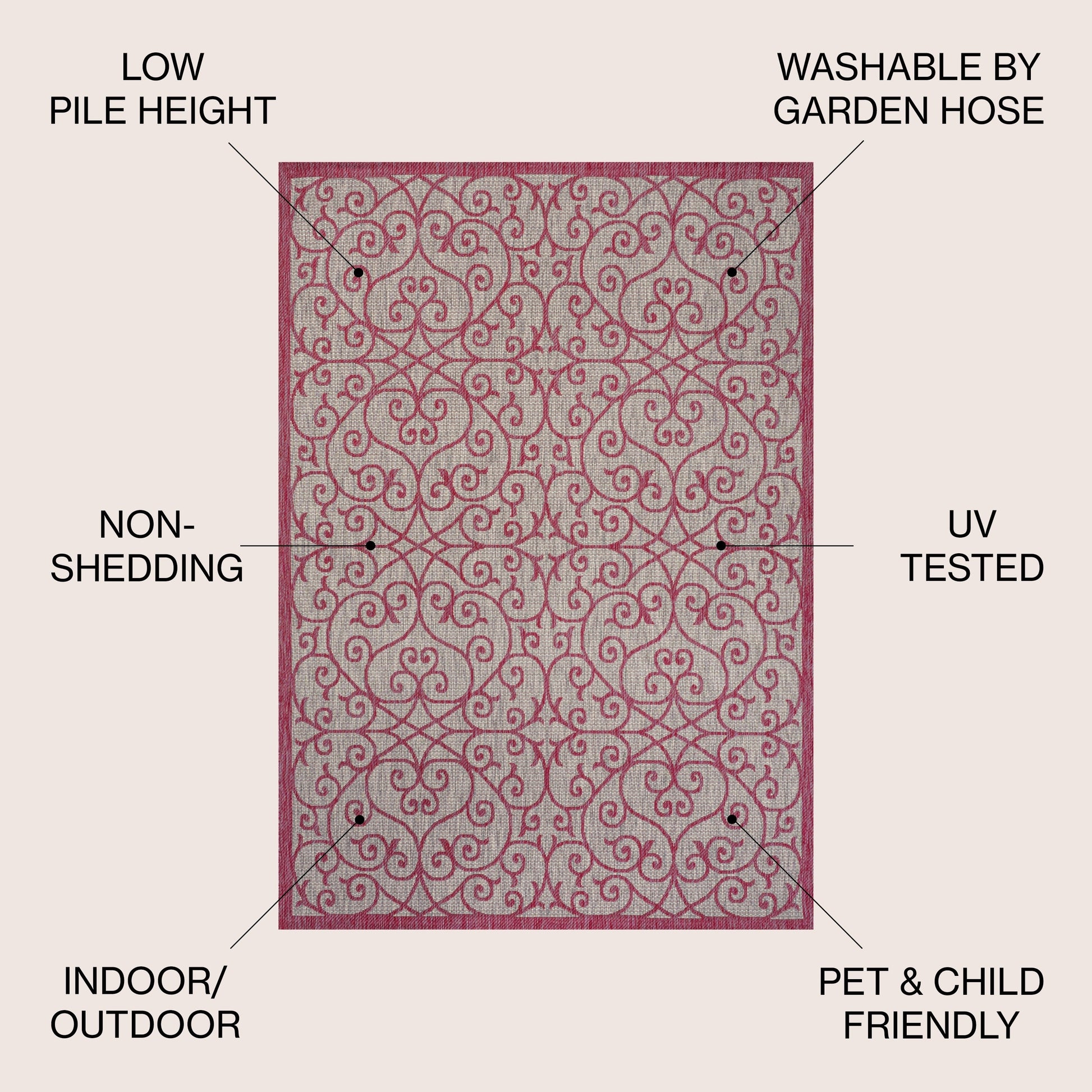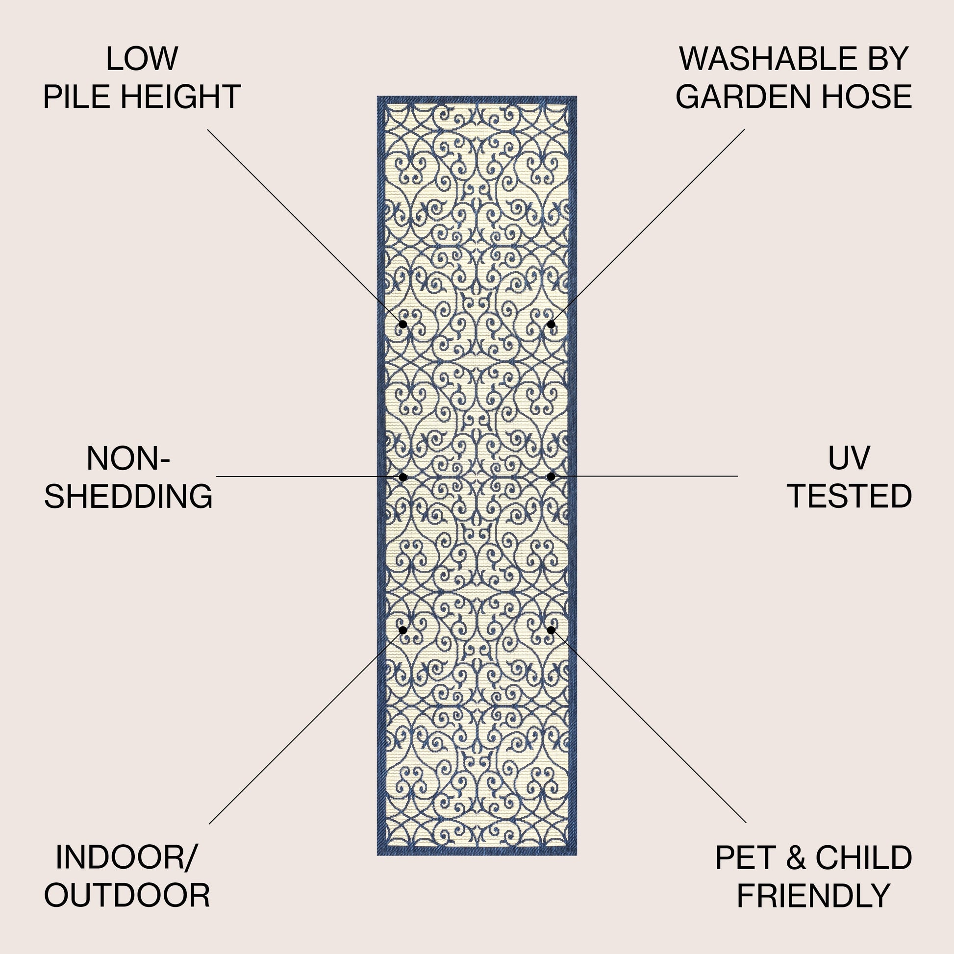 - Flat-weave construction of 100% polypropylene