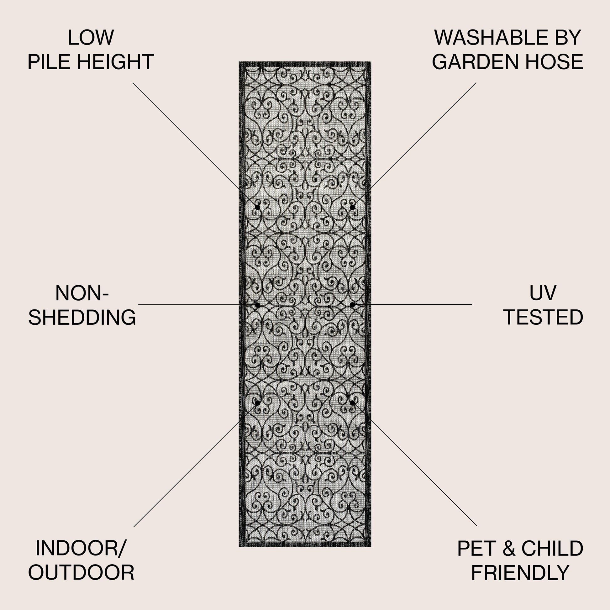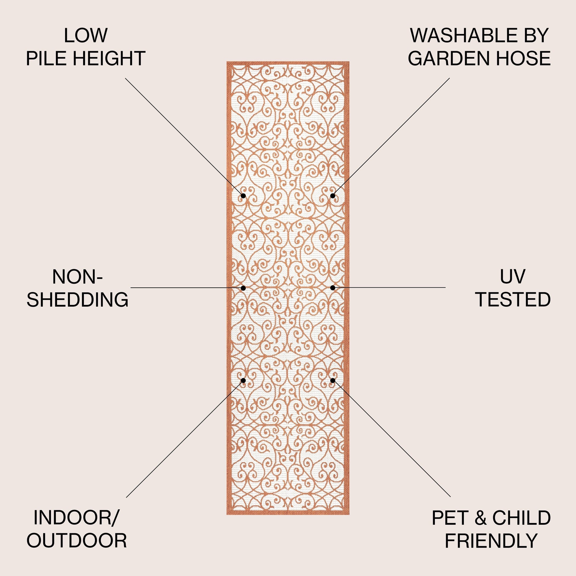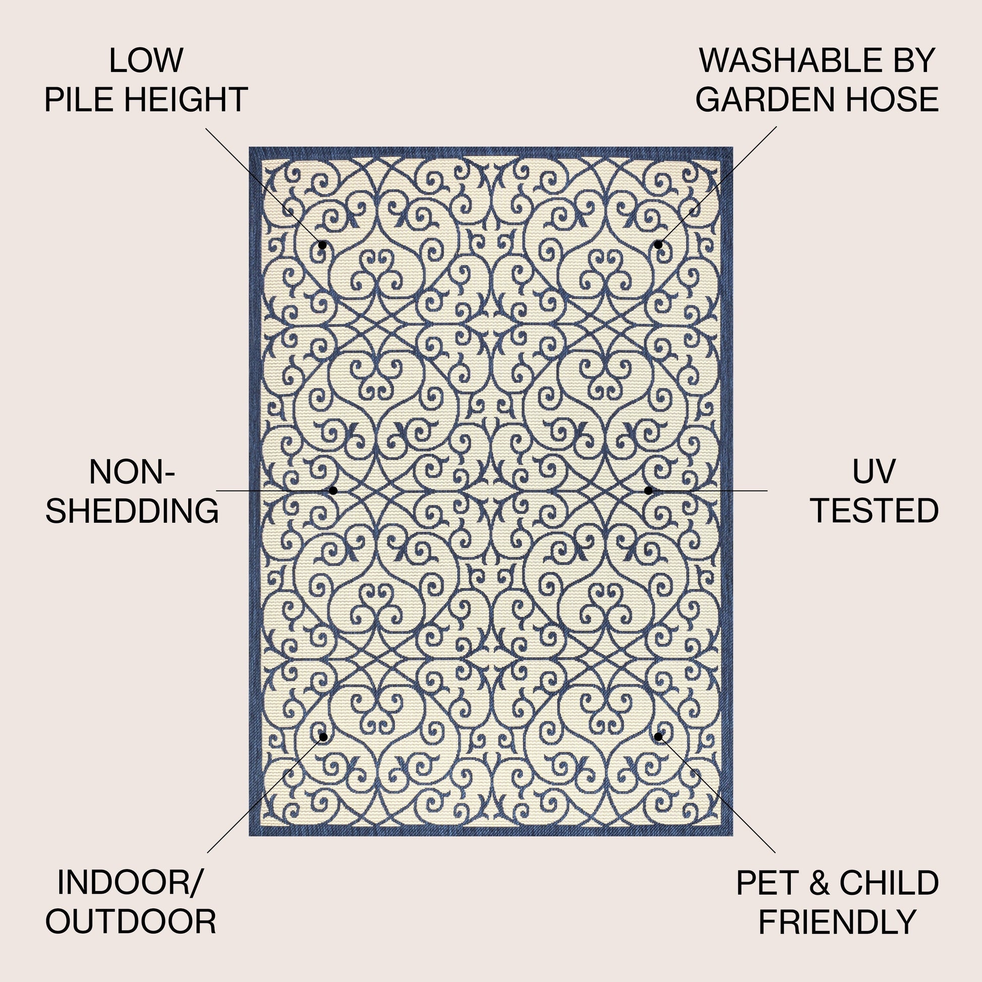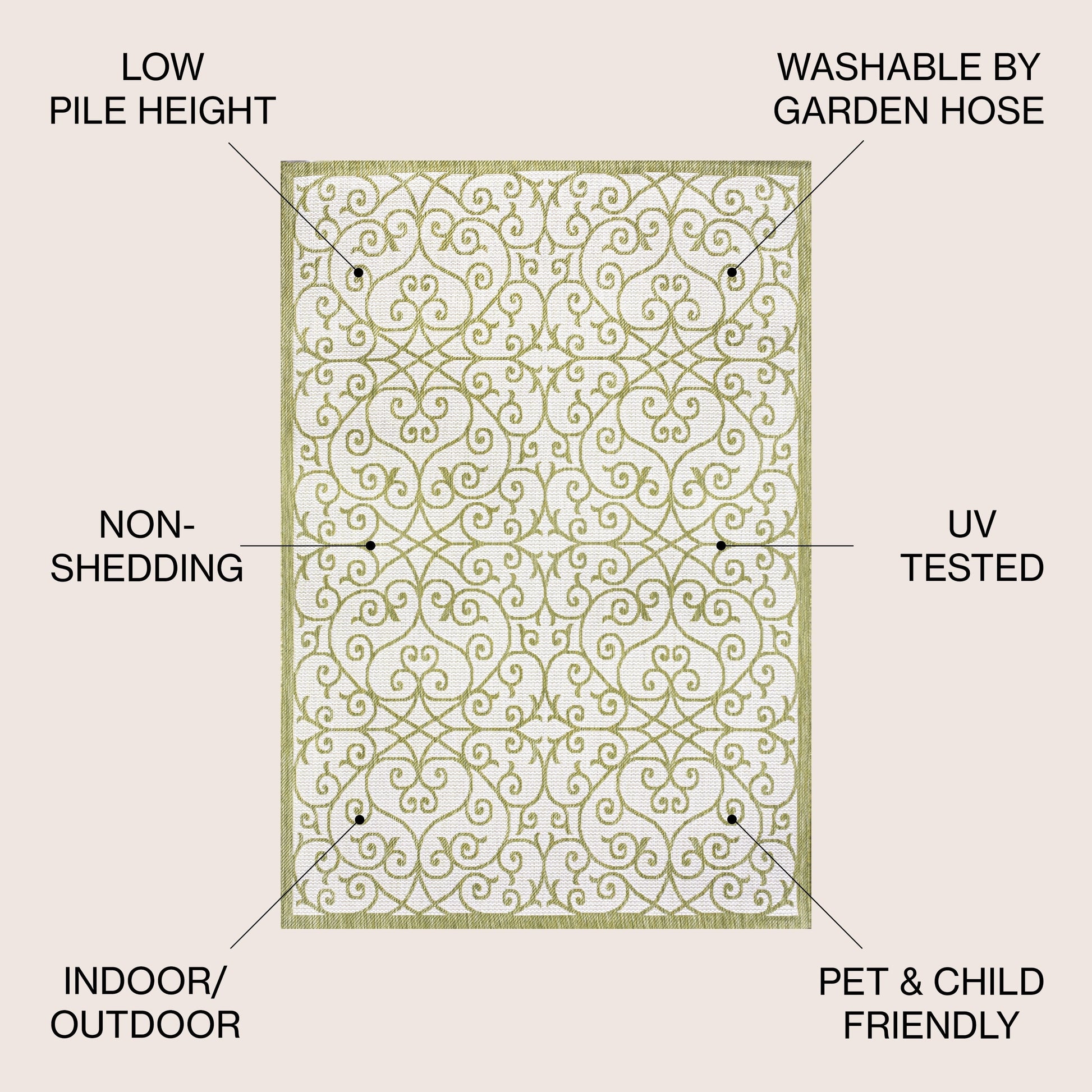 - Flat-weave construction of 100% polypropylene