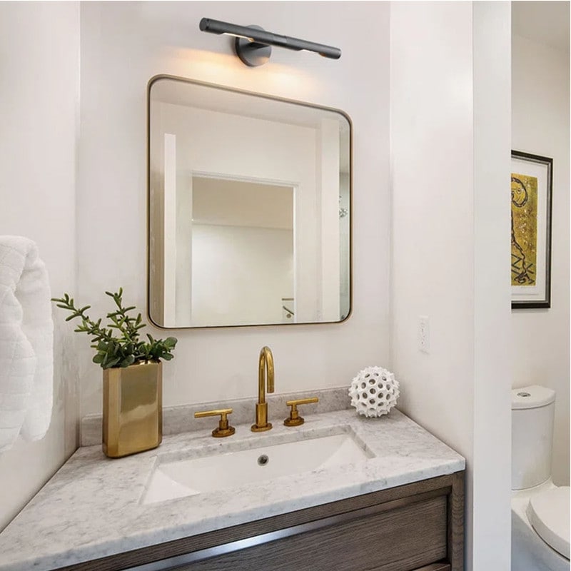 The Picture Lights For Wall are constructed from high-quality materials including a sturdy metal frame and thick glass to ensure durability and longevity. The gold vanity lighting fixture finish gives it a sleek and stylish look that complements any interior design scheme, making this a stunning piece of lighting that will enhance the décor of any room it is placed in. This 2-light wall light fixture is versatile and you can either hang it vertically next to your mirror or horizontally above the mirror.