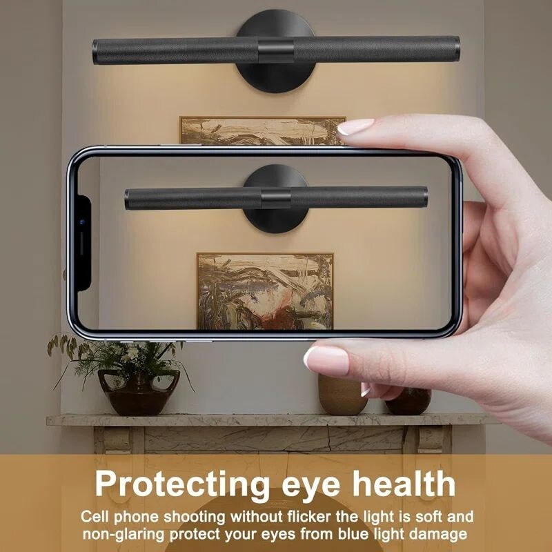 Brass Picture Light: Crafted from premium copper, this wireless picture lights for wall showcases exceptional quality and attention to detail. The thickened copper tube not only enhances its texture but also adds a touch of elegance. With its meticulously detailed surface and exquisite workmanship, this art light exudes sophistication and luxury, elevating your home lighting to a whole new level.