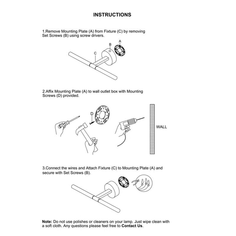 Easy & Quick Installation: Wall Mounted Lighting Design. All mounting hardware required for installation is included in the package, just need to connect the wire, and then place the glass shade and bulb. The indoor sconce is quick and easy to install and use.