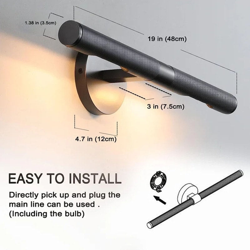 Multi-Purposes& Bulb Sockets: The vanity lights over mirror are suitable for the mirror, stairway, balcony, indoor aisle, office, etc, Modern LED wall lamps brighten your living instantly. Measuring 18.9 inches in length, this wall light is designed for easy installation. The disc base, with a diameter of 4.7 inches, provides stability and support. The package includes 2 E12 bulbs, compatible with a voltage range of 110V-240V.
