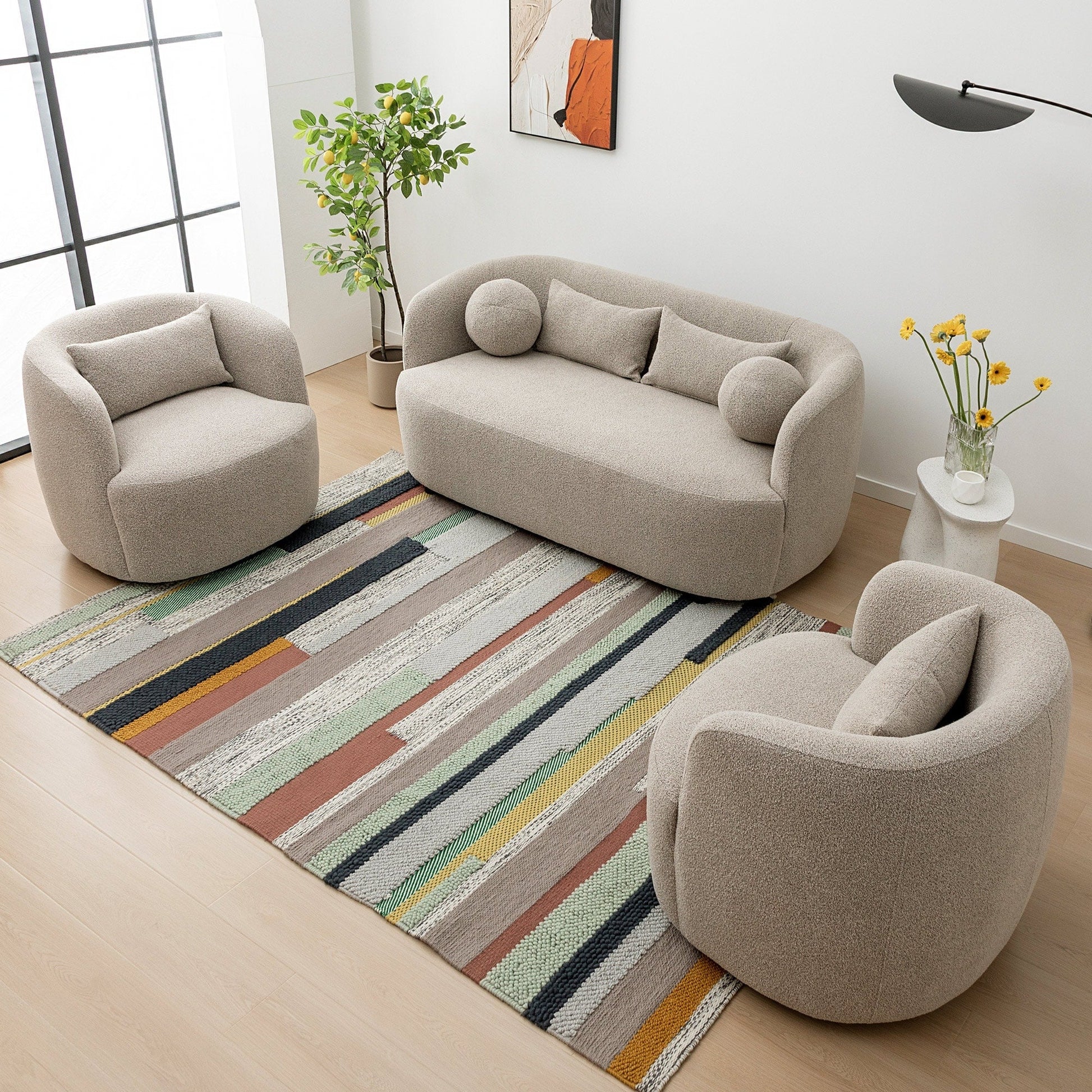 KINWELL Boucle Upholstered 2-Seats Loveseat with Pillows