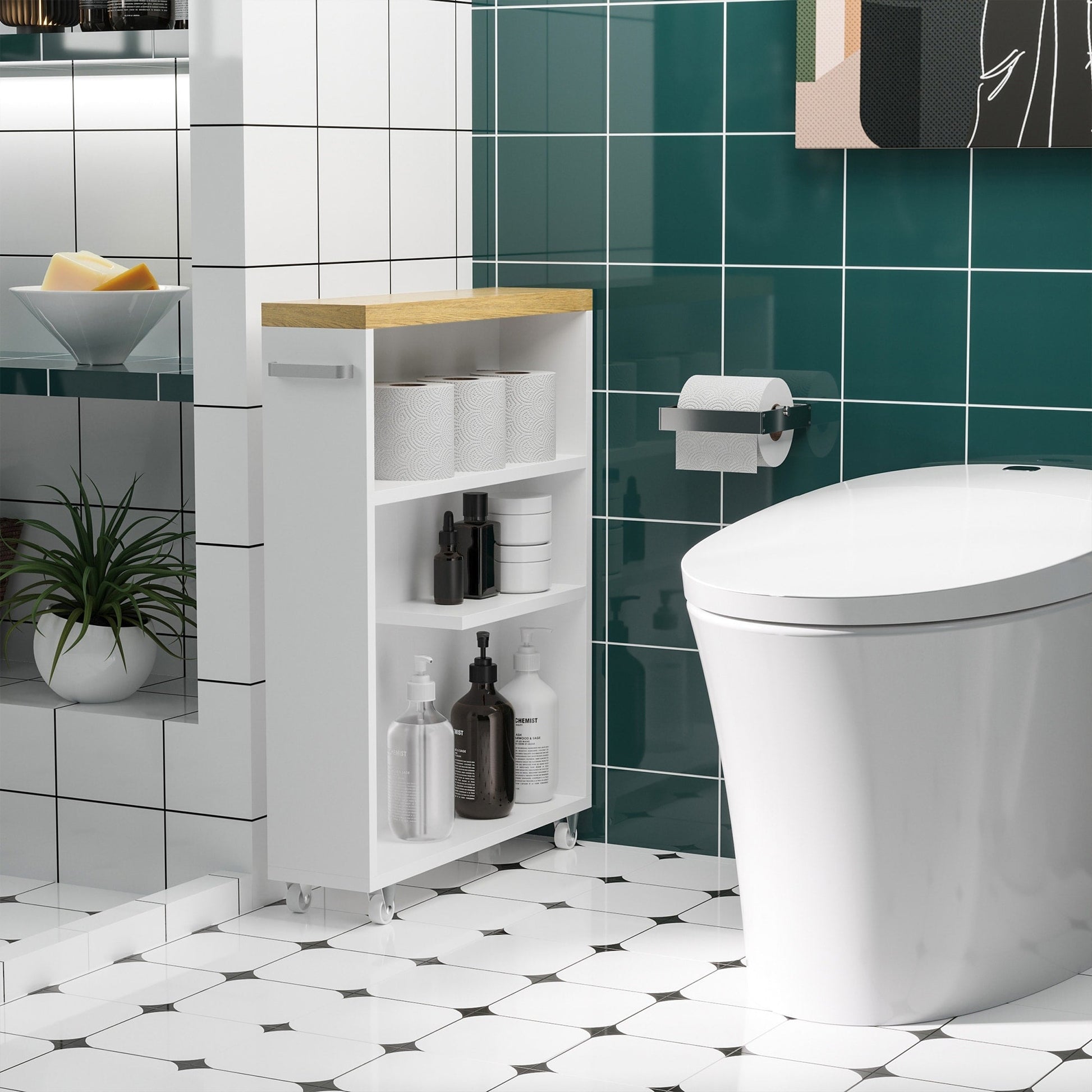 kleankin Slim Bathroom Cabinet with Castor Wheels Storage...