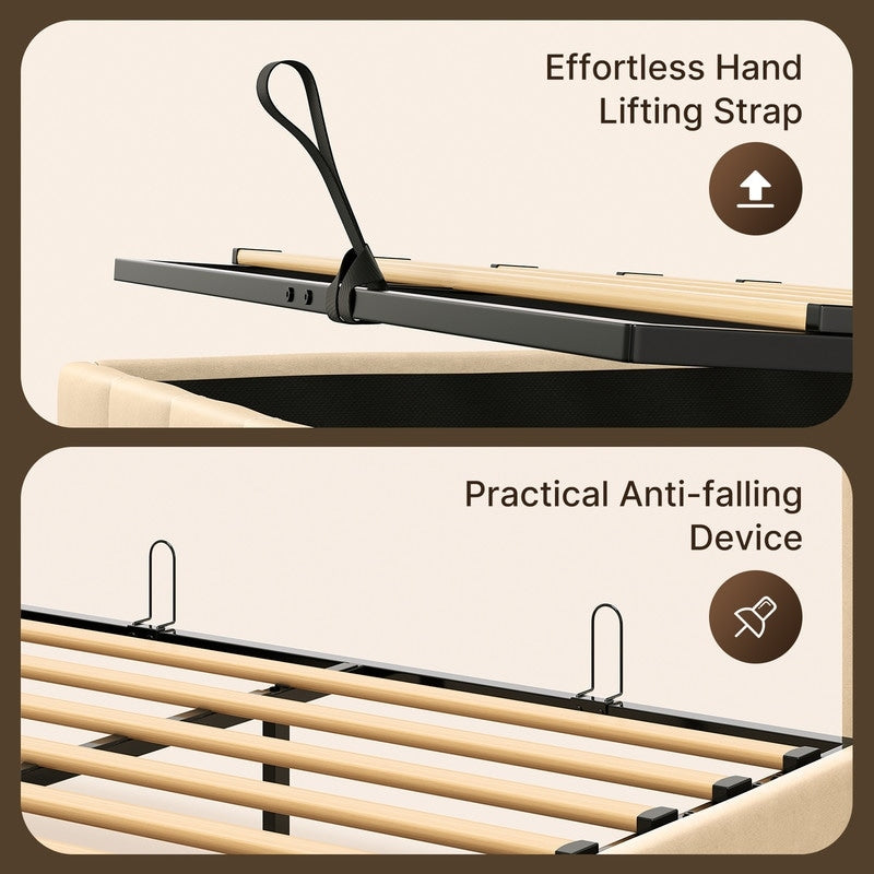 • Maximized Storage: The lift-up mechanism offers a large storage area for bedding, clothing, shoes, or any other items you want to keep out of sight, helping to declutter your bedroom.