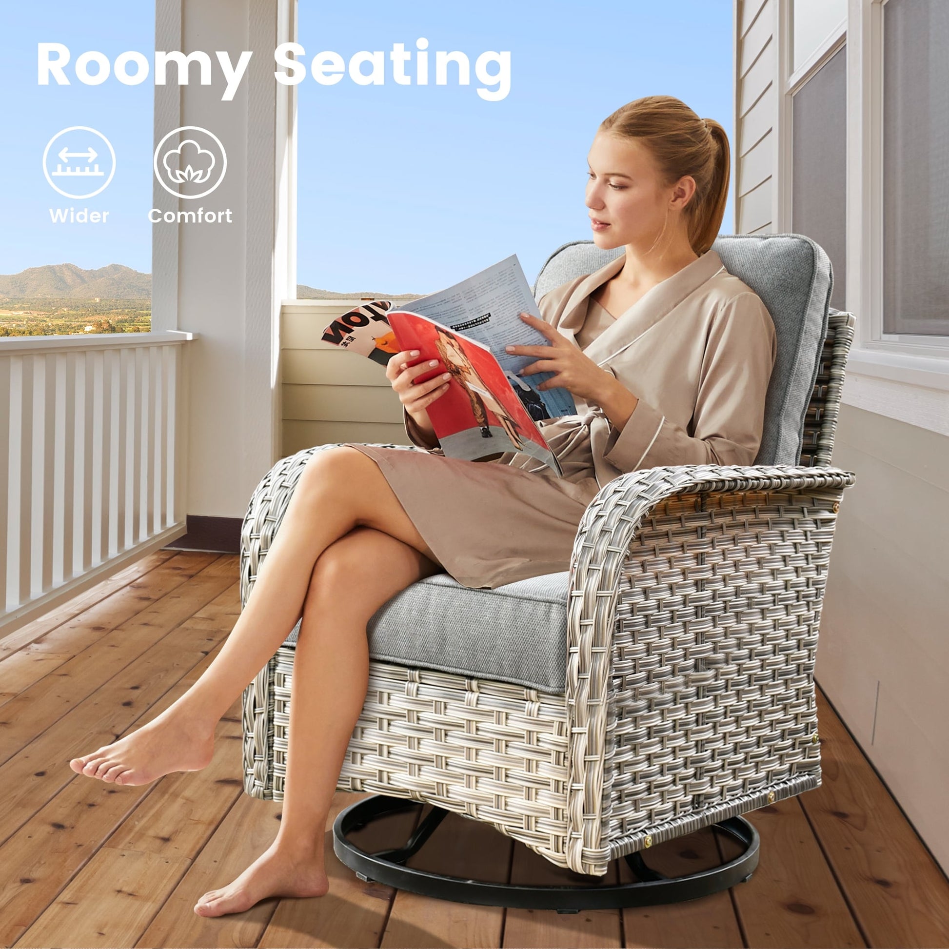 Swivel Chair: Enjoy the flexibility and comfort of the included swivel chair, allowing for easy movement and a 360-degree view of your surroundings.
