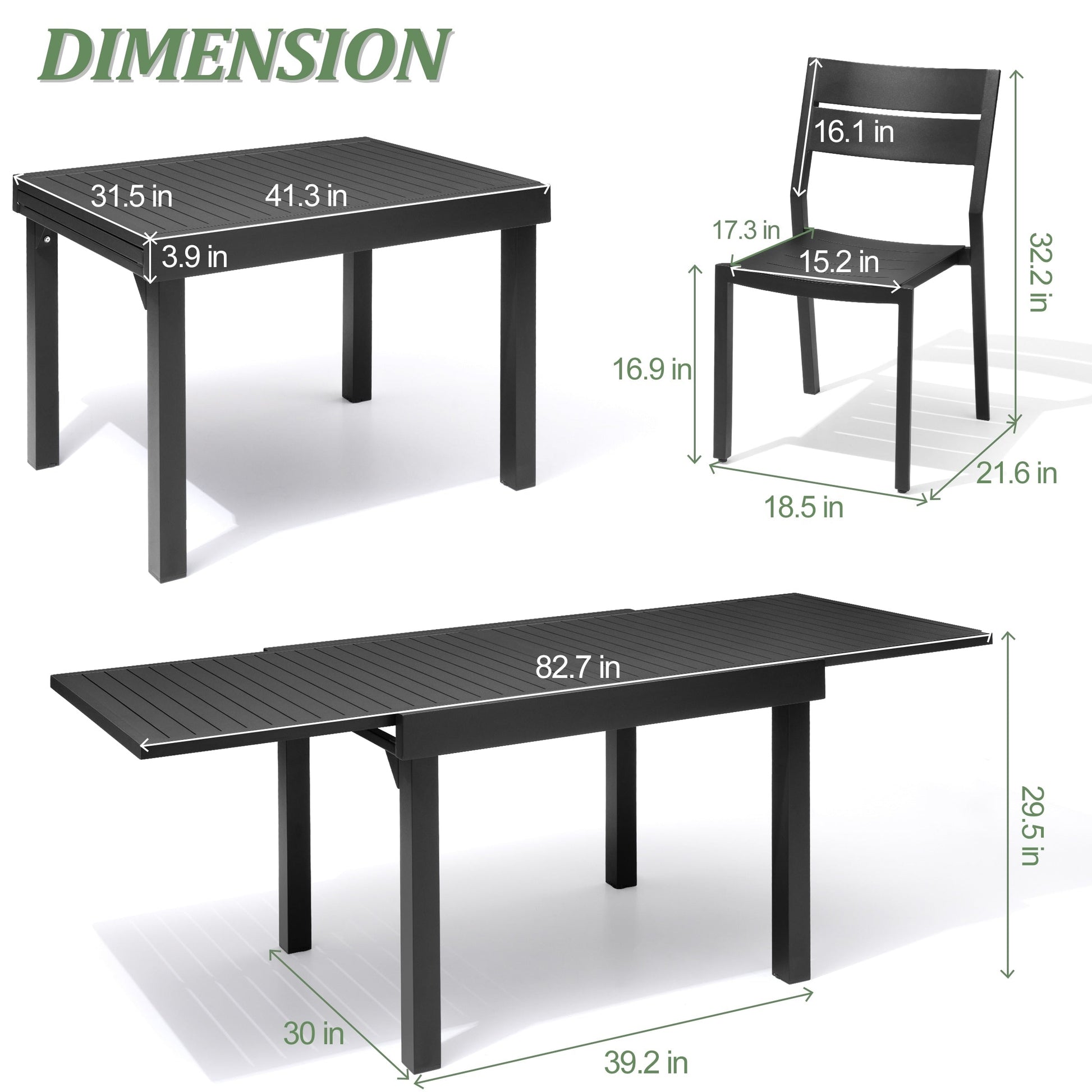 Make the summer extra special with this 5/7/9 pieces outdoor aluminum dining set. With an expandable table and chairs, this set is designed to accommodate unexpected guests while saving space, making it ideal for small outdoor areas. Its modern design brings a chic look to any outdoor area and upgrade the patio decoration, perfect for alfresco dining and entertaining. ???