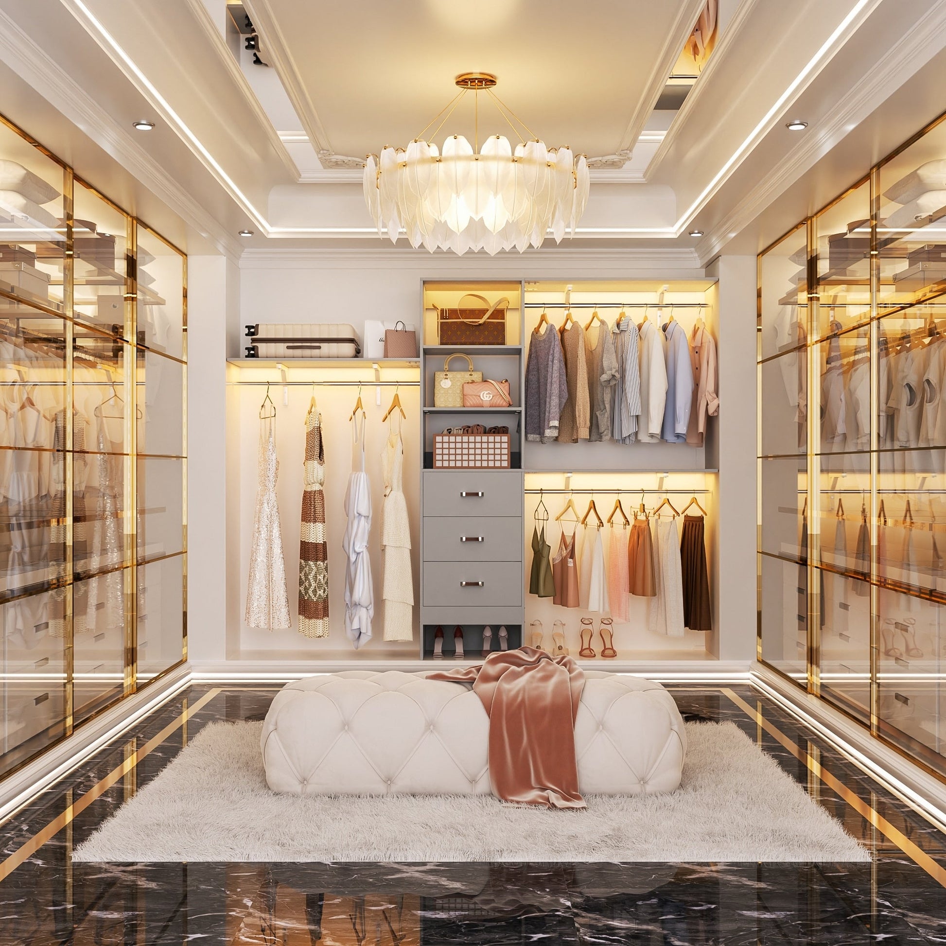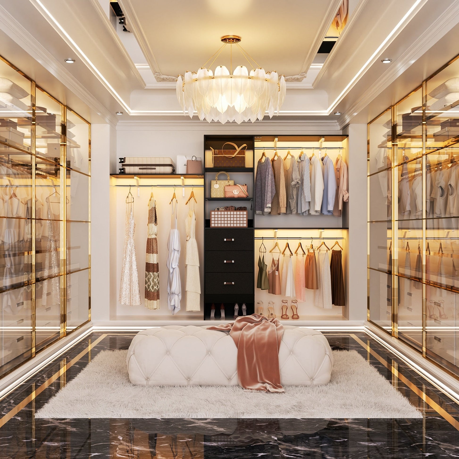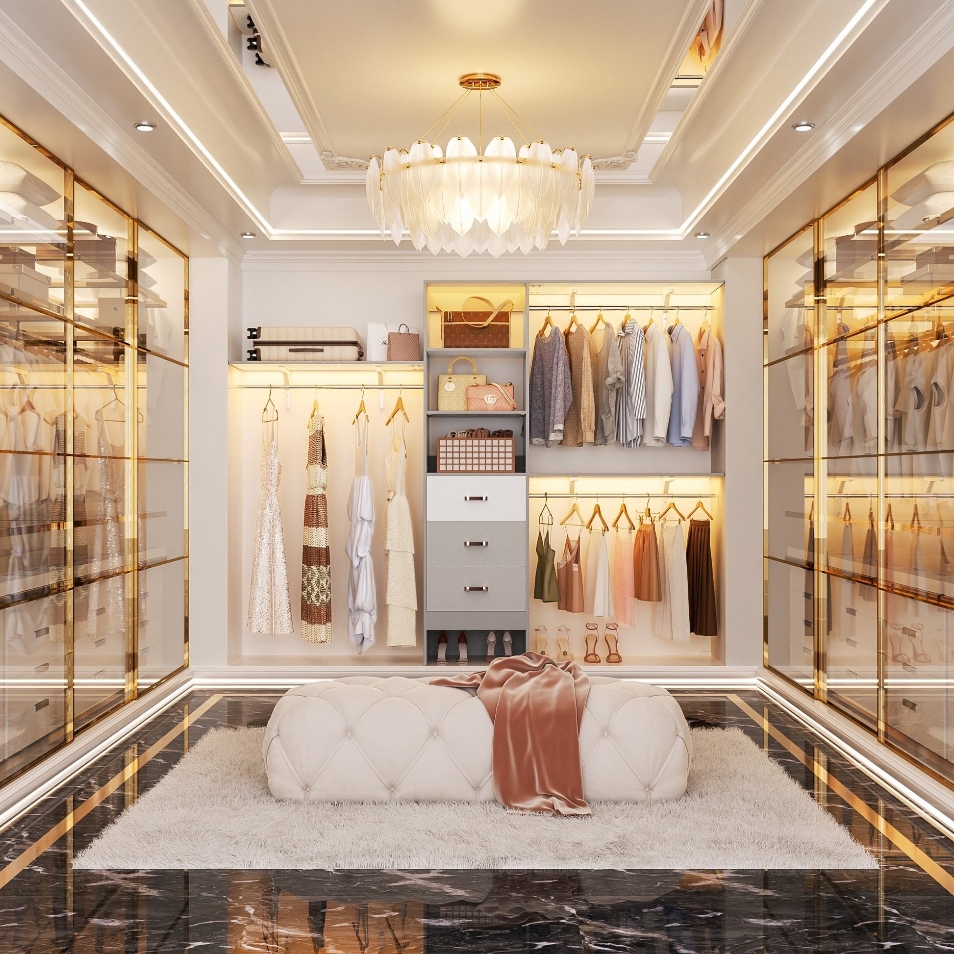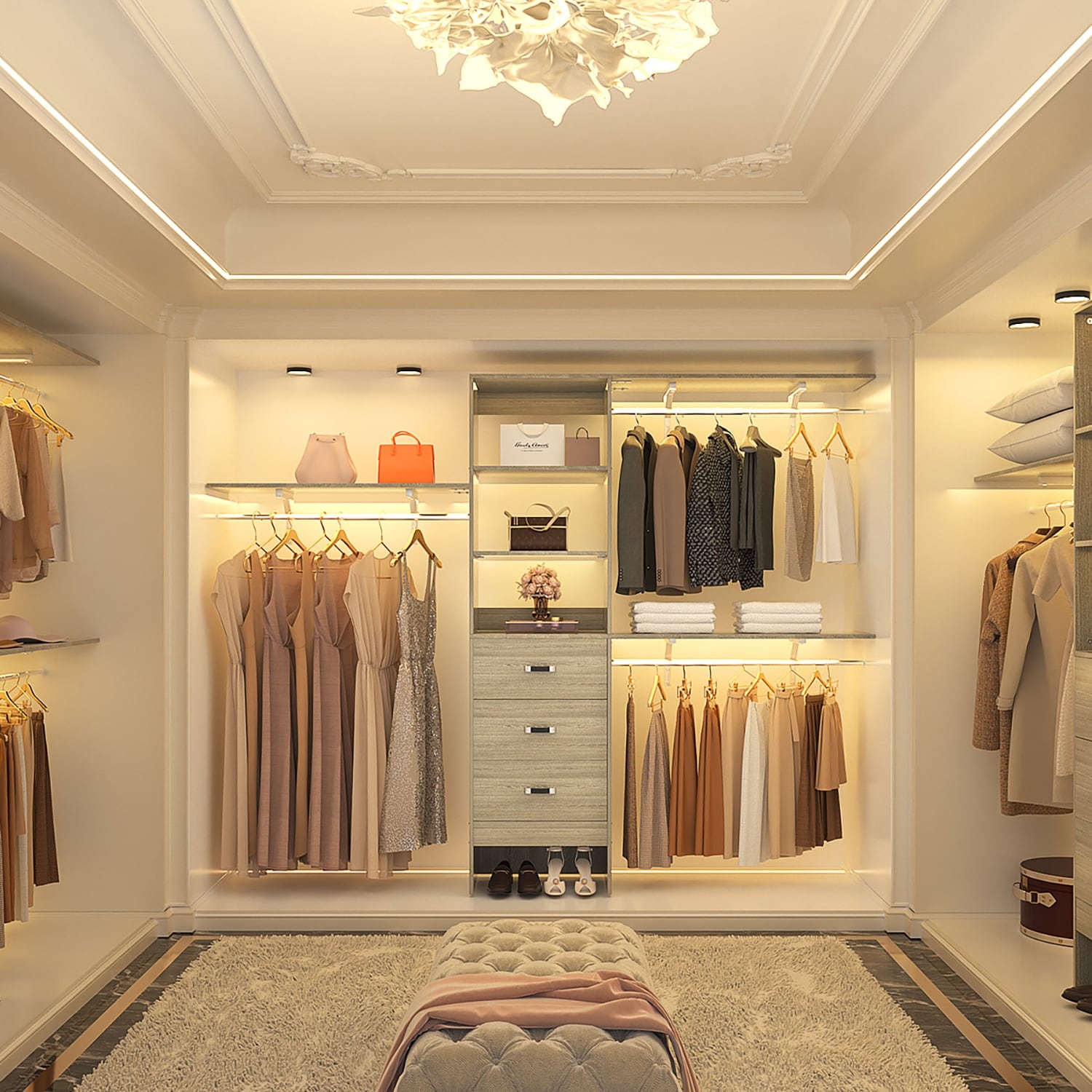 • Versatile fit for all closets: Designed to adapt seamlessly to both walk-in and reach-in closet spaces.