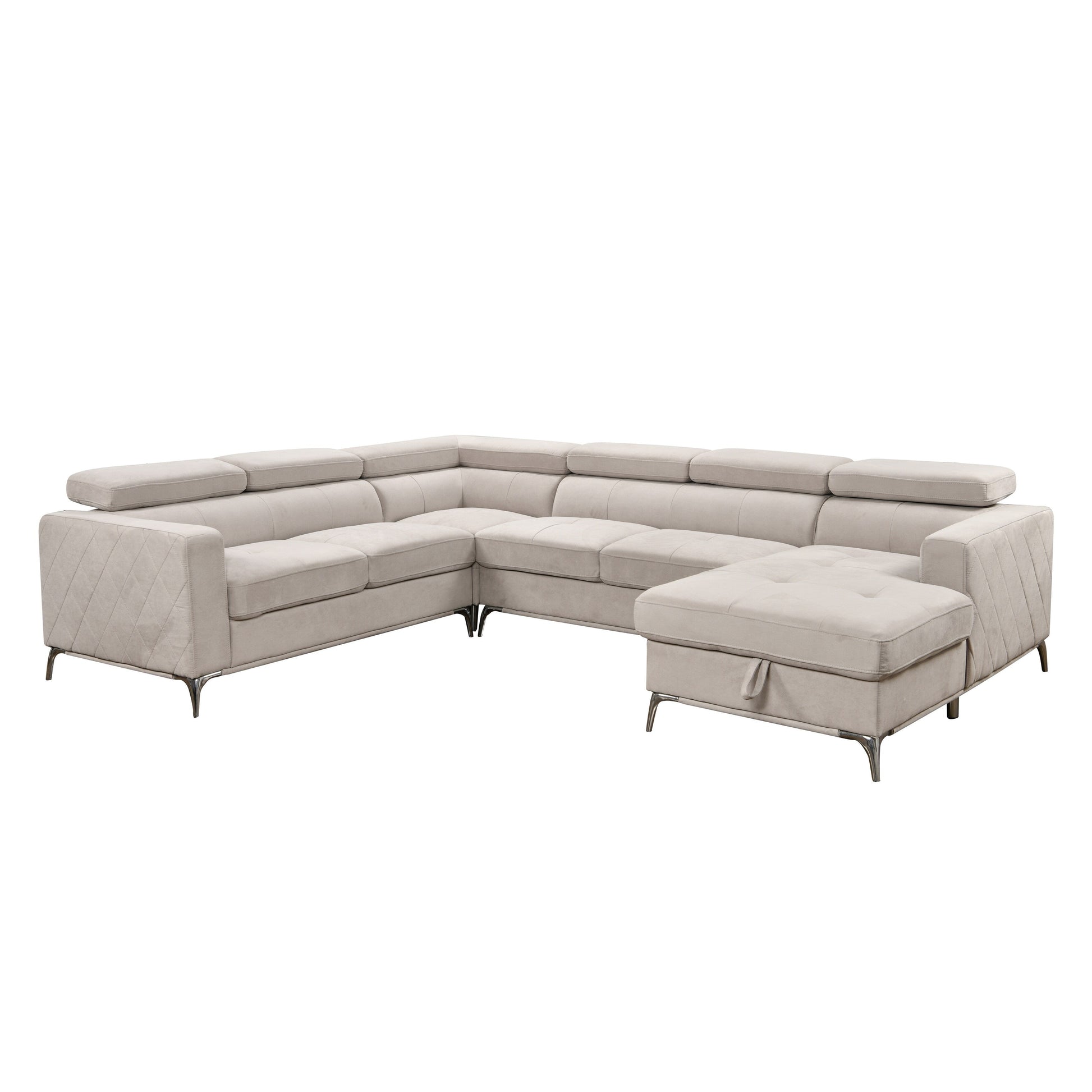 Roomfitters 122 Oversized Sectional Sofa Couch with Chaise Storage, Contemporary U-Shaped 7-Seater Sofa