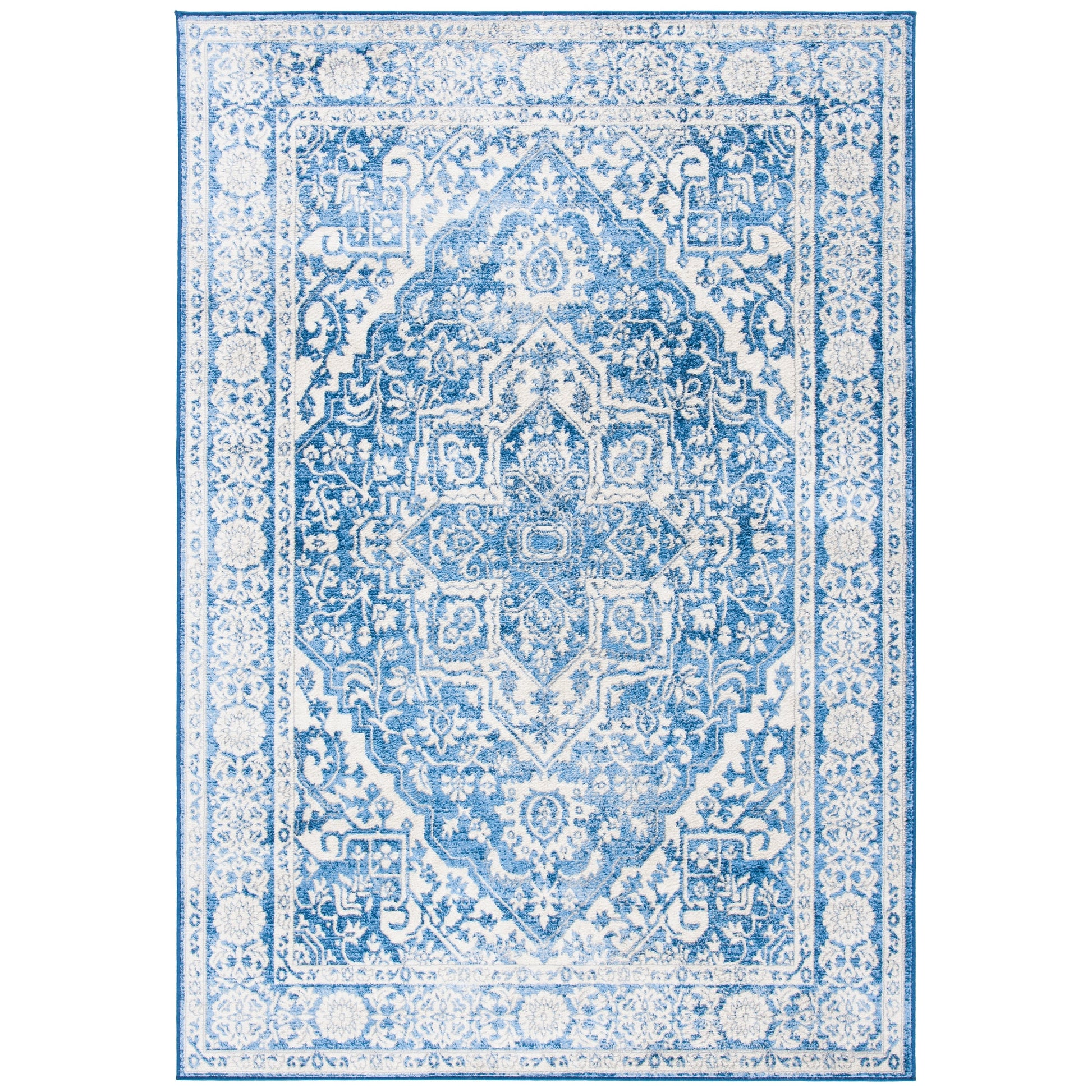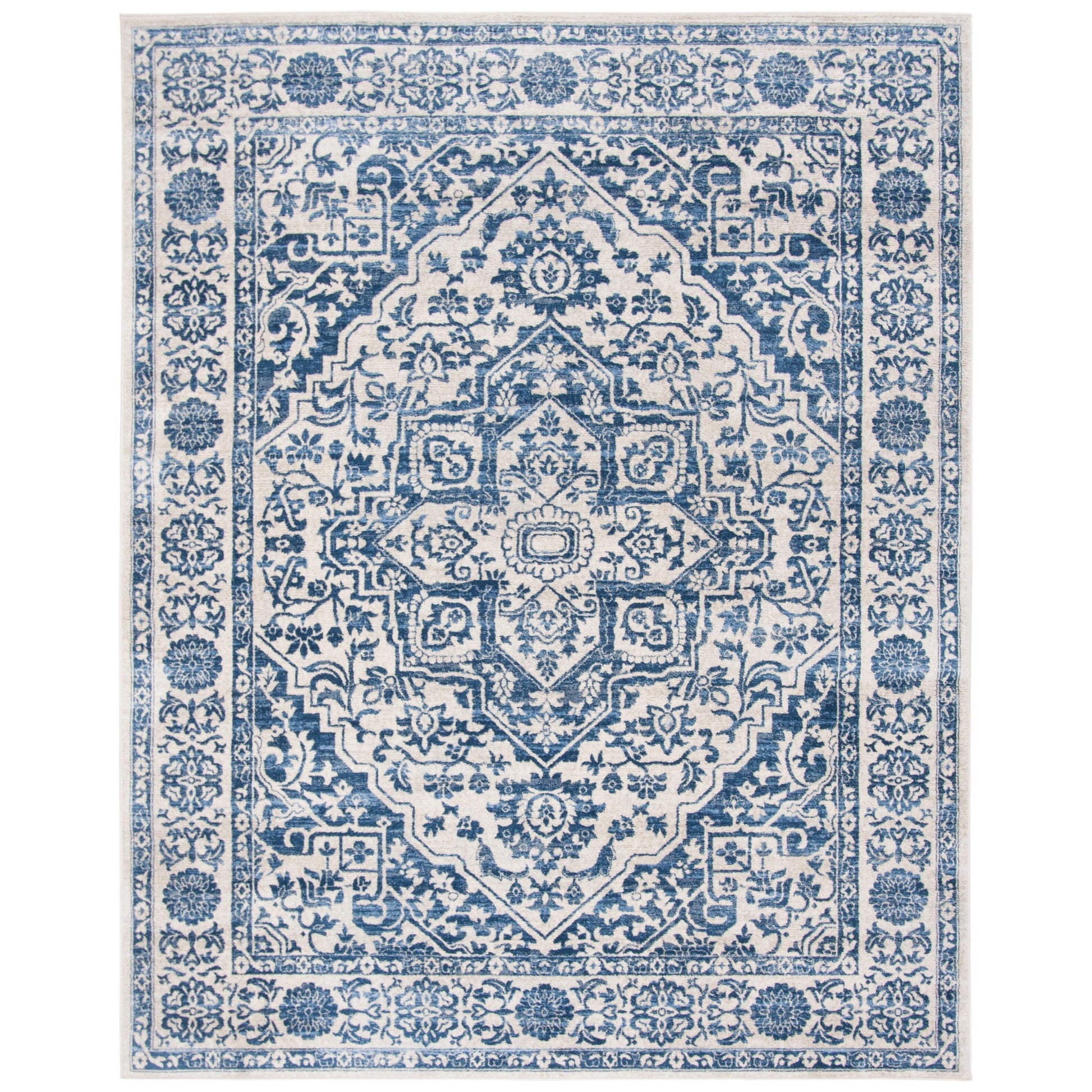 Introducing our exquisite Traditional Ivory/Navy Area Rug, a masterpiece of craftsmanship and style that will transform any room in your home. Elegantly power-loomed in Turkey, this large 10' x 13' rectangle rug boasts a luxurious 3/8' pile height, offering both comfort and durability to your living space.Featuring a harmonious blend of 60% Polypropylene and 40% Jute, this rug combines the best of both worlds, with the resilience and easy-to-clean qualities of synthetic fibers, alongside the natural strength and eco-friendliness of jute. The traditional style of this rug is evident in its intricate patterns, weaving together classic motifs and a timeless color palette of ivory and navy, creating a sense of grandeur and heritage.The delicate medallion pattern, surrounded by ornate floral detailing and an elegant border, brings a sense of sophistication and depth to the design. Every inch of this rug exudes the charm and elegance of classical designs while updated to complement modern homes. The artful fading and distressing techniques give it an heirloom appearance, suitable for both contemporary and traditional decors.Proudly made in Turkey, this rug is not only a testament to superior craftsmanship but also meets the strict standards set by OEKO-TEX certification, ensuring that it's free from harmful substances. The power-loomed construction guarantees precision and consistency in every thread.Place this timeless piece in your living room, dining area, or bedroom