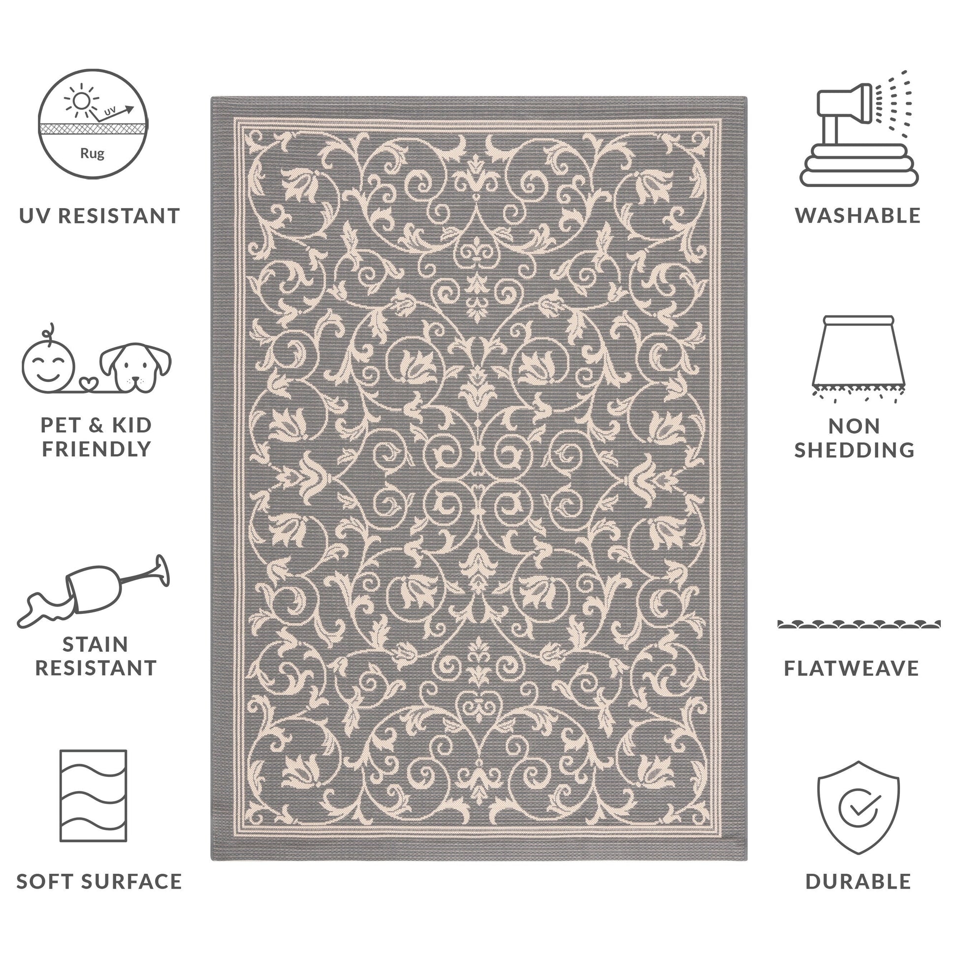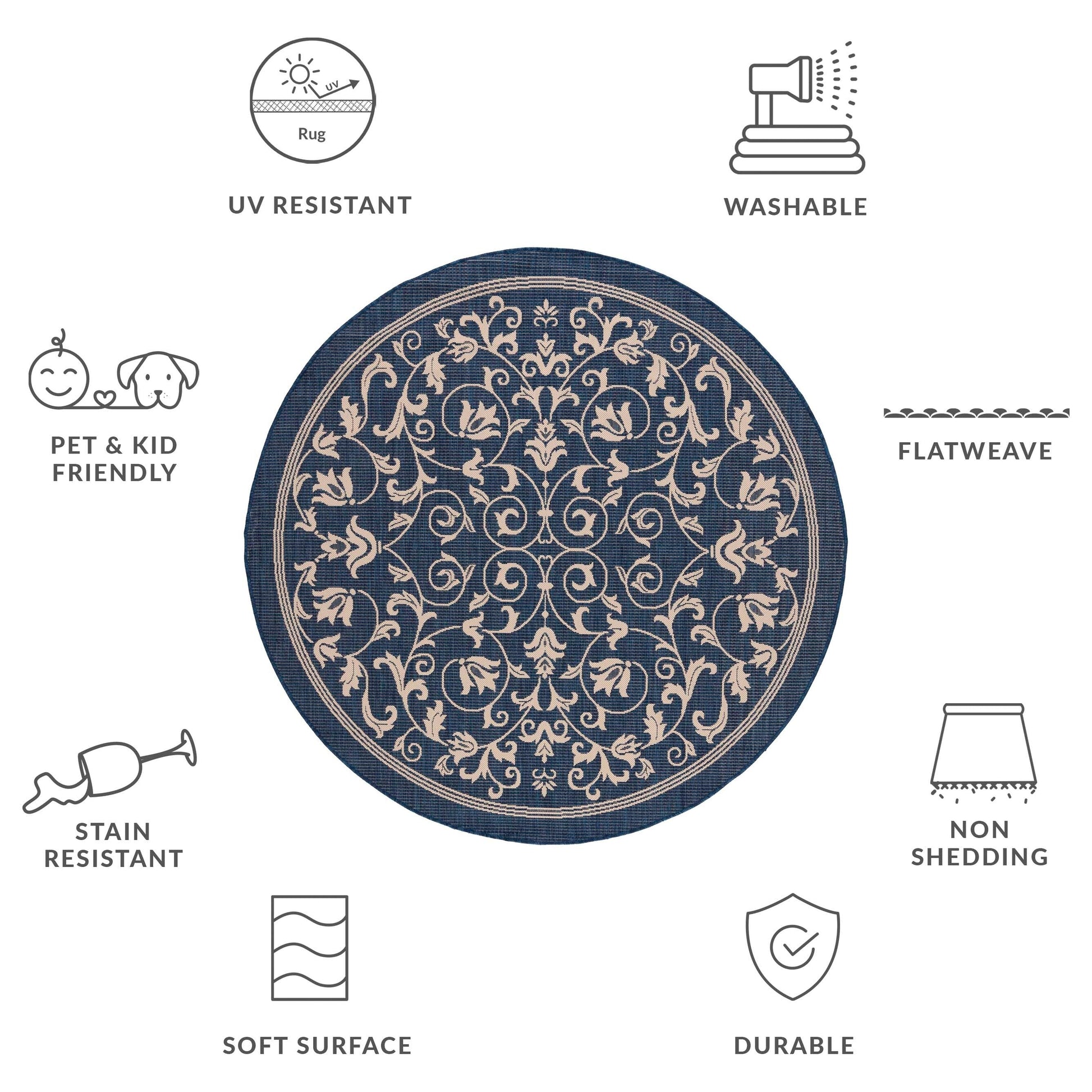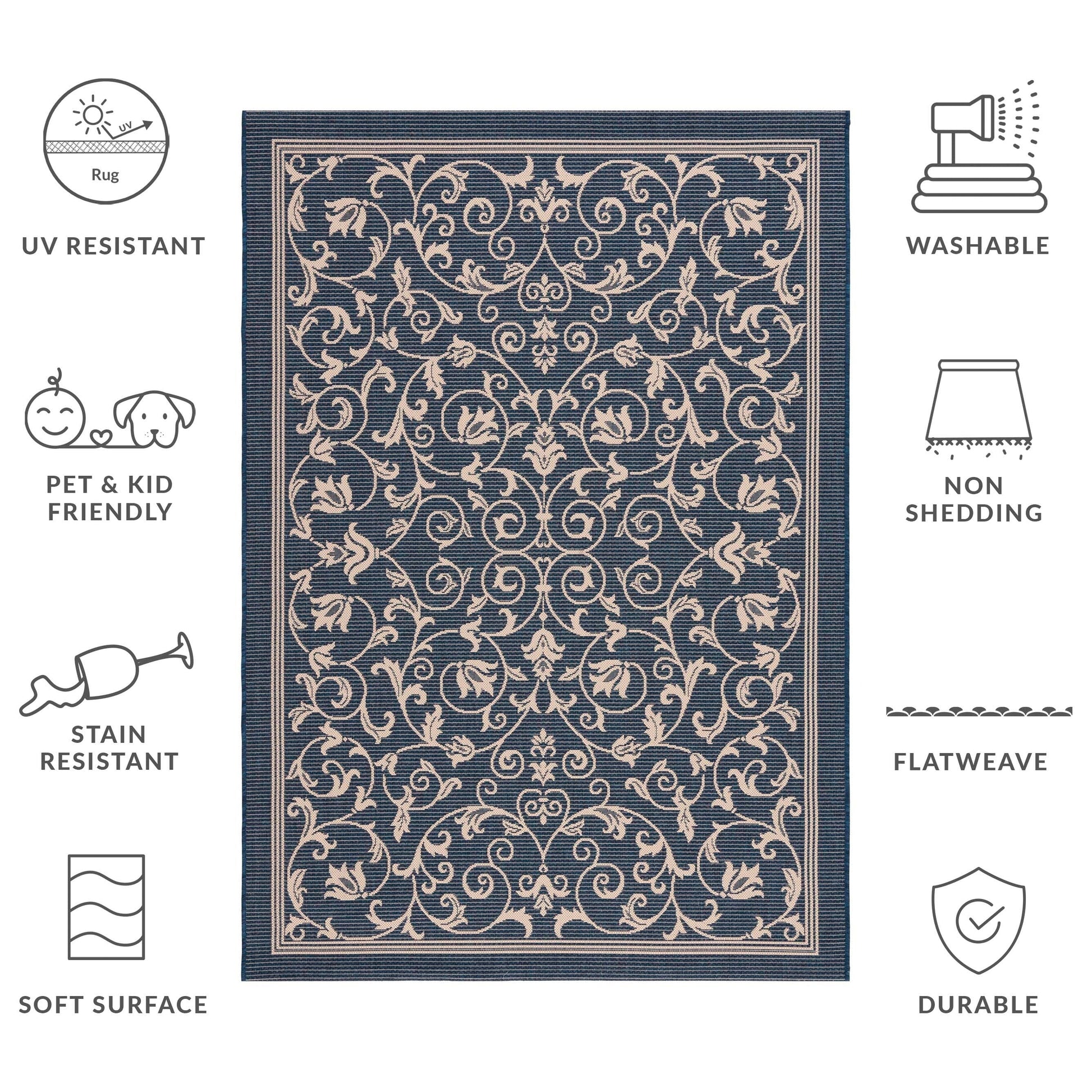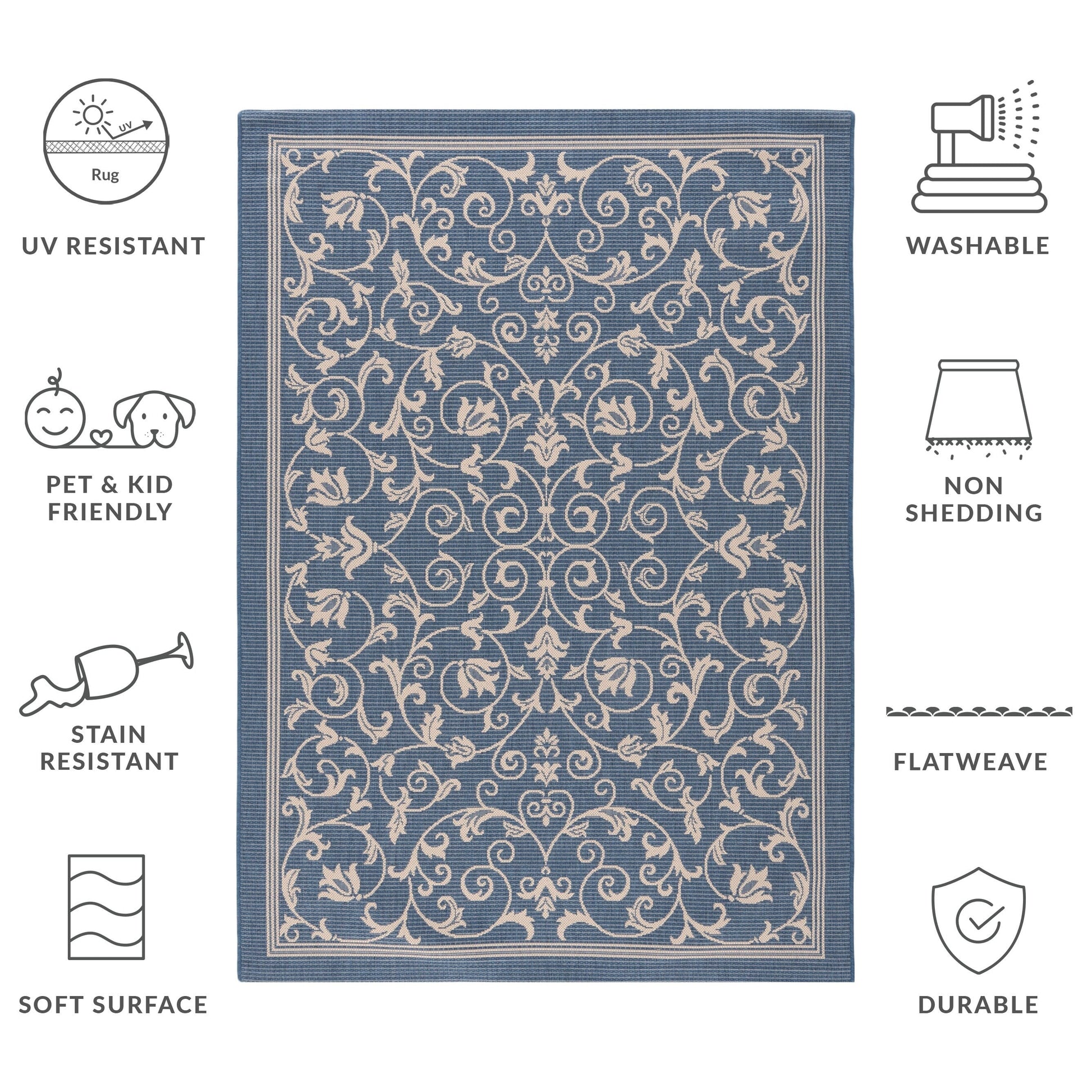 Stain, Weather, and UV-Resistant: Machine-woven from enhanced synthetic fibers for virtually no shedding and stain resistance