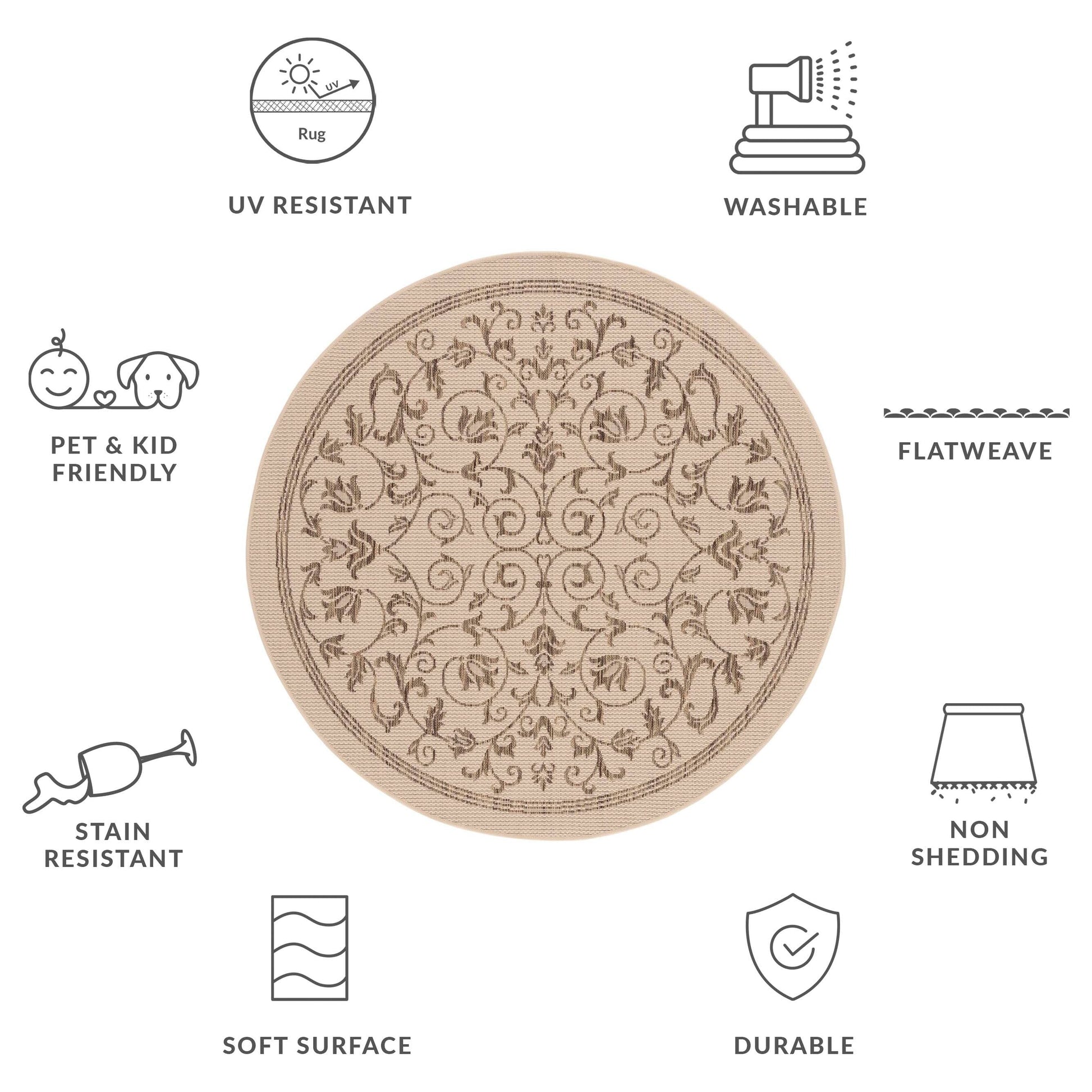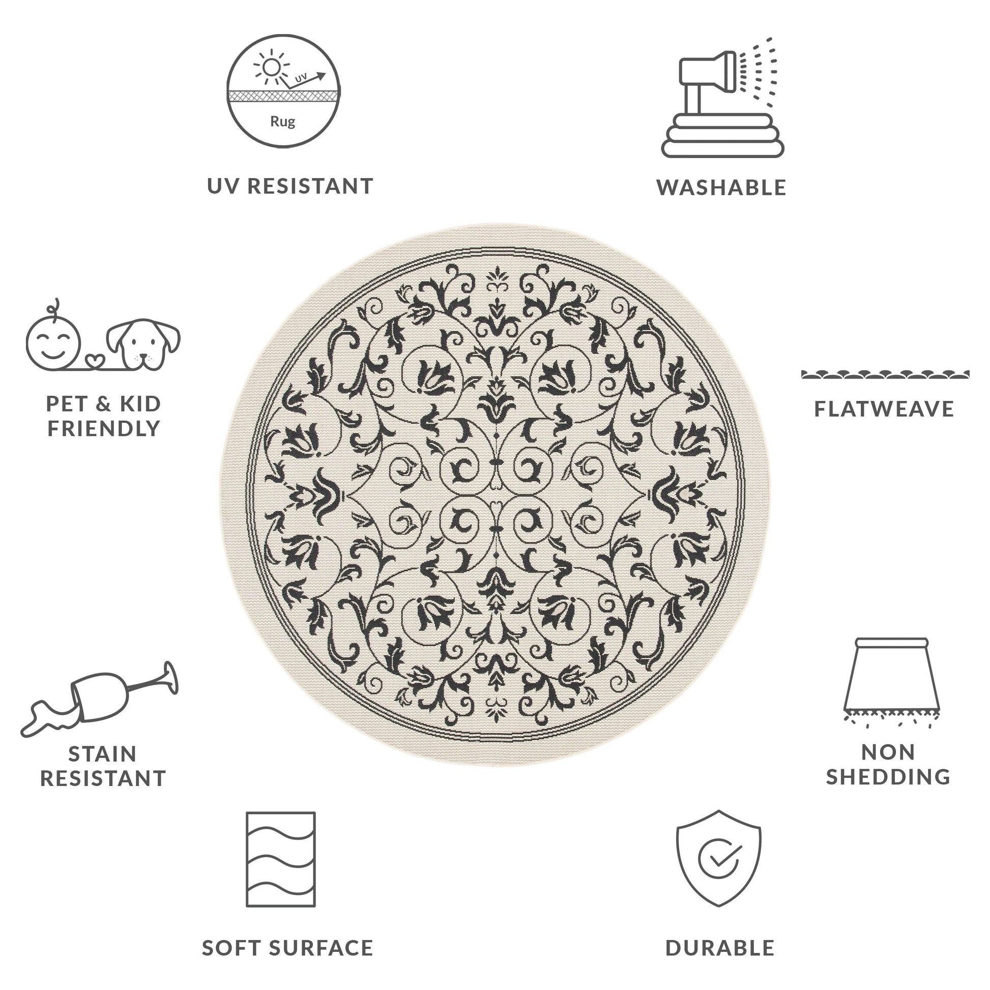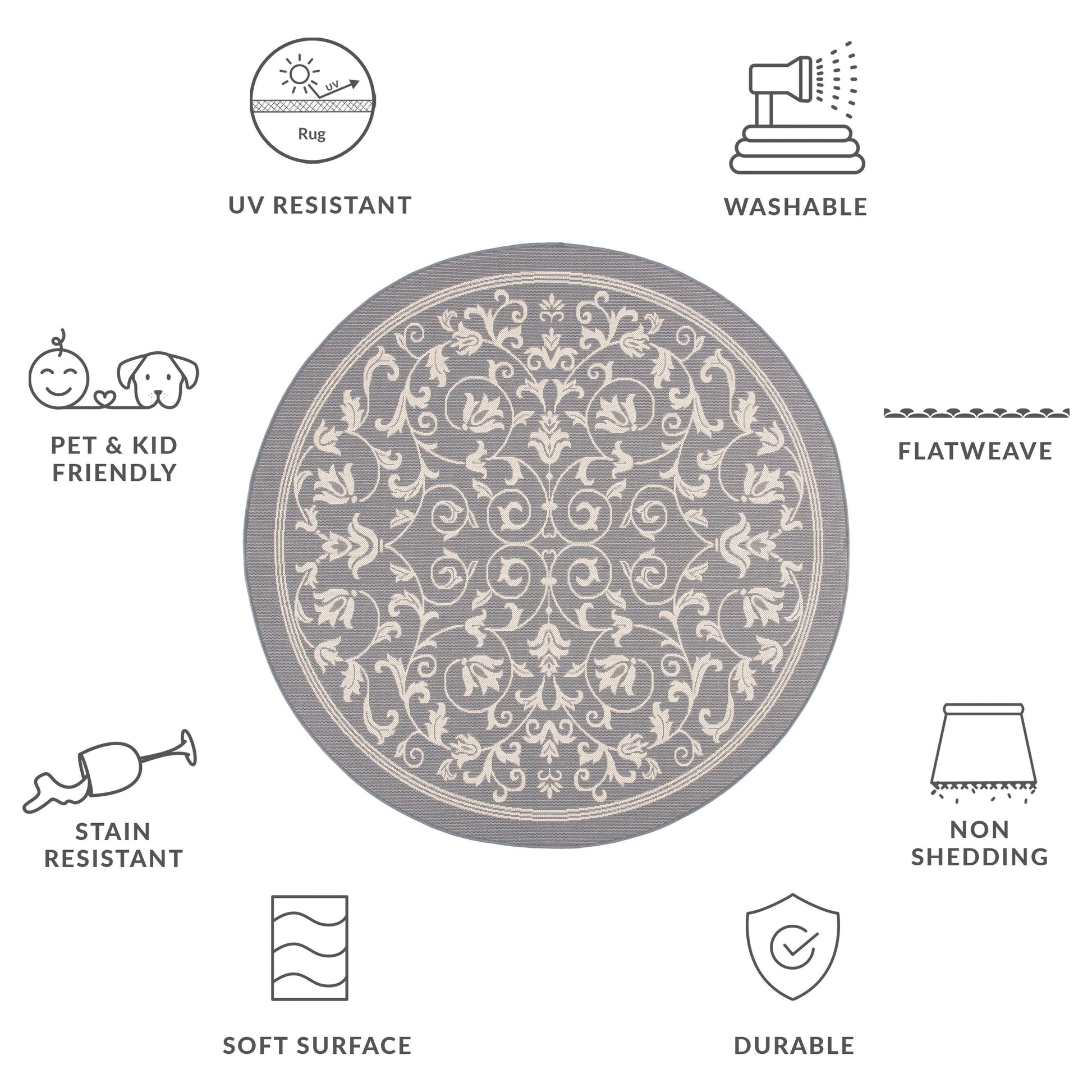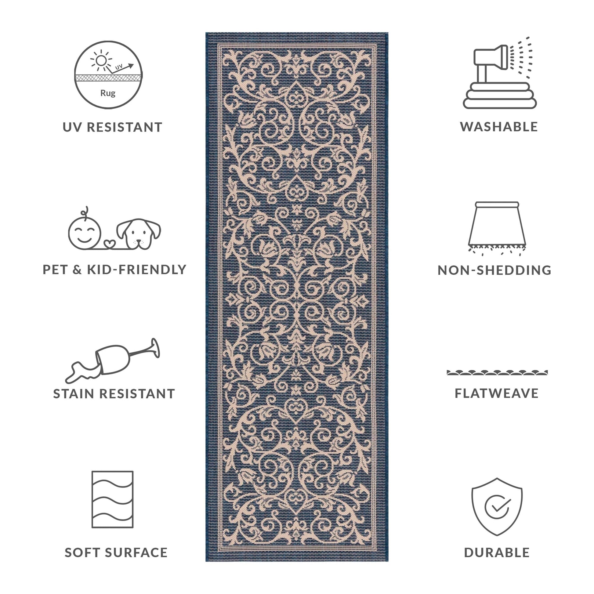 Stain, Weather, and UV-Resistant: Machine-woven from enhanced synthetic fibers for virtually no shedding and stain resistance