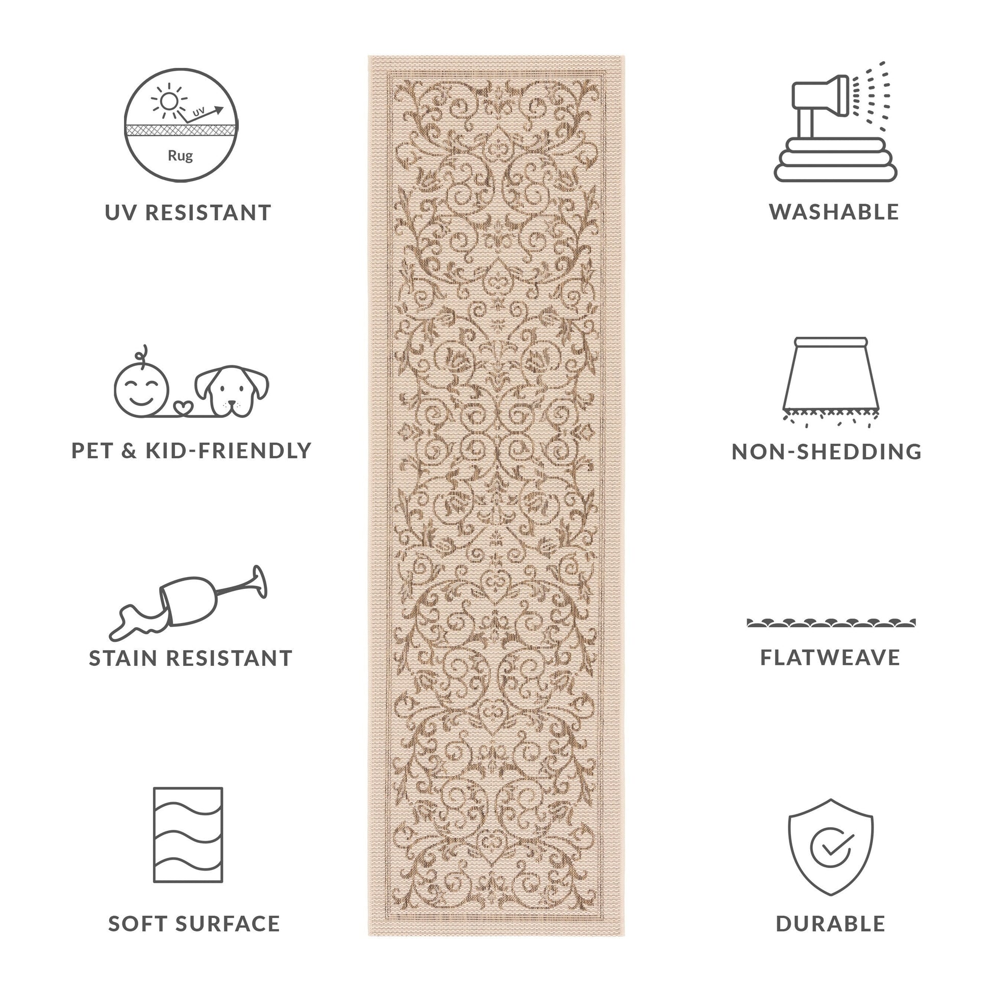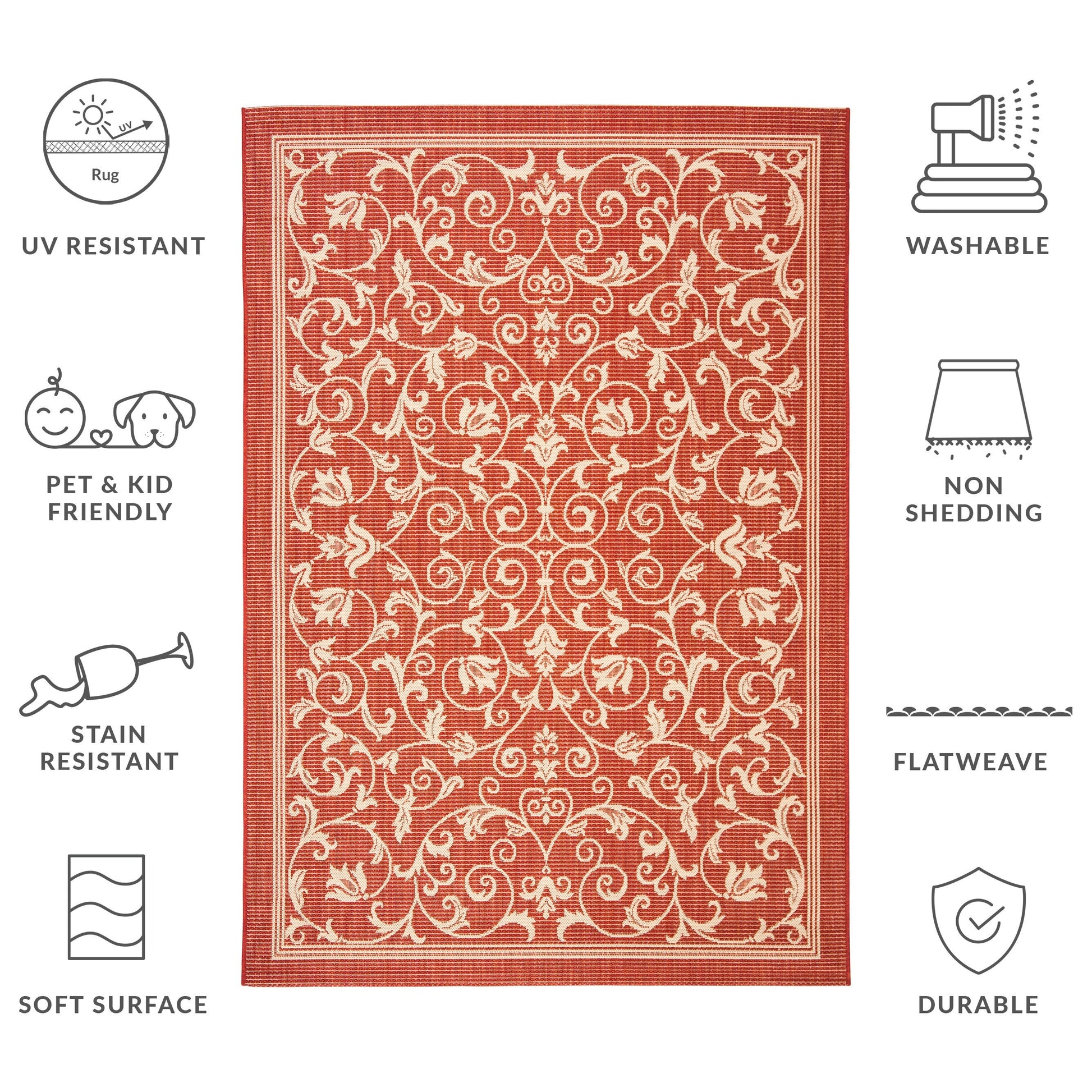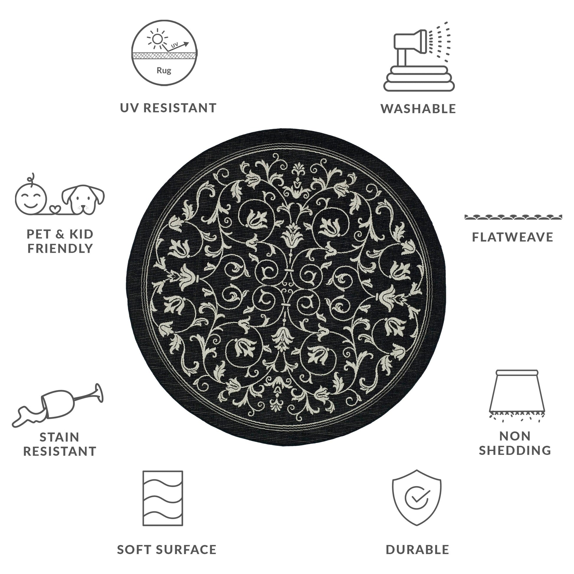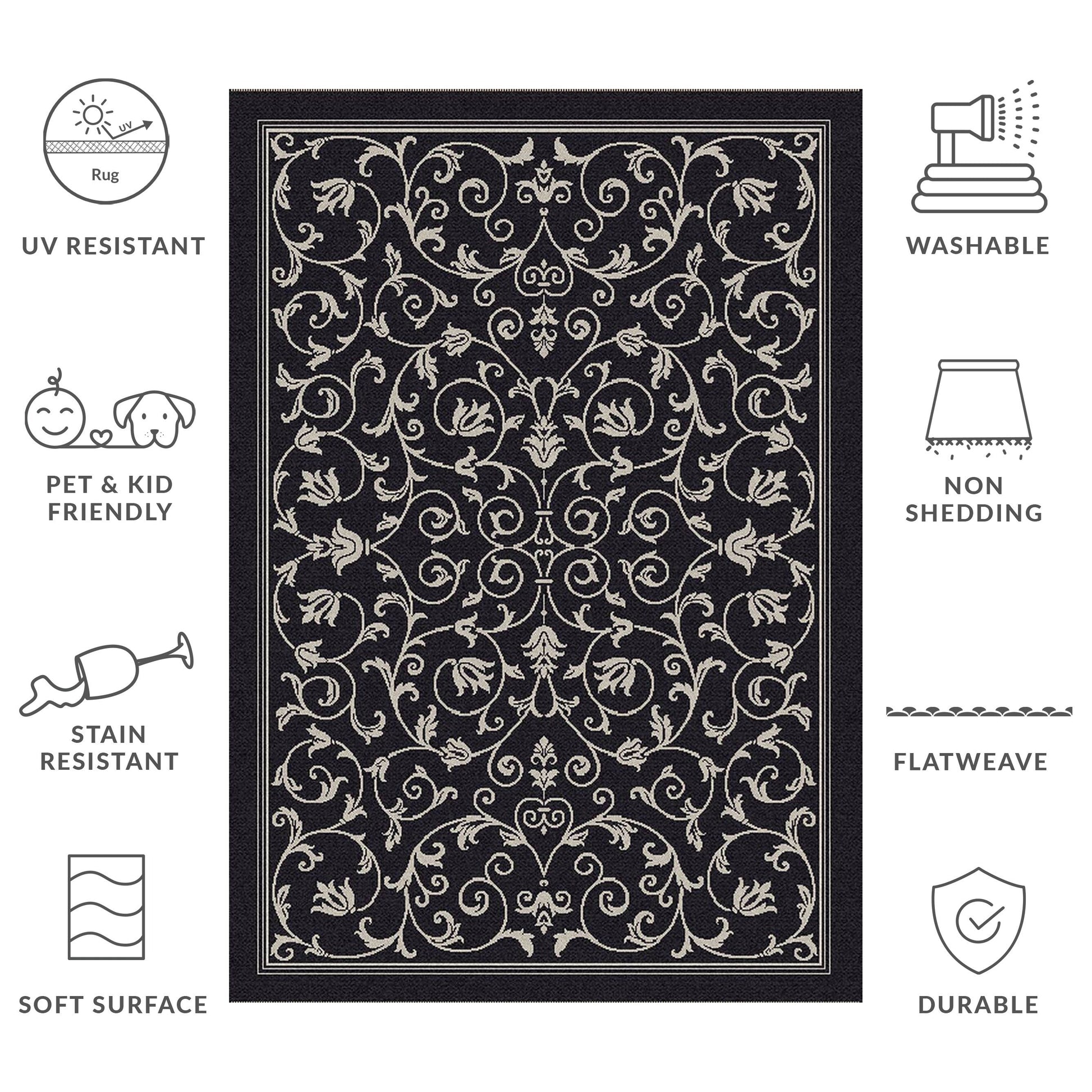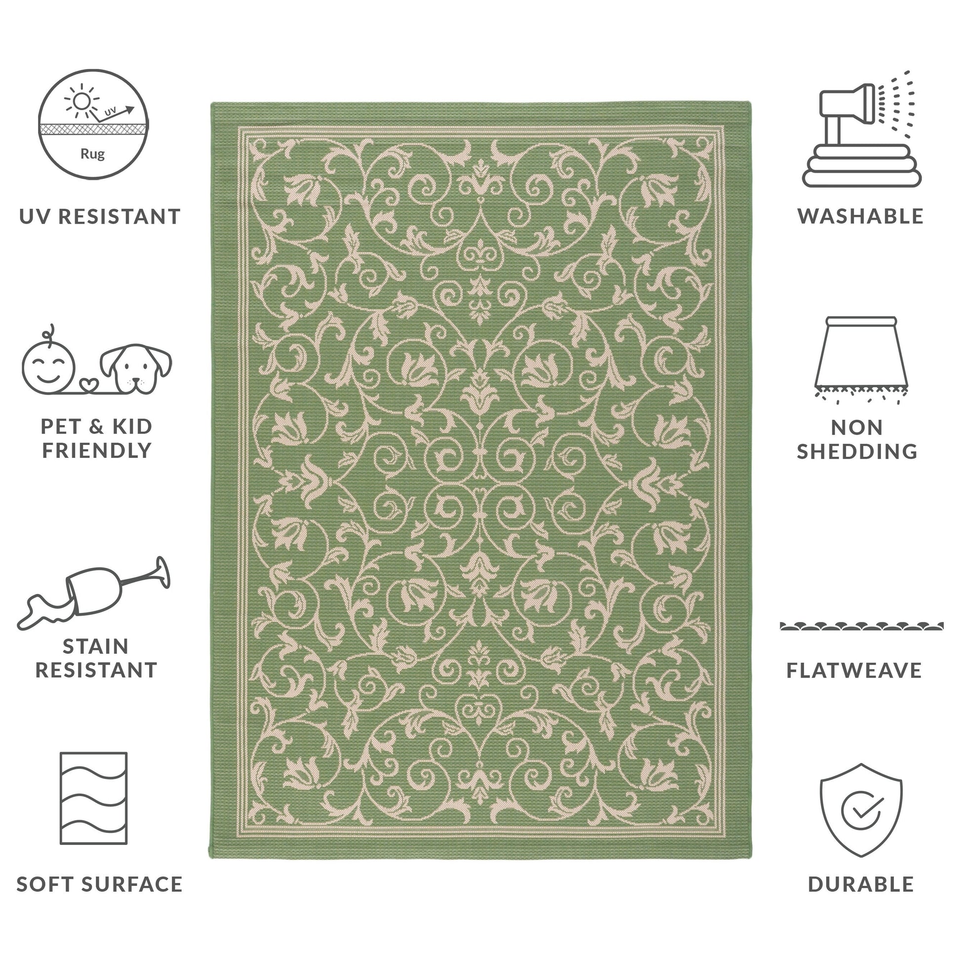 Stain, Weather, and UV-Resistant: Machine-woven from enhanced synthetic fibers for virtually no shedding and stain resistance