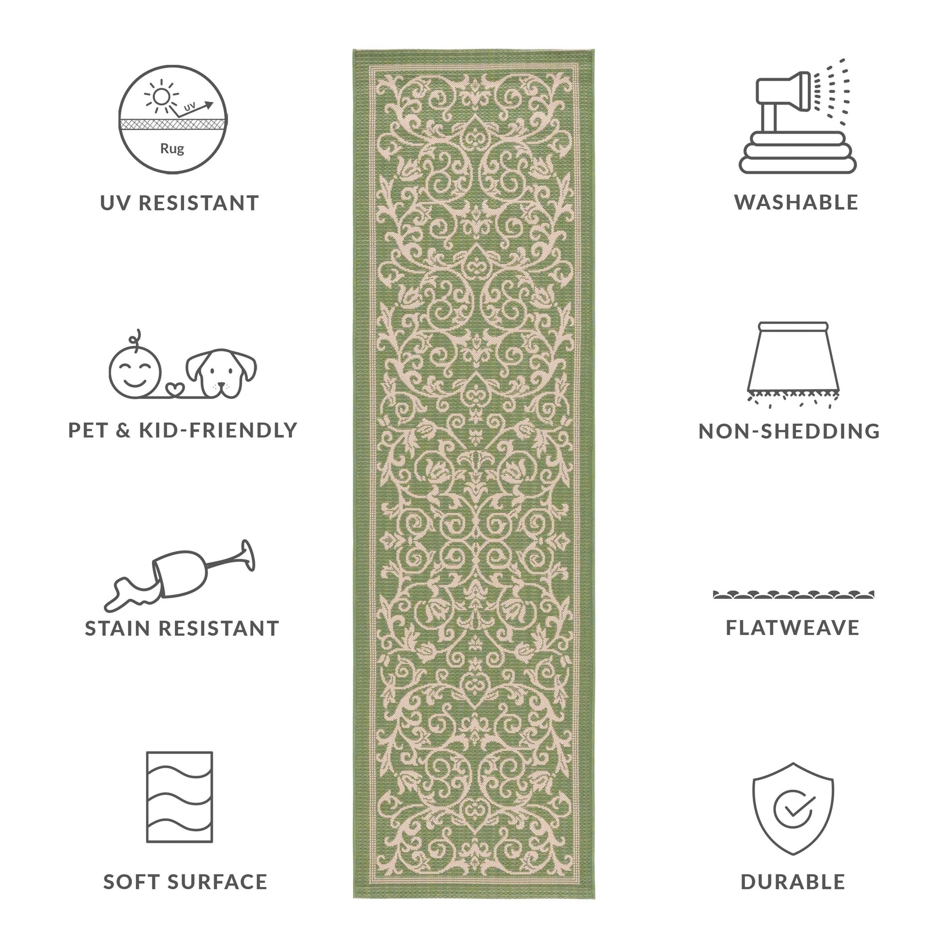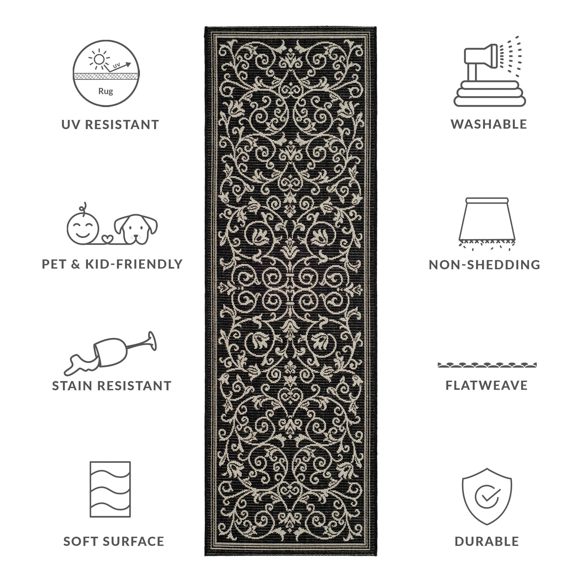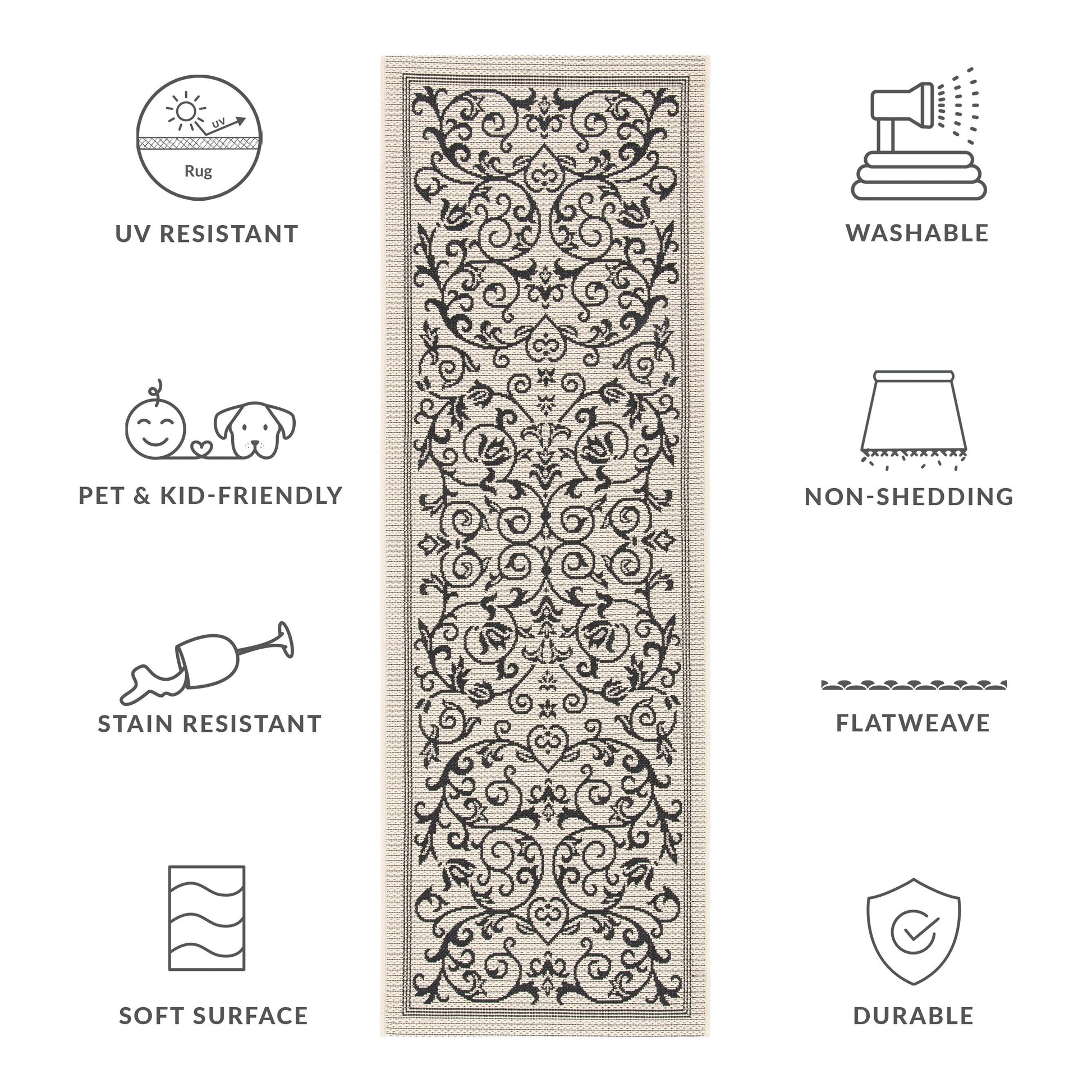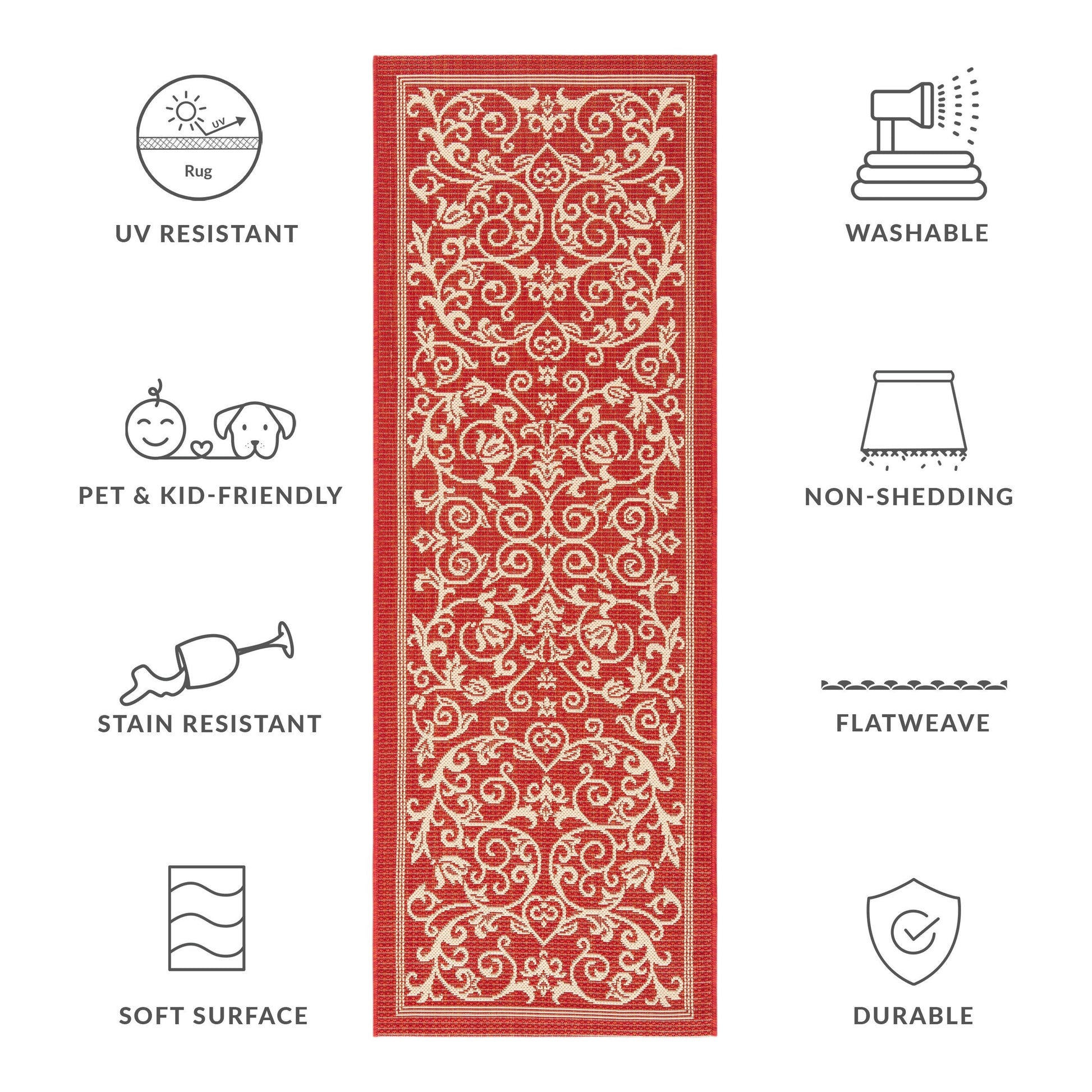 Stain, Weather, and UV-Resistant: Machine-woven from enhanced synthetic fibers for virtually no shedding and stain resistance