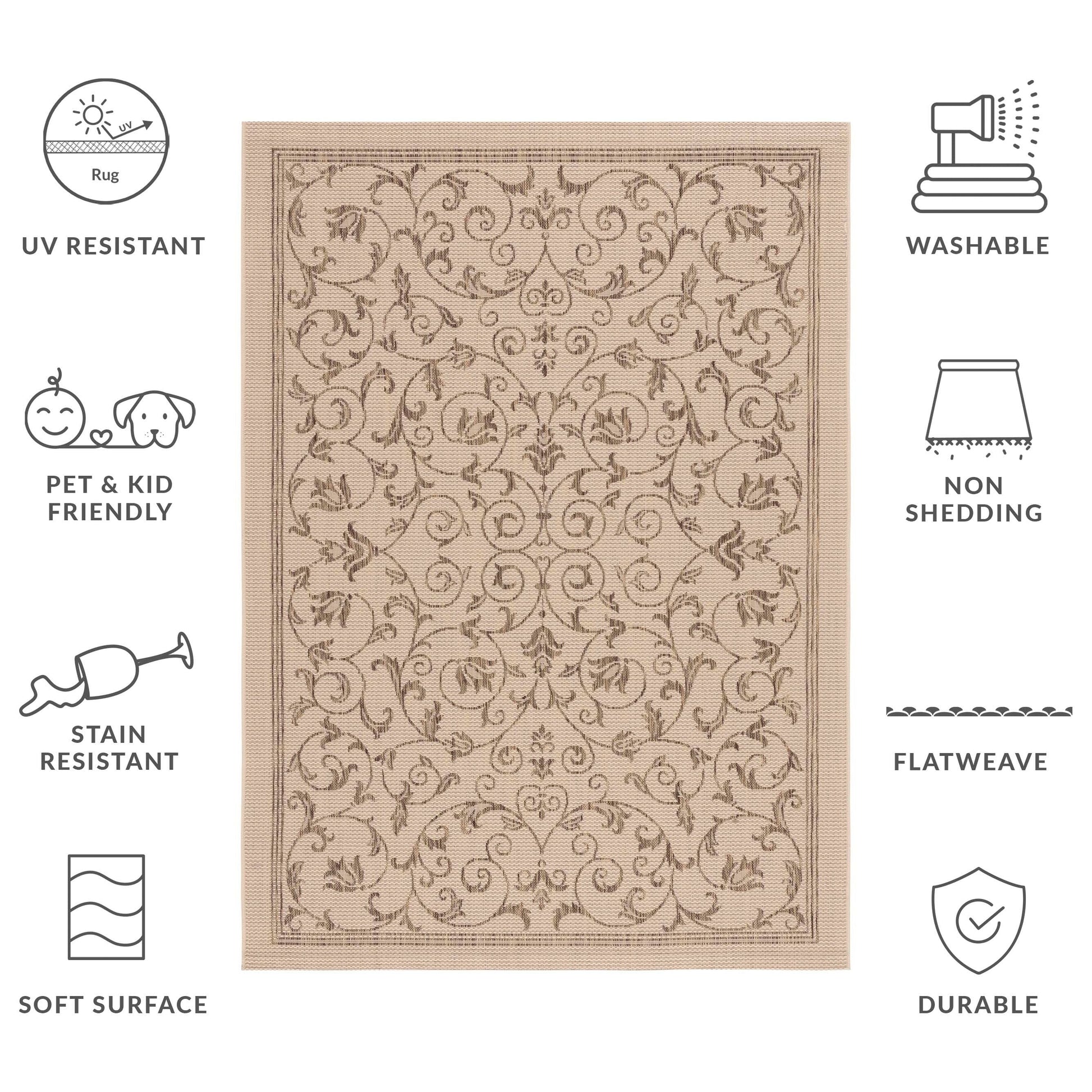 Easy Maintenance & Durable: Stress-free cleaning includes regular vacuuming, and rinsing with a garden hose with soapy water and air drying; When not in use for outdoors, we recommend storing away