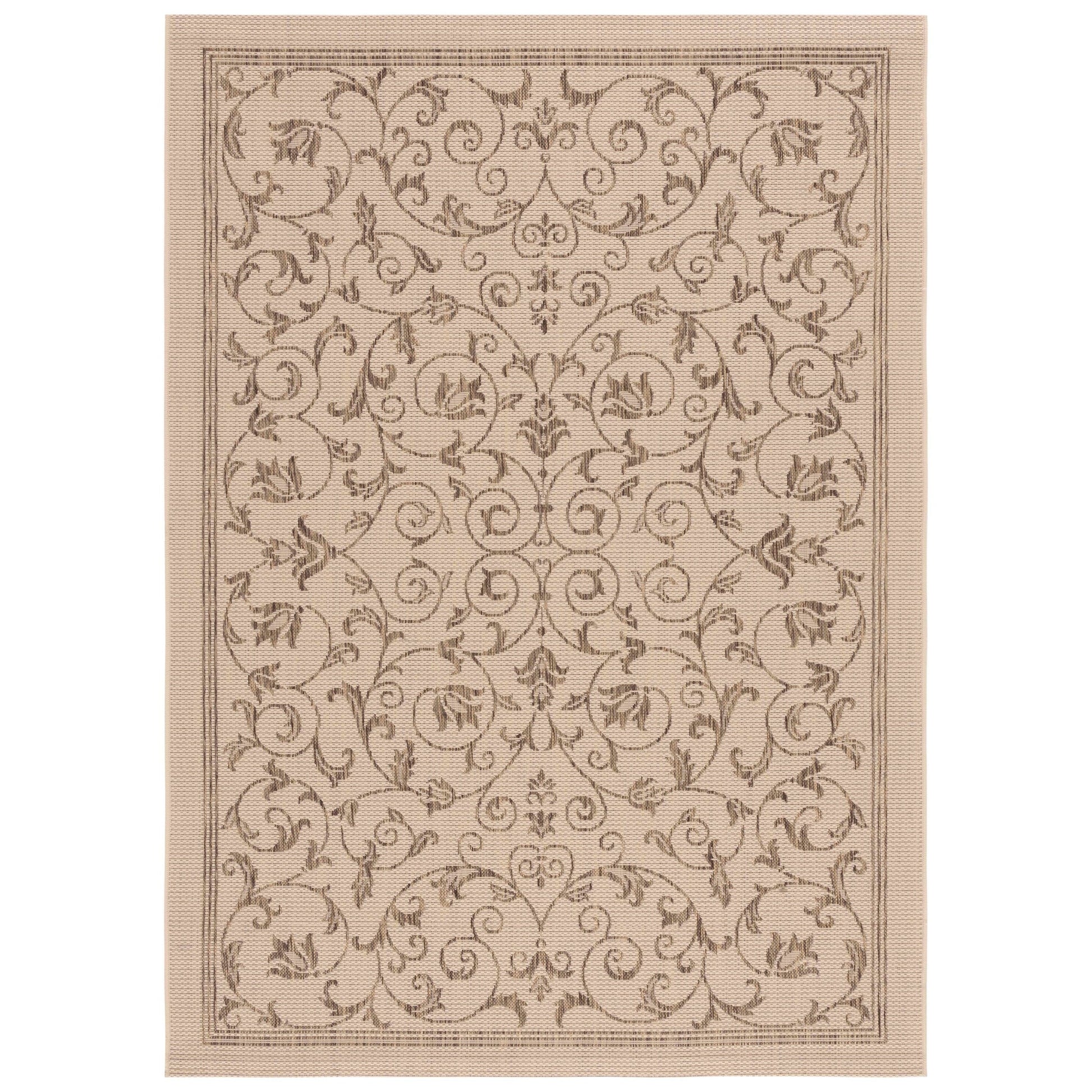 Ideal for a range of outdoor and indoor settings like gardens, patios, decks, sunrooms, or pool areas, this chic rug from the Courtyard Collection is a functional enhancement to any living space. Designed to withstand the demands of pets and children, this low-maintenance rug is equally suitable for bustling areas such as mudrooms or kitchens. Elevating outdoor decor with fresh designs in trendy hues and patterns spanning from timeless to modern, this exquisite rug collection sets a new standard for outdoor styling. Rug sizes may vary slightly.