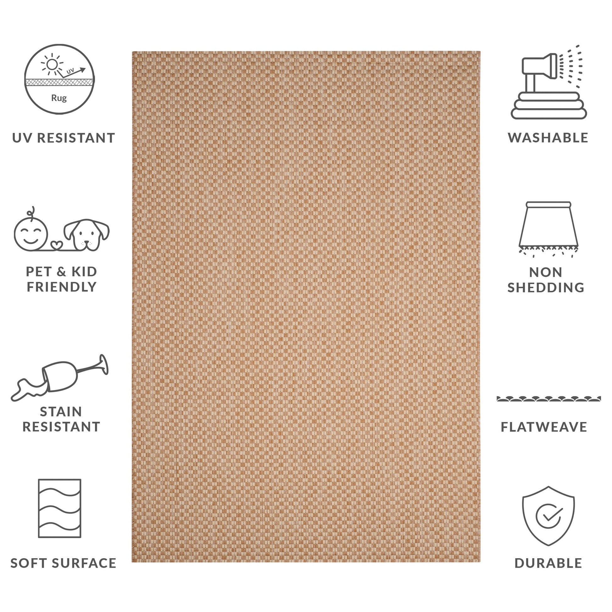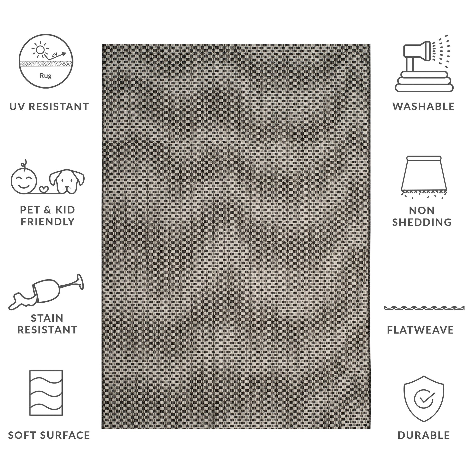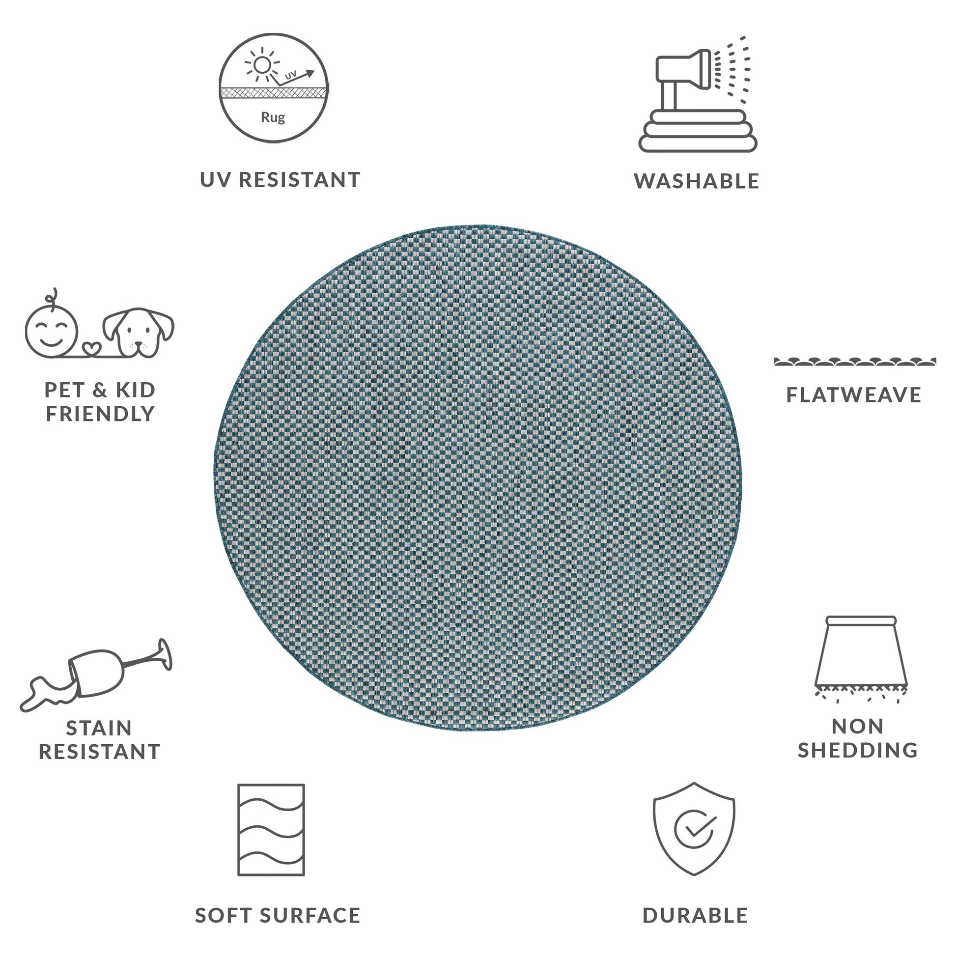Ideal for a range of outdoor and indoor settings like gardens, patios, decks, sunrooms, or pool areas, this chic rug from the Courtyard Collection is a functional enhancement to any living space. Designed to withstand the demands of pets and children, this low-maintenance rug is equally suitable for bustling areas such as mudrooms or kitchens. Elevating outdoor decor with fresh designs in trendy hues and patterns spanning from timeless to modern, this exquisite rug collection sets a new standard for outdoor styling. Rug sizes may vary slightly.