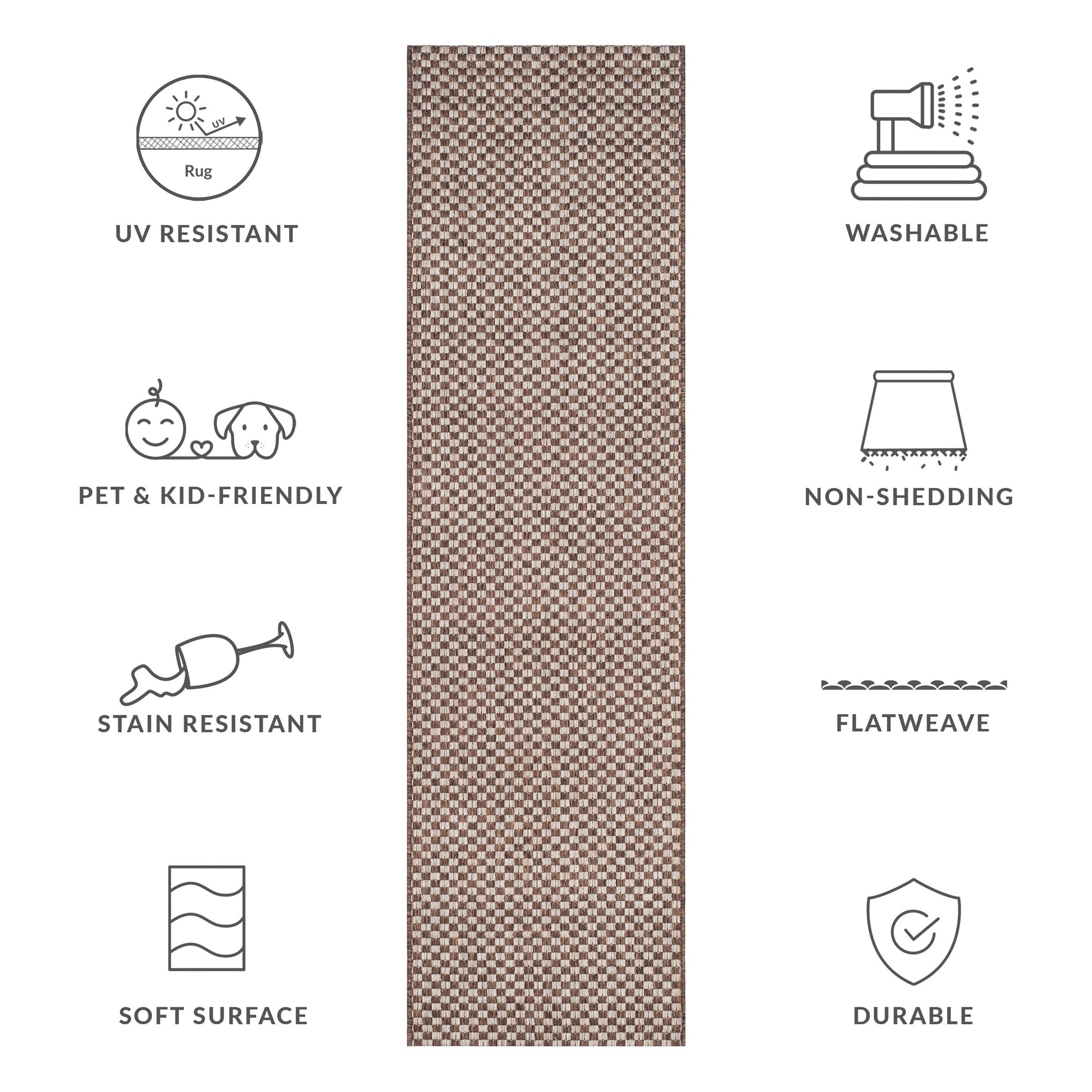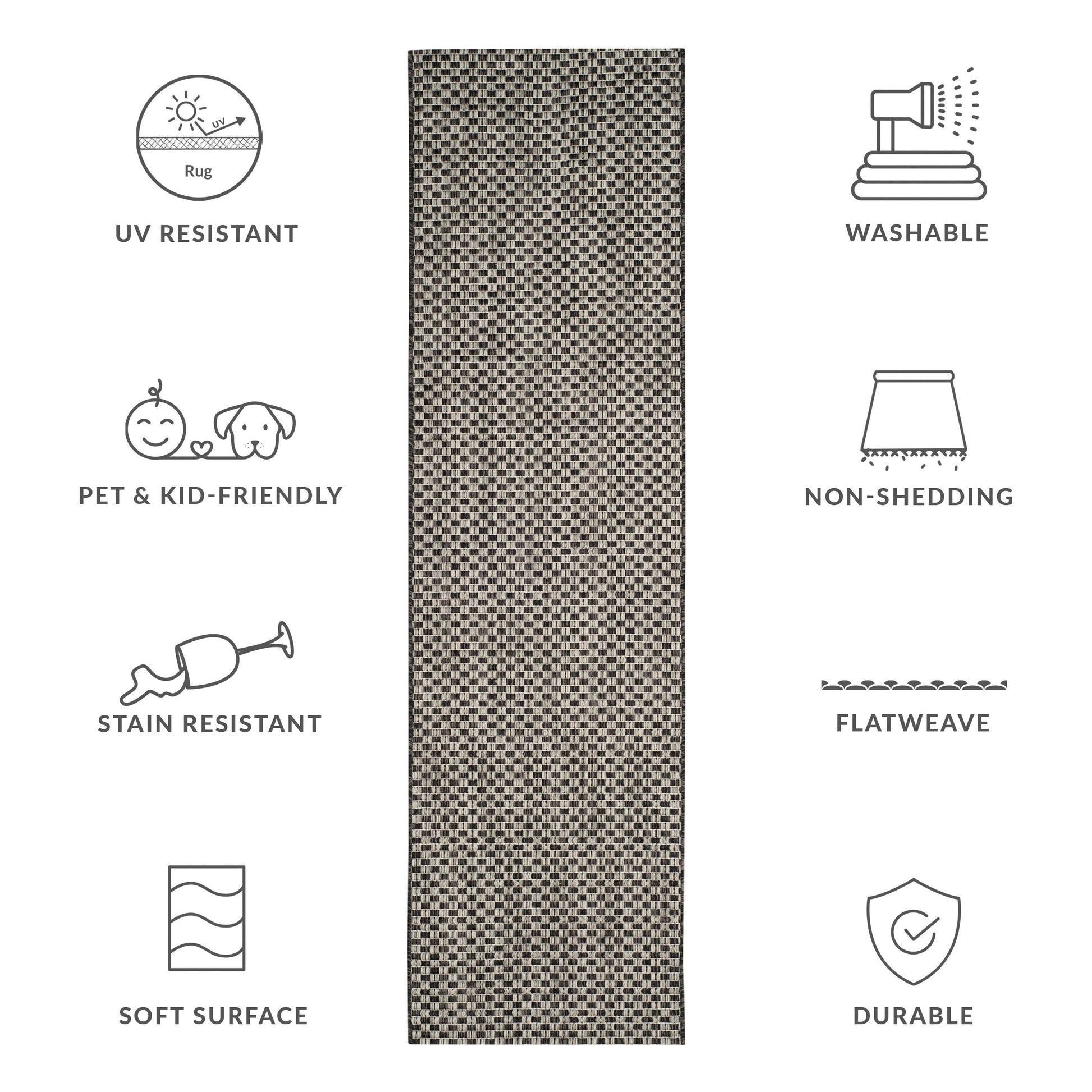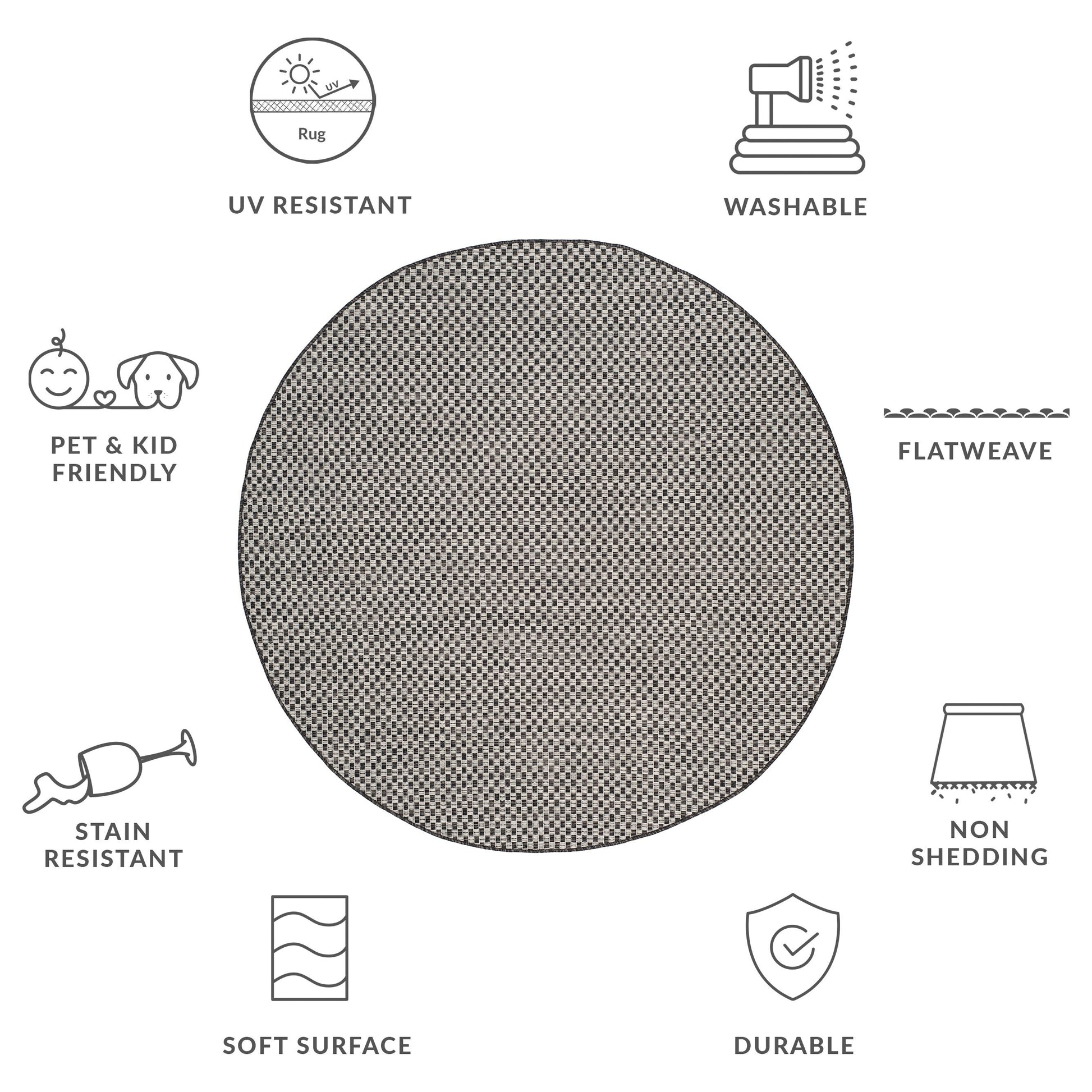 Ideal for a range of outdoor and indoor settings like gardens, patios, decks, sunrooms, or pool areas, this chic rug from the Courtyard Collection is a functional enhancement to any living space. Designed to withstand the demands of pets and children, this low-maintenance rug is equally suitable for bustling areas such as mudrooms or kitchens. Elevating outdoor decor with fresh designs in trendy hues and patterns spanning from timeless to modern, this exquisite rug collection sets a new standard for outdoor styling. Rug sizes may vary slightly.