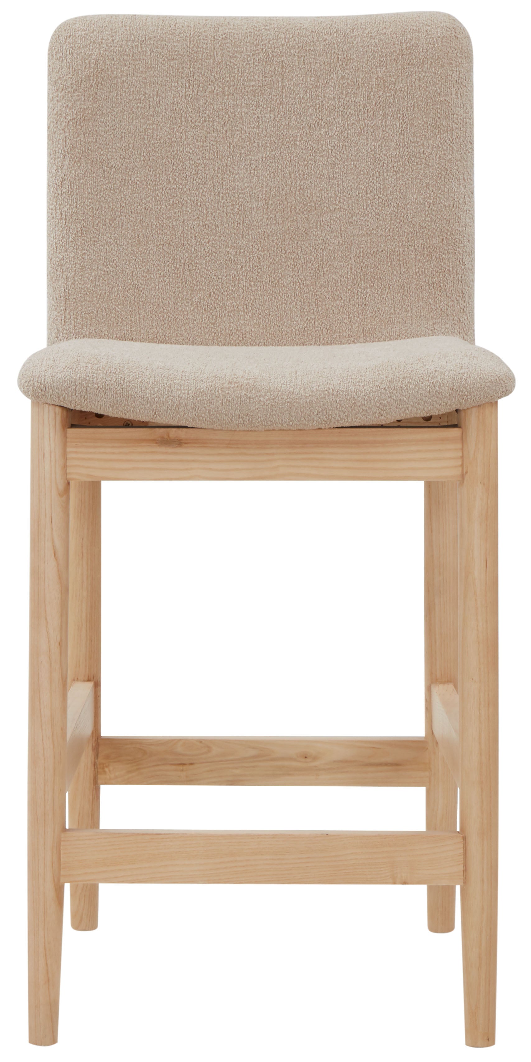 The cozy seat is gracefully balanced by a sturdy Ashwood frame in a natural hue. This handcrafted counter stool promises exceptional durability while providing an understated, chic look to your space.