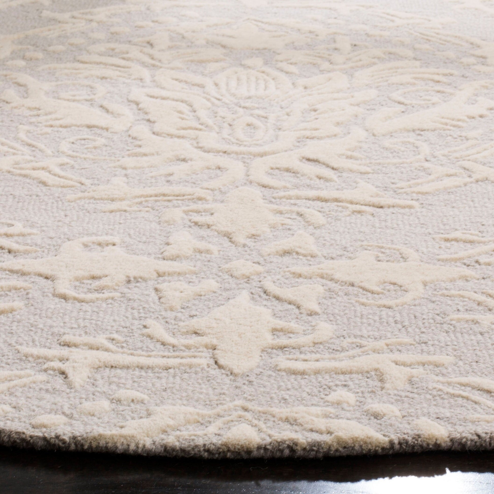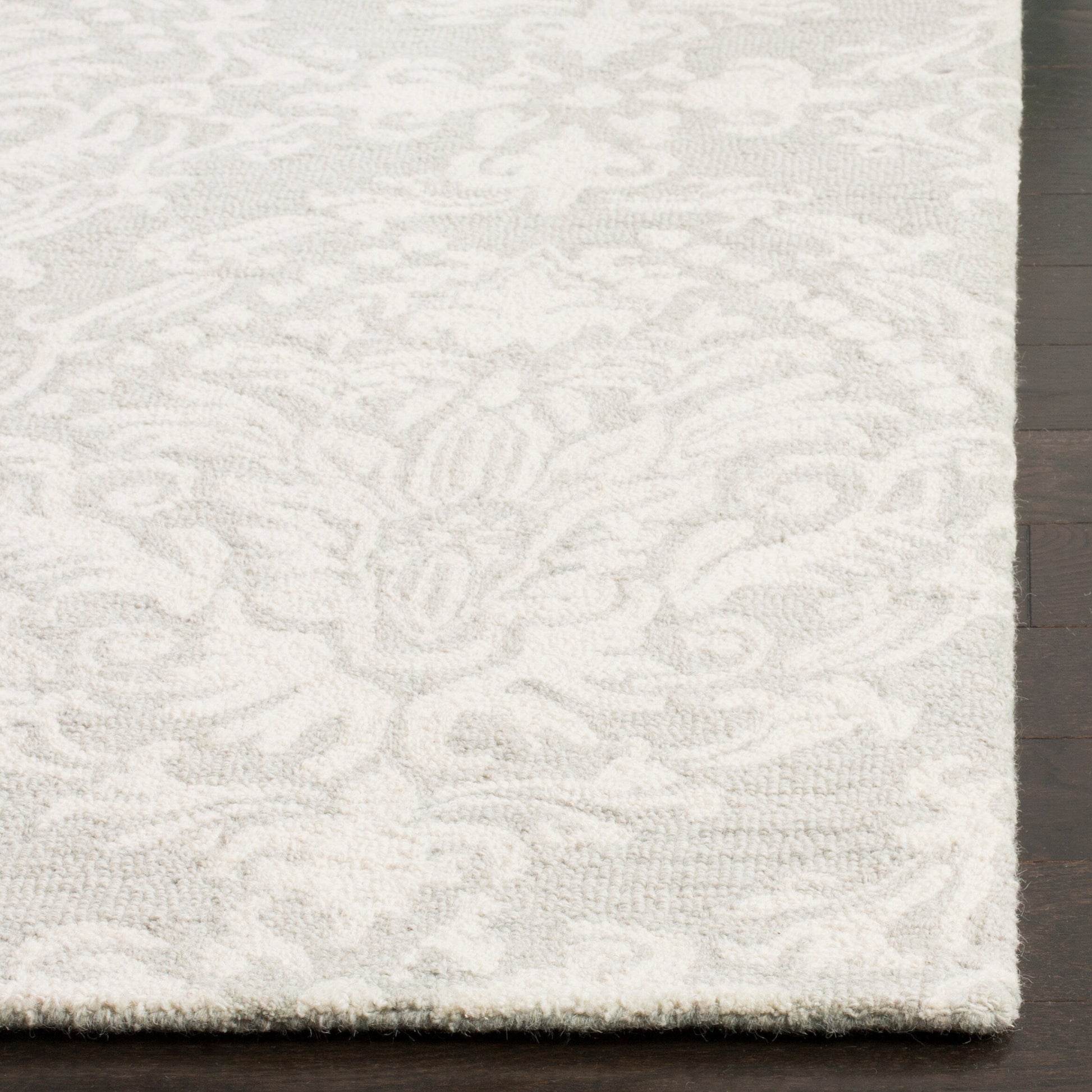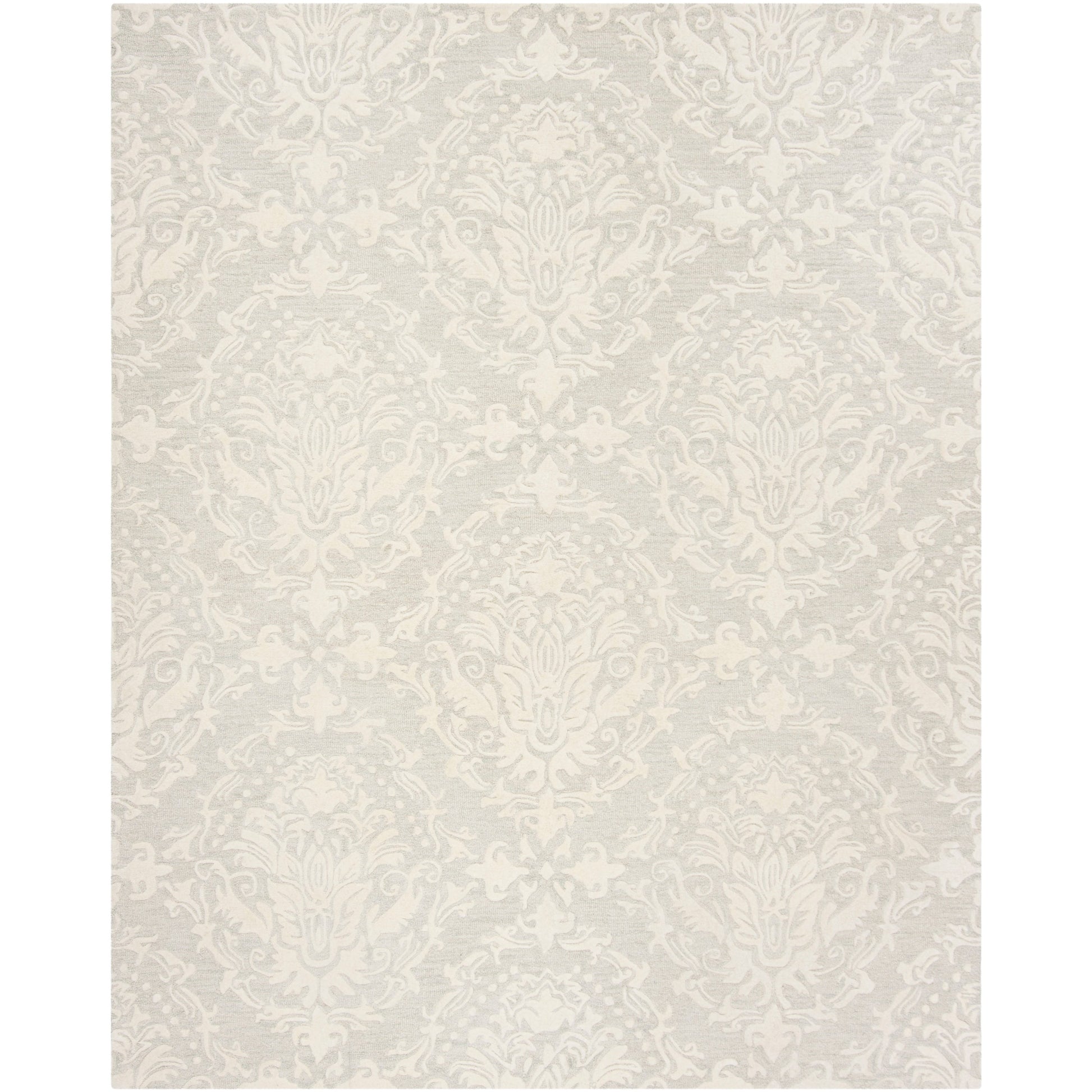Elevate your living space with the timeless elegance of our Light Grey/Ivory hand-tufted wool area rug. Expertly crafted in India, this luxurious 10' X 14' large rectangle rug balances classic style with durability, boasting a plush 1/4' pile height for ultimate comfort underfoot.The intricate pattern seamlessly blends traditional motifs with a modern color palette, featuring a harmonious design that infuses any room with a sense of refined sophistication. The light grey backdrop offers a versatile foundation, while the raised ivory detailing adds depth and dimension to the exquisite floral and vine patterns.Constructed from high-quality wool, this area rug promises a soft, warm, and inviting touch, making it the perfect centerpiece for your living room, dining area, or master suite. The hand-tufted technique ensures that each rug is a unique work of art, providing not only visual appeal but also exceptional durability for high-traffic areas.Bring home a piece of artisanal charm with this beautifully handcrafted rug, where the serenity of the light grey hue meets the purity of ivory to create an ambiance that speaks to both comfort and sophistication.