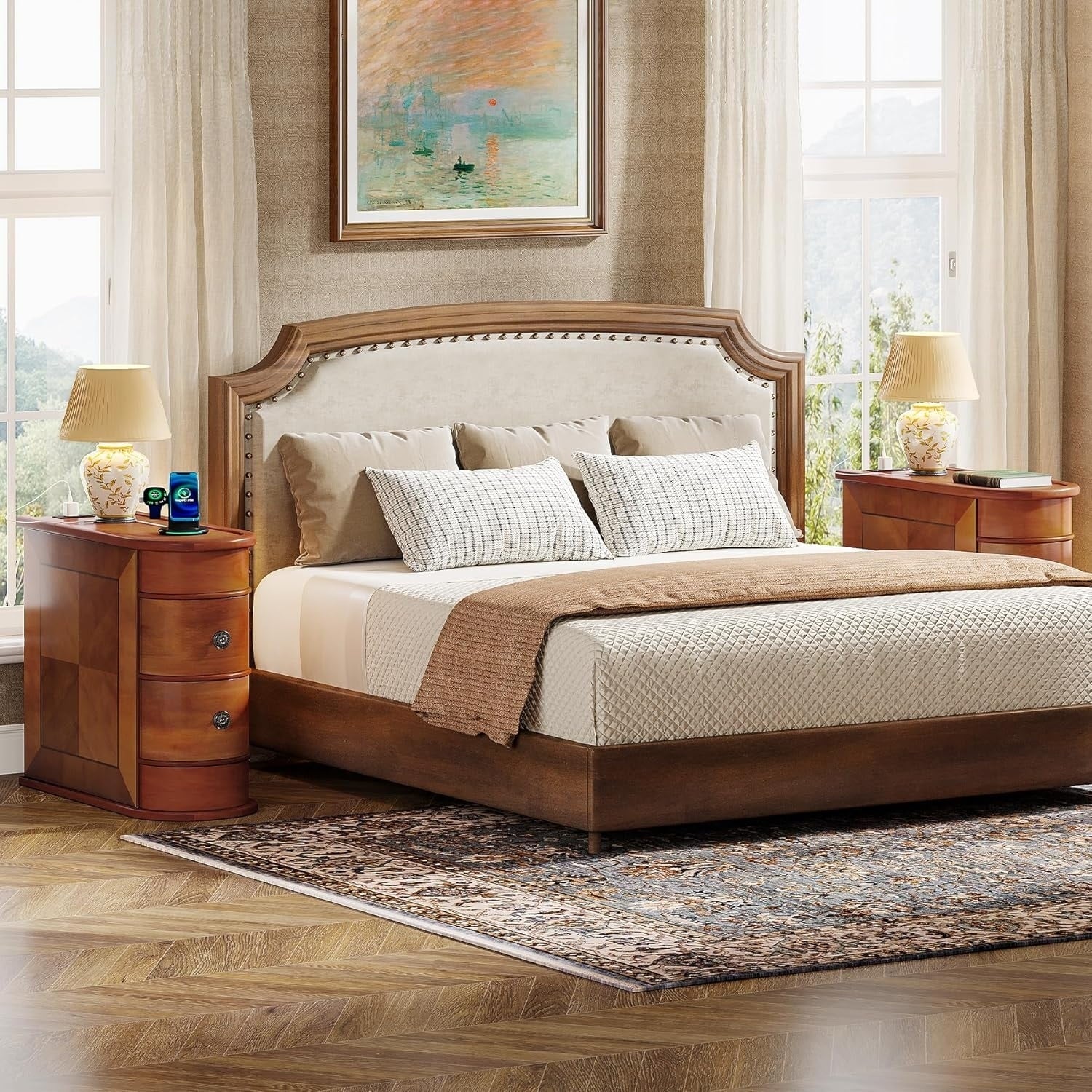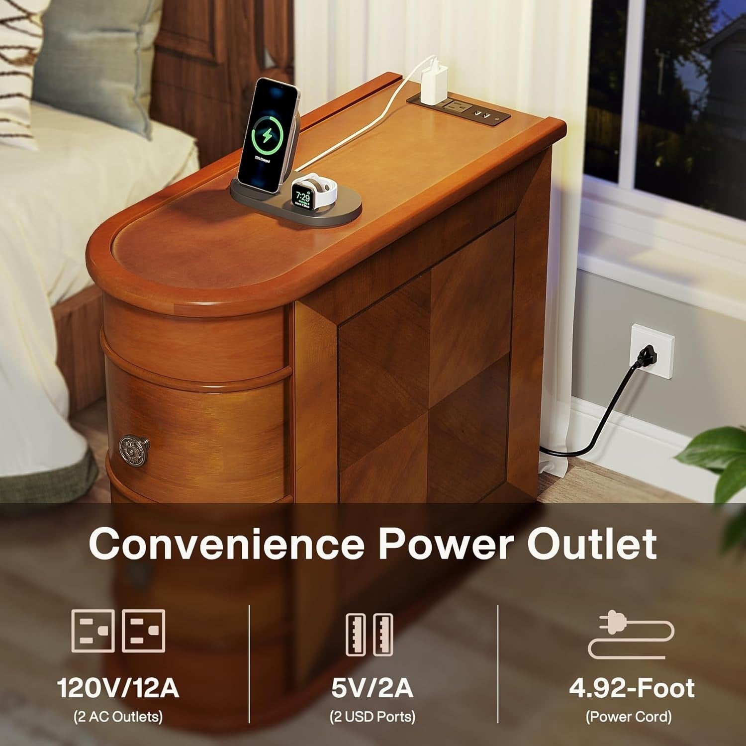 Solid Wood Chairside End Table, Two-Drawer Narrow Side...