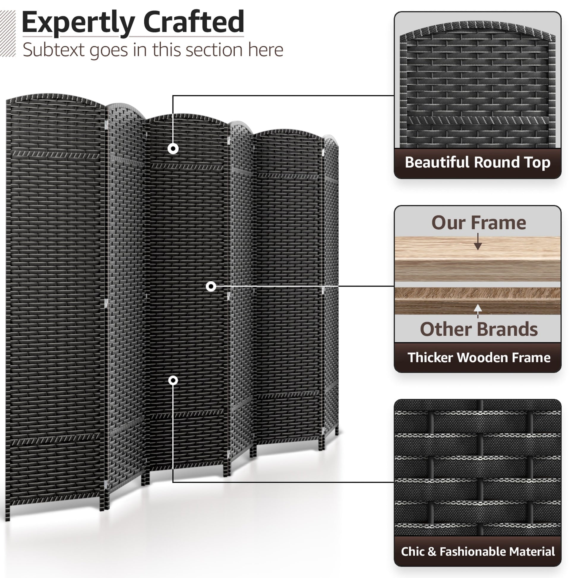 • Extra Wide Double Hinged Panels: Equipped with 6 double hinged panels and measuring 6 ft. tall, this room divider is extra wide for maximum coverage.