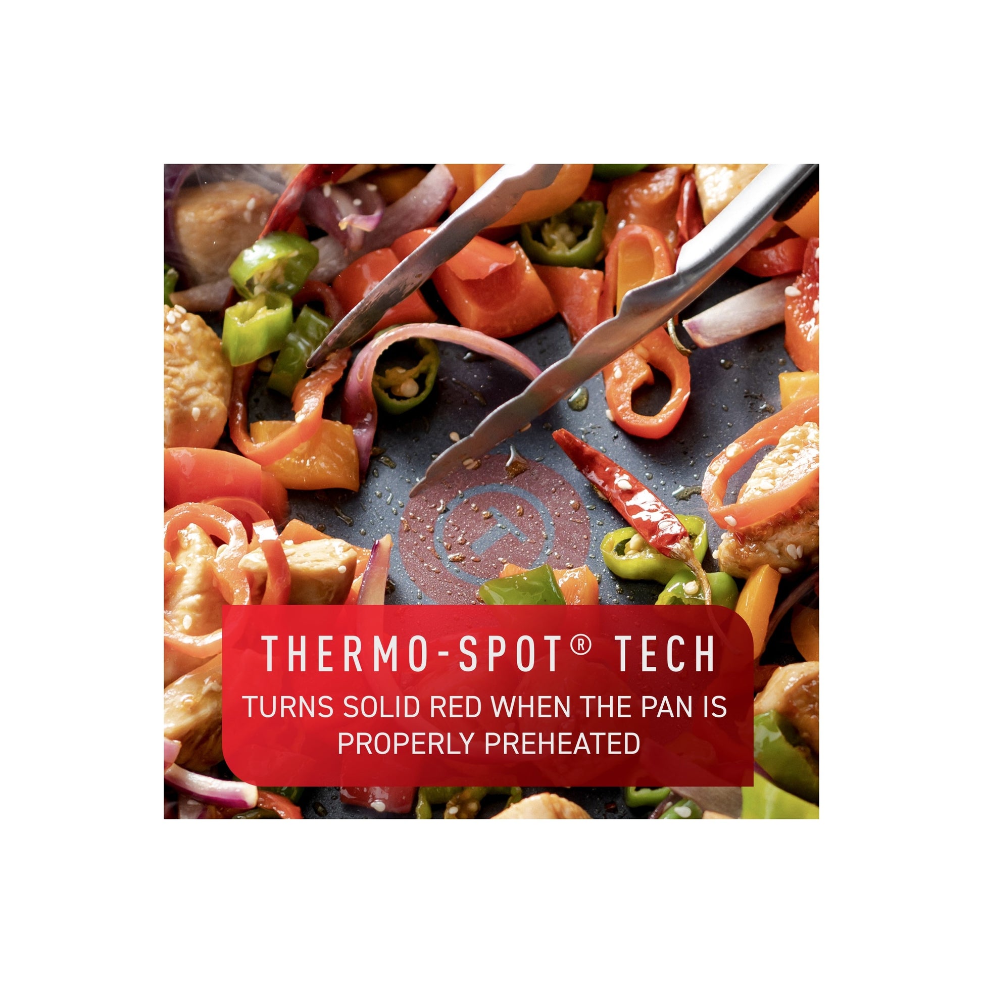 • Thermo-Spot turns solid red to indicate when the pan is properly preheated (only on frypans and sauté pans)