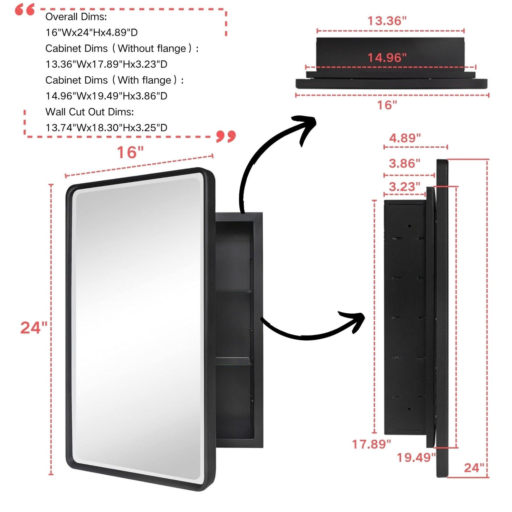 TEHOME Farmhouse Recessed Metal Bathroom Medicine Cabinets with...