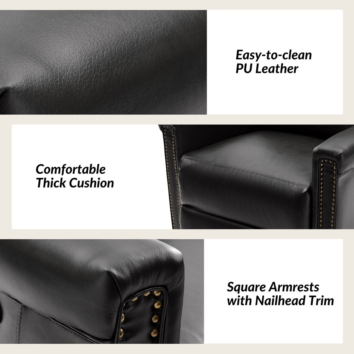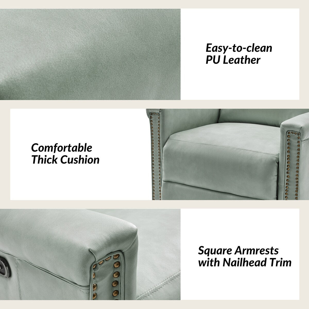 Copper Nailhead Trim: Adorning the edges of the frame of the recliner set, the copper nailhead trim adds a touch of sophistication and refinement, accentuating the traditional charm of the recliner set and lending a luxurious aesthetic to the overall design.