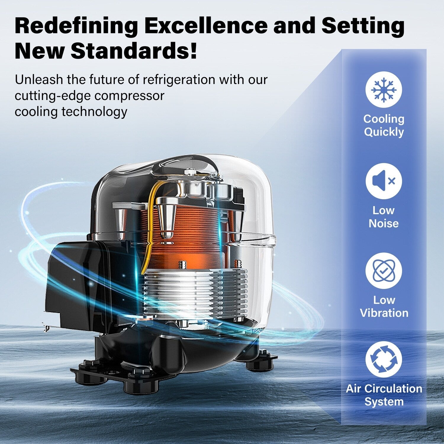 Rapid and Eco-Friendly Cooling: Featuring advanced R600a refrigerant, this beverage refrigerator cools quickly and evenly within just 40 minutes. The eco-friendly cooling system is DOE-certified for energy efficiency, reducing your energy consumption and environmental impact while delivering powerful cooling performance.